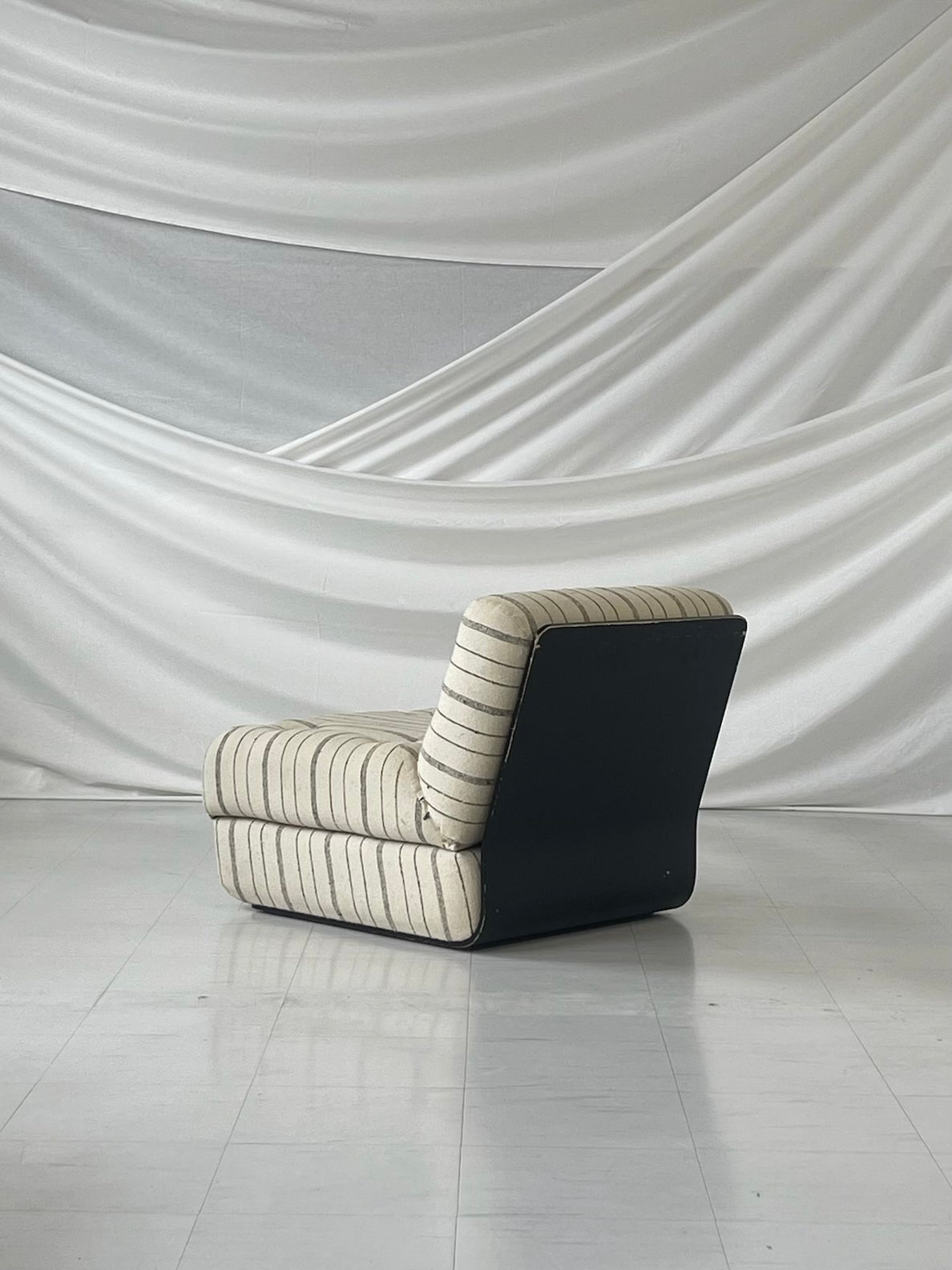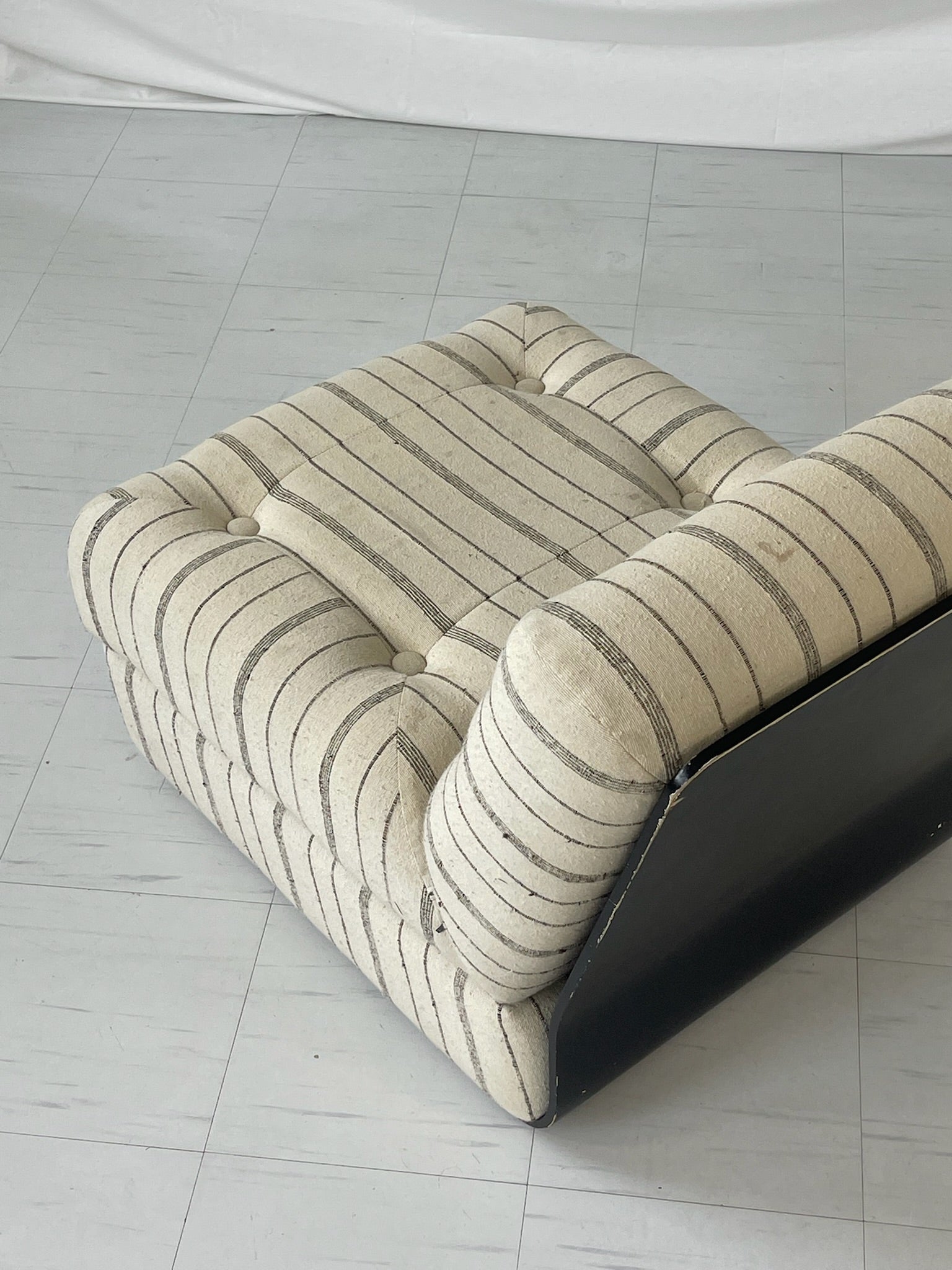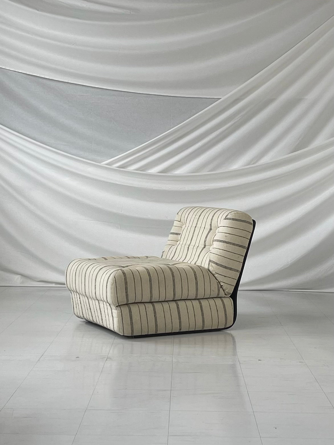 フィンランドの建築家アハティ・タスキネンによって1970年にデザインされたオリジナル「イージー」ラウンジチェアは、フィンランド機能主義の黄金時代に生まれた、先進的なモジュラーデザインの稀有な例です。当初は少量生産されたこのチェアは、彫刻的な黒漆塗りの木製背もたれと、粉体塗装のスチールフレーム、そしてたっぷりとしたクッション性のある座面と背もたれを組み合わせました。このチェアは、独立したラウンジチェアとしてだけでなく、ソファやデイベッドに組み替えられるモジュラーシステムのコンポーネントとしても機能するように設計されていました。