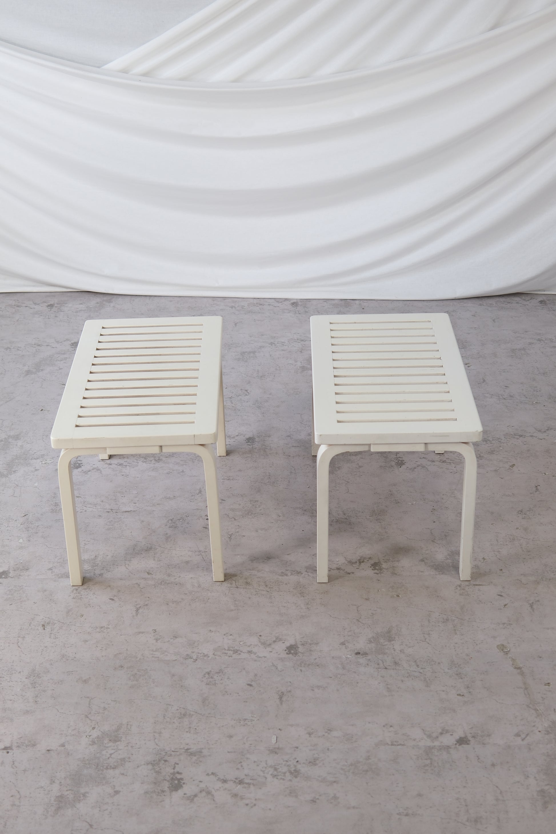 Designed by Alvar Aalto for Artek, the 153B bench is a Finnish design classic with its slatted birch seat and signature L-leg structure. Painted white for a clean, minimal look that suits any space.