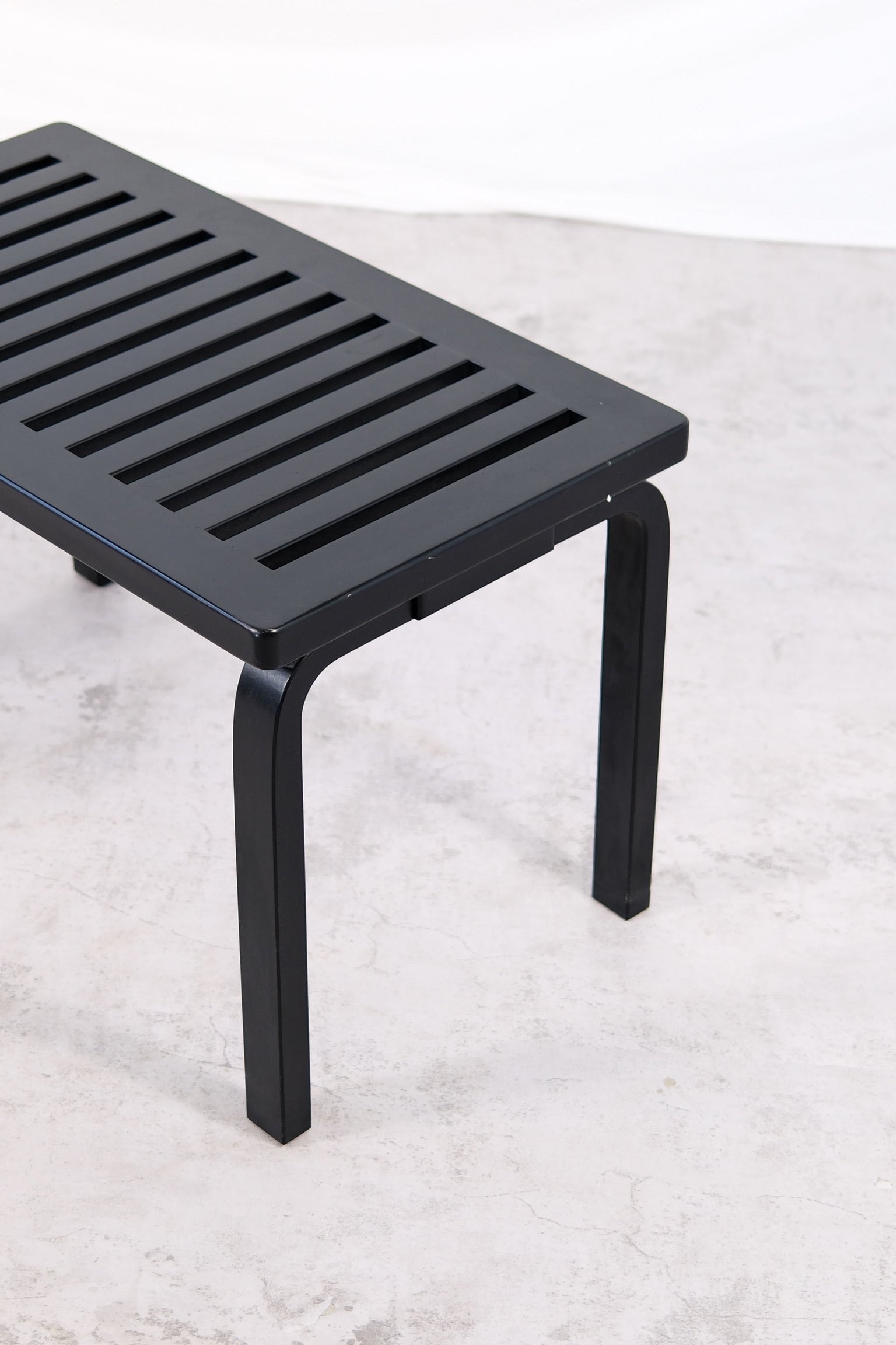 Artek 153B bench, designed by Alvar Aalto in 1945. Aalto’s bench combines his signature bent birch legs with a slatted seat, giving it a light yet sturdy form. Finished in black, this piece works beautifully as a hallway bench, coffee table, or extra seating. A true Finnish design classic.