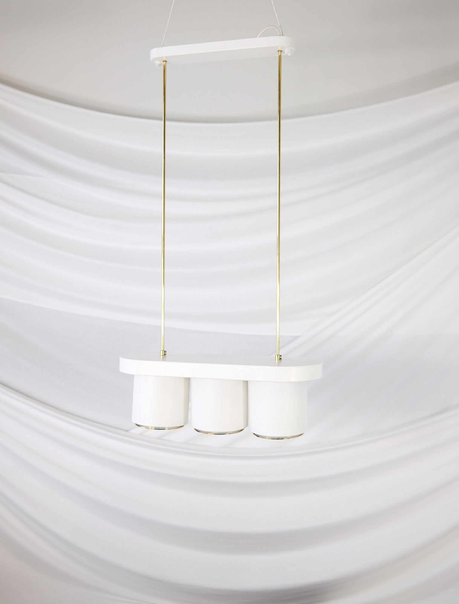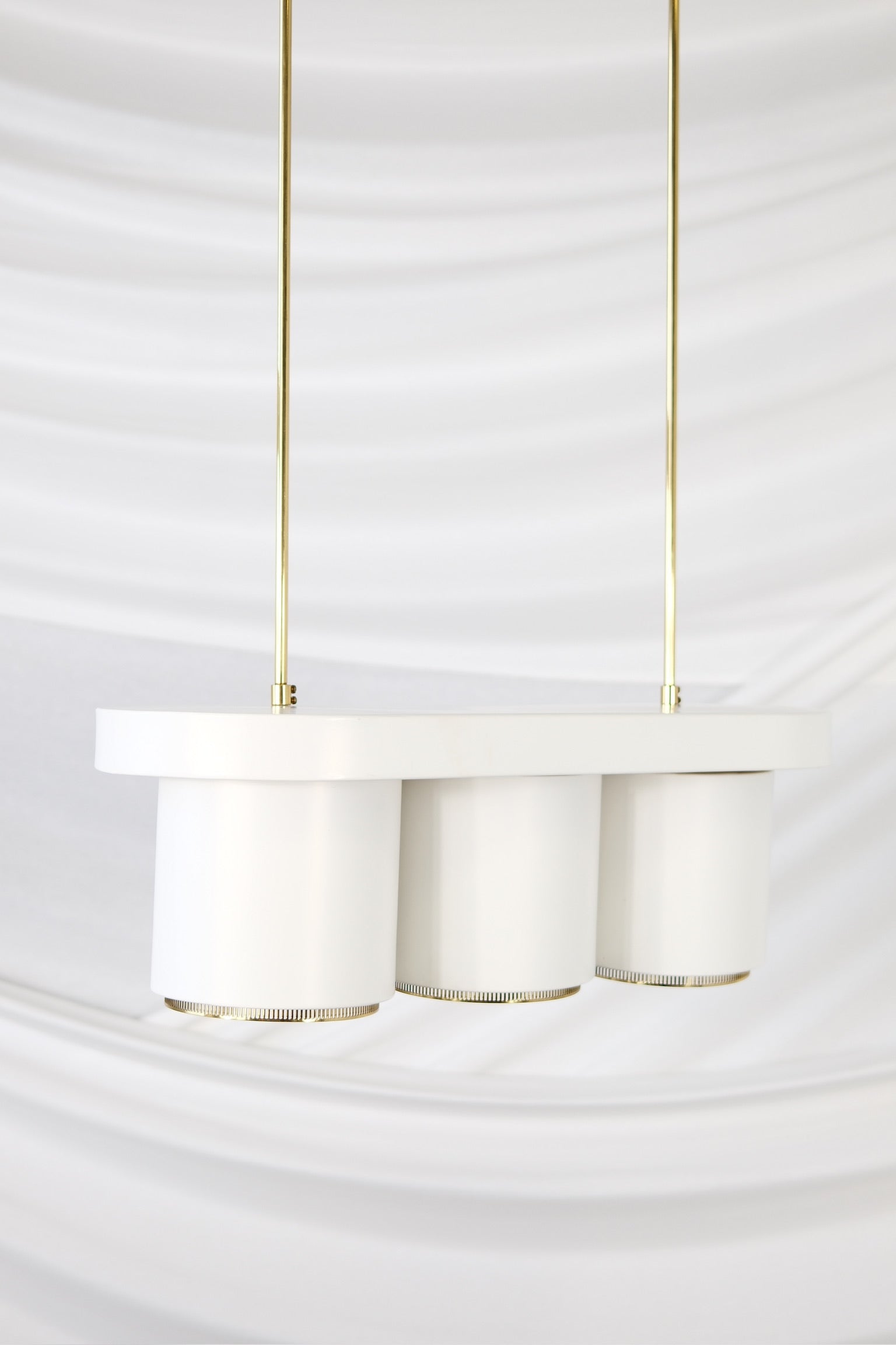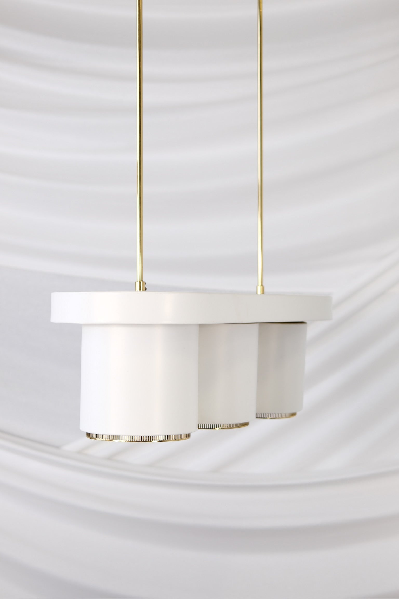 A203は、重ね塗りされたホワイトラッカー仕上げのメタルシェードと真鍮のディテールが特徴で、光を均一に拡散し、温かく居心地の良い雰囲気を演出します。すっきりとしたモダンなシルエットと洗練されたプロポーションは、ダイニングルーム、リビングエリア、そして時代を超えたエレガンスが求められる建築空間に最適です。
