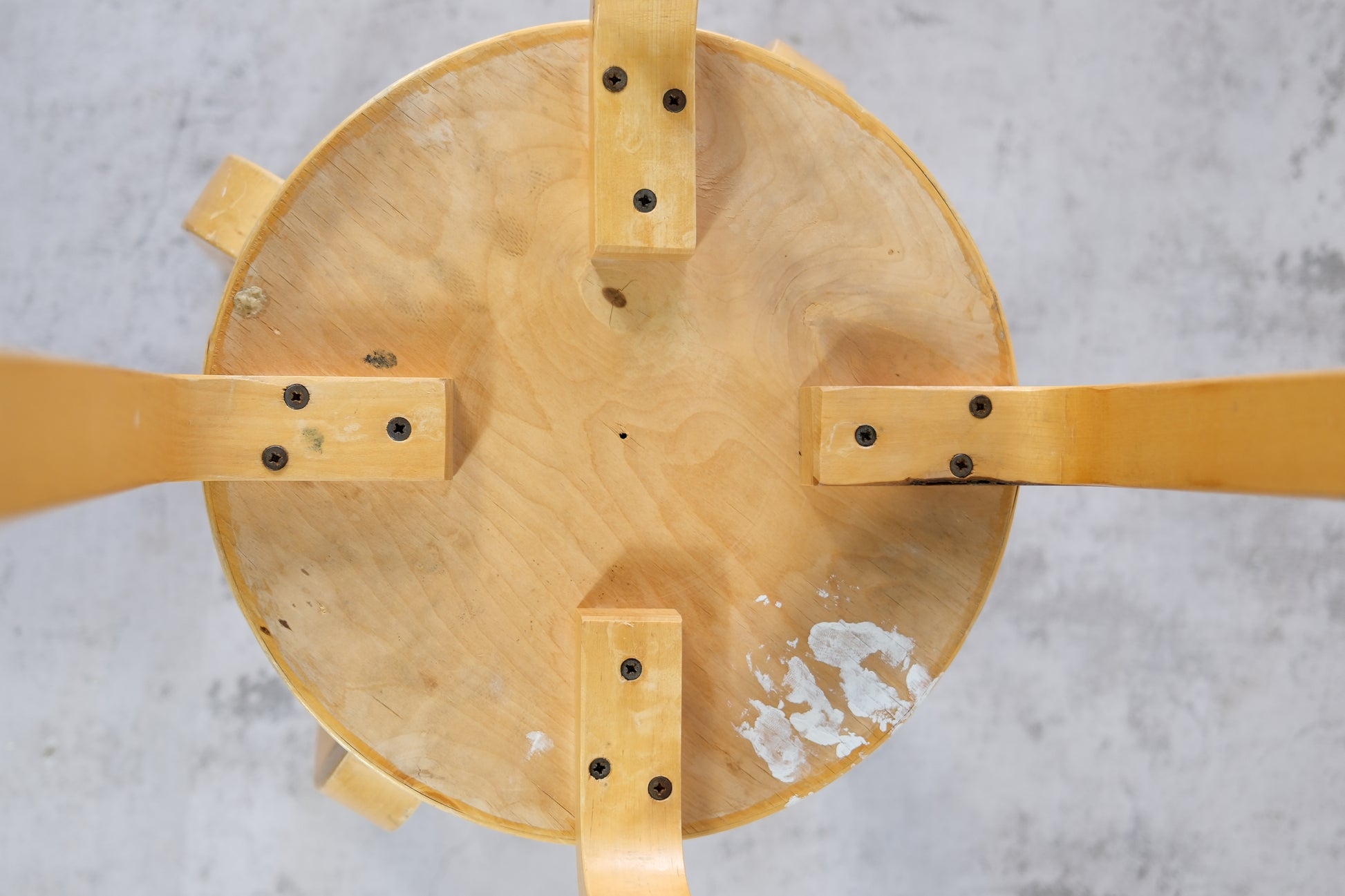 Worn vintage condition with chips on seat edges and general signs of use. Please request detailed photos for specifics.