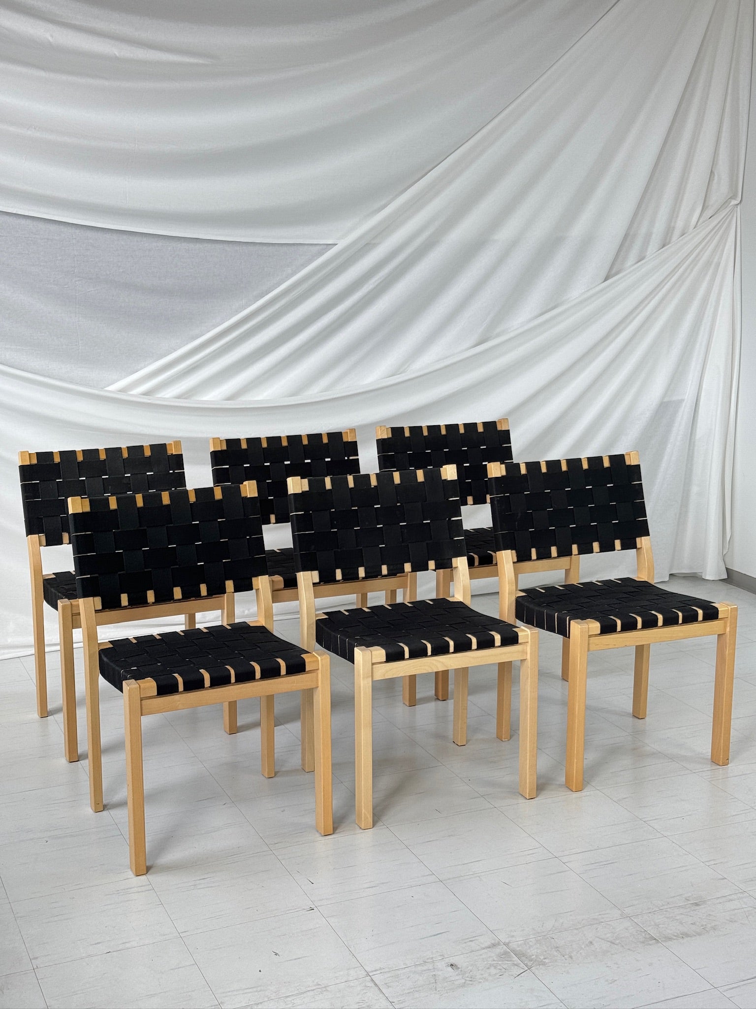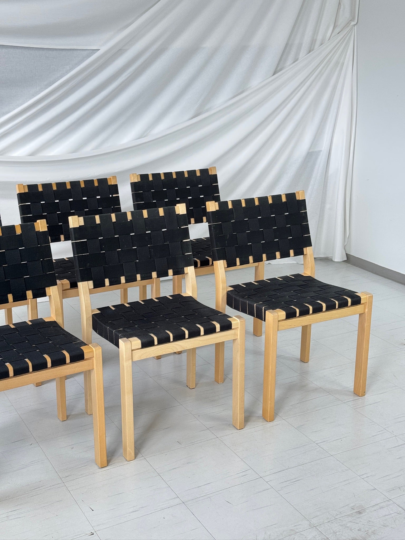 1929年にアルヴァ・アアルトによってデザインされた611チェアは、その明快さ、快適さ、そして職人技で知られるフィンランドデザインの名作です。この特別版セットは、アルテック創業80周年を記念して制作され、無垢のバーチ材フレームとブラックのリネンウェビングを組み合わせた、オリジナルのデザインを踏襲しています。
