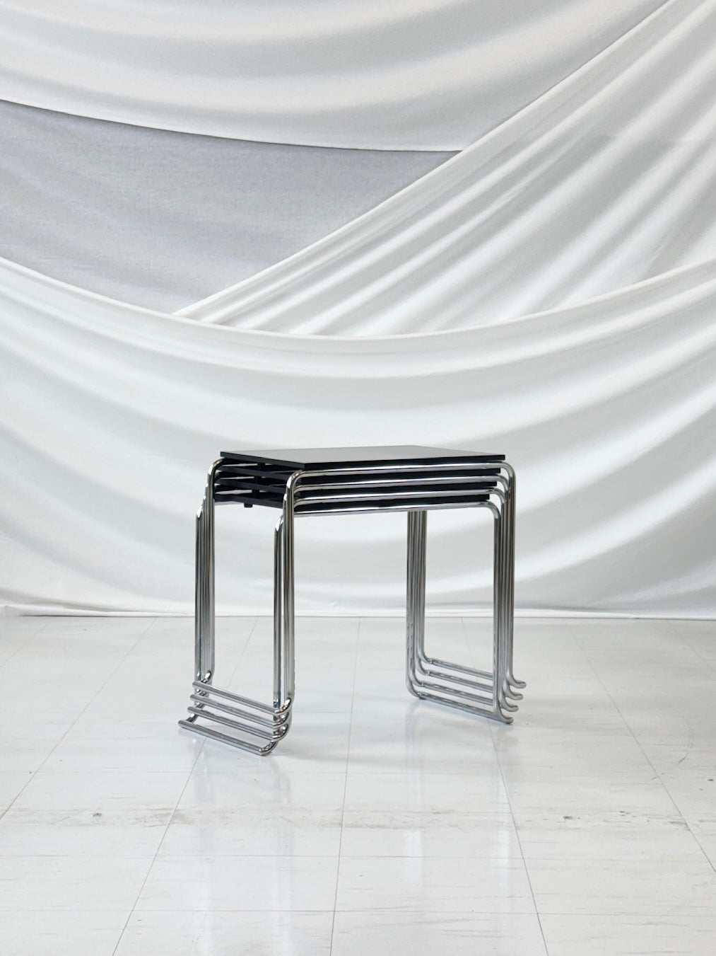 フィンランドの建築家アルヴァ・アアルトが1930年代にパイミオ療養所のためにデザインした「パイミオ806」サイドテーブルは、クロームメッキのスチール管フレームが、ラッカー塗装のバーチ合板の天板を優雅に支えています。洗練されたミニマルなシルエットと精密なエンジニアリングは、アアルトがフォルムと機能に対して抱いていた革新的なアプローチを反映しています。