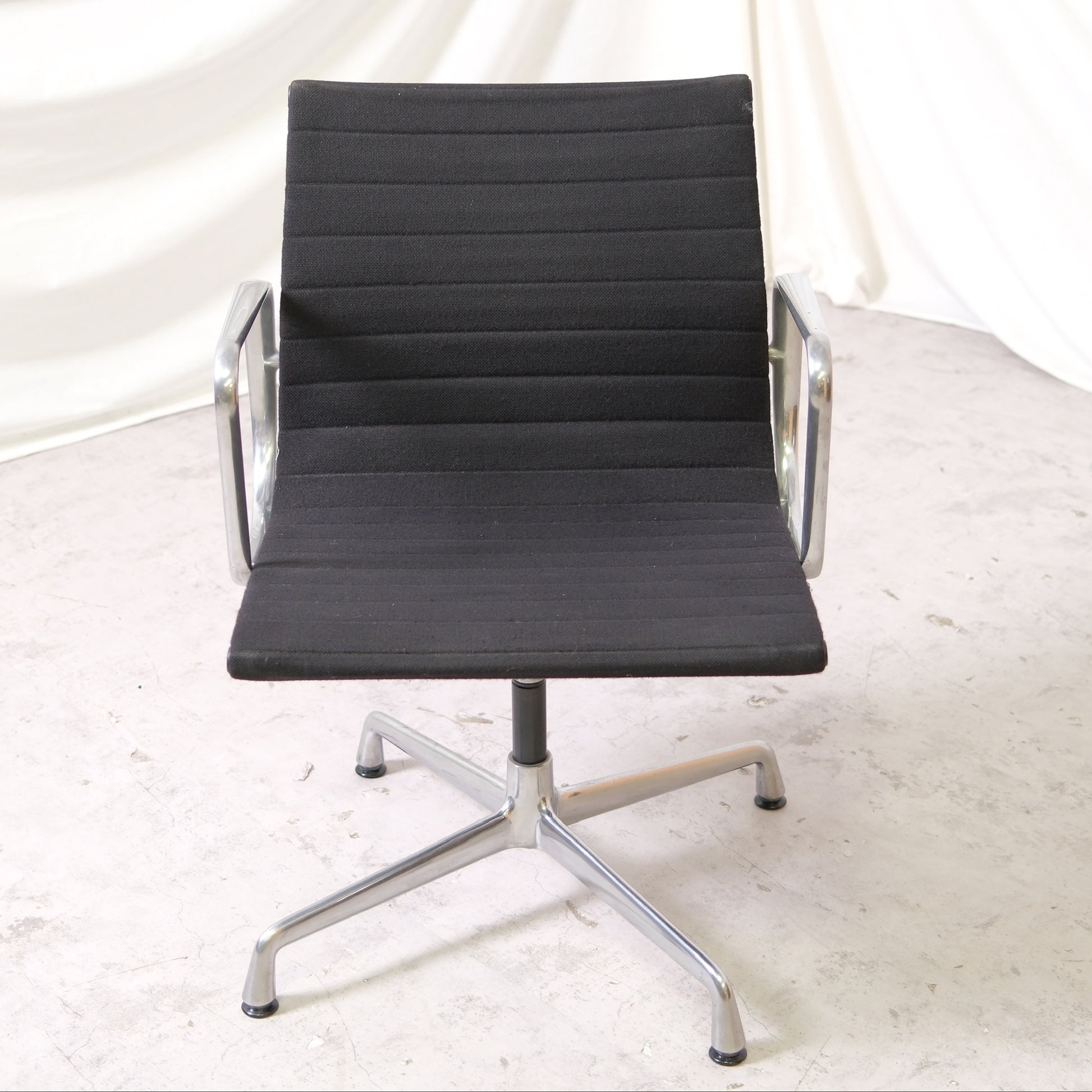 The EA108 office chair is part of the iconic Aluminium Group designed by Charles and Ray Eames. This set was produced by Vitra, known for high-quality European manufacturing of Eames designs during the late 20th century.