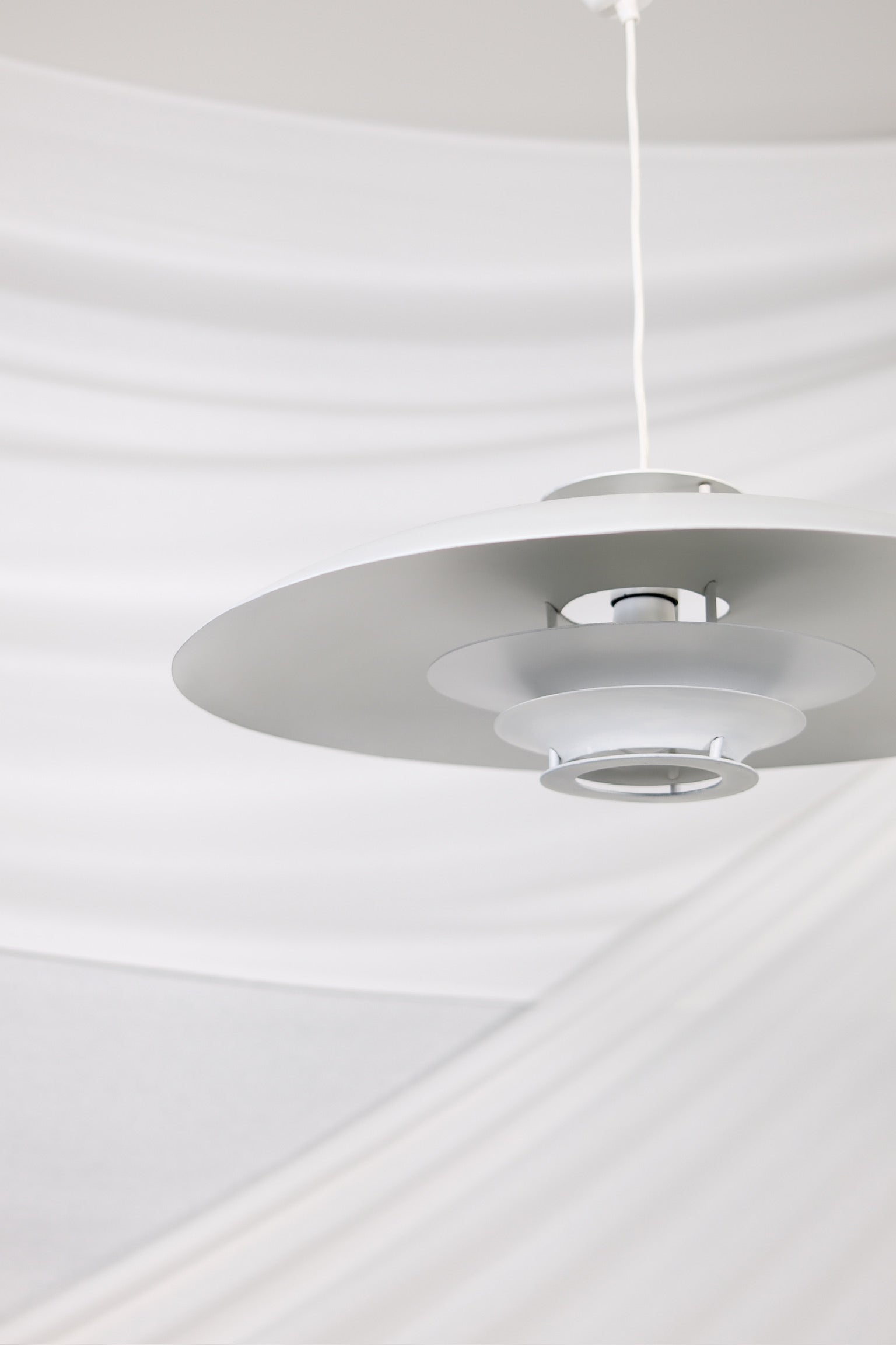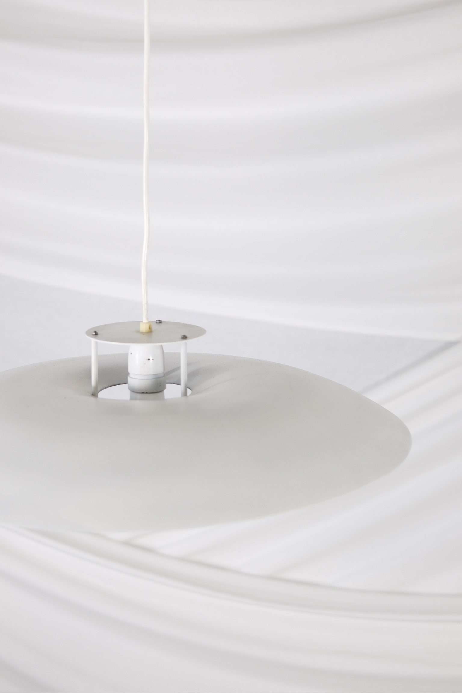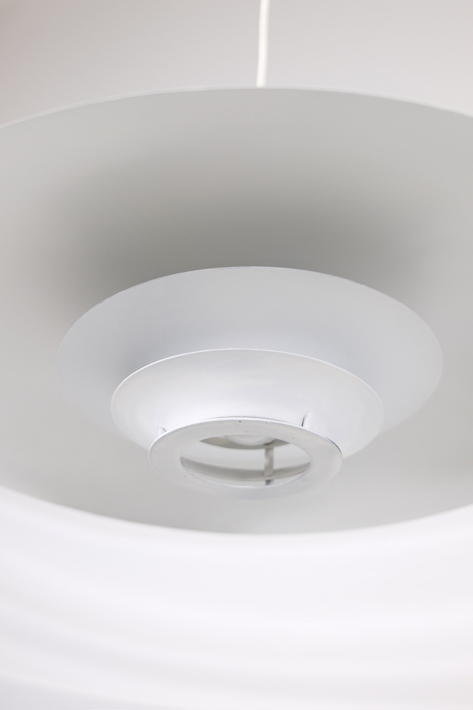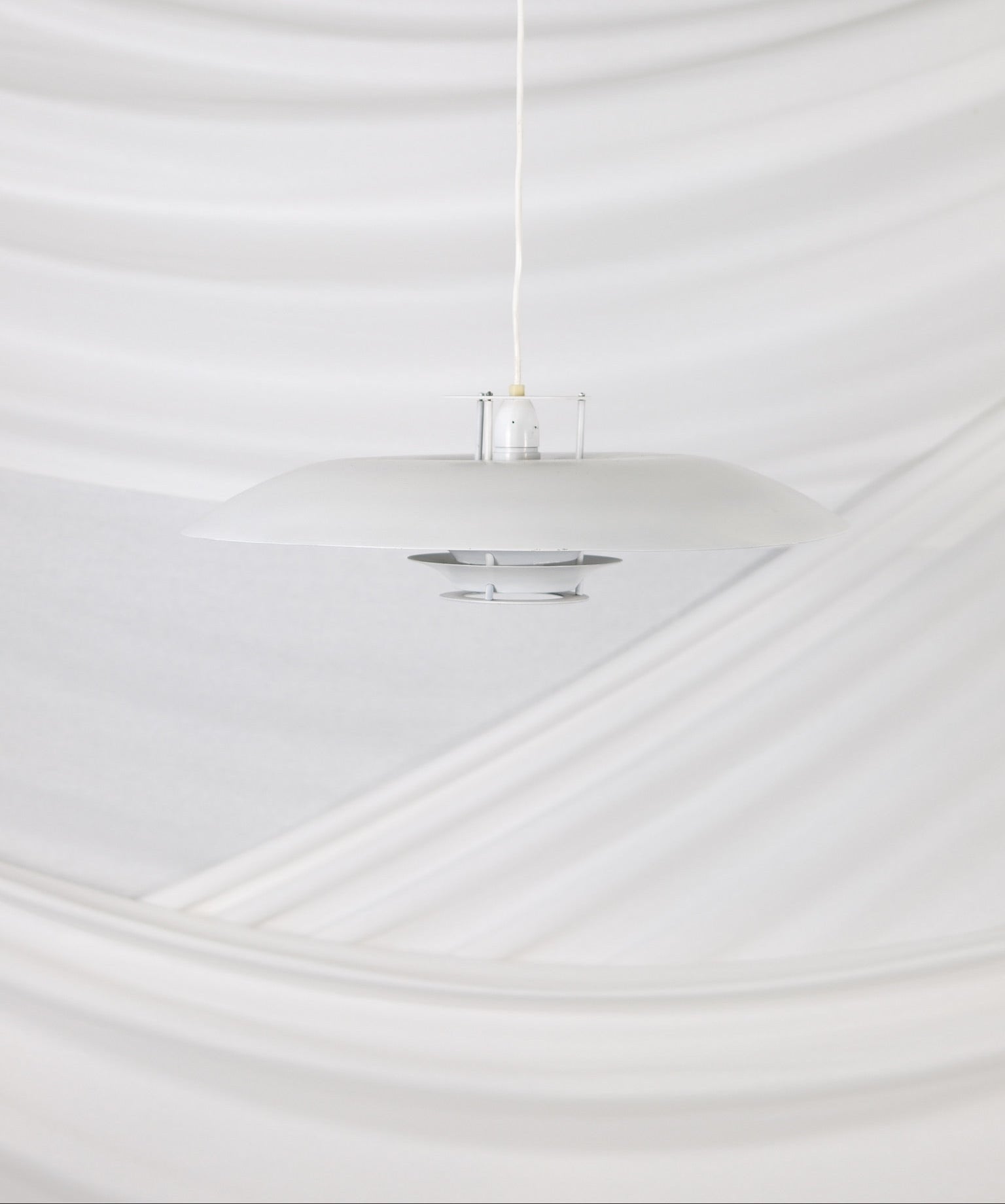 1969 年にフィンランドの著名な建築家 Juha Leiviskä がデザインした JL341 シーリング ランプの希少なプロトタイプです。初期の生産段階で手作りされたこのバージョンは、精密な建築構成で層状に重ねられた白いシェードが特徴で、光を均等に拡散し、暖かく雰囲気のある輝きを生み出します。