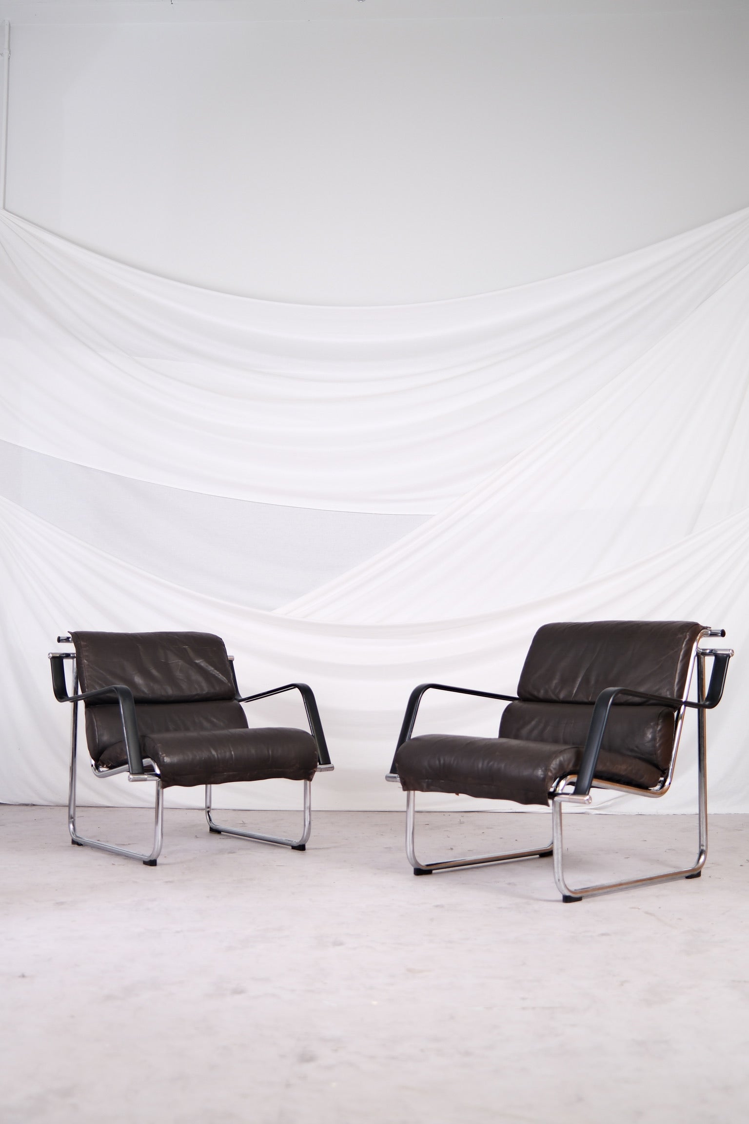 Remmi Armchairs by Yrjö Kukkapuro for Avarte Brown Leather