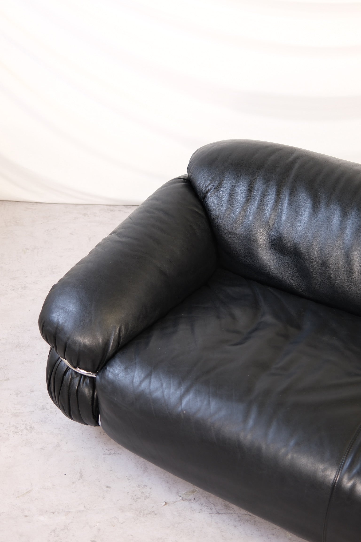 This 3-seater is upholstered in supple black leather that complements the chrome detailing beautifully. The low, organic form and deep seat make it an ideal statement piece for any modern or vintage-inspired interior.