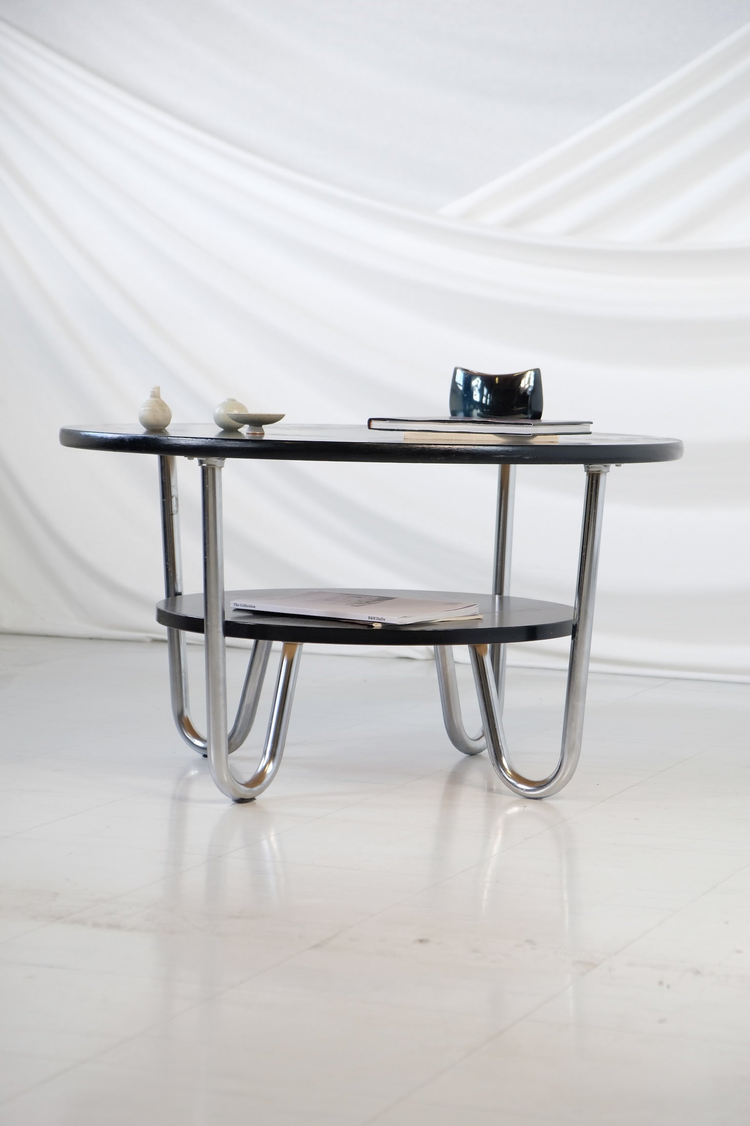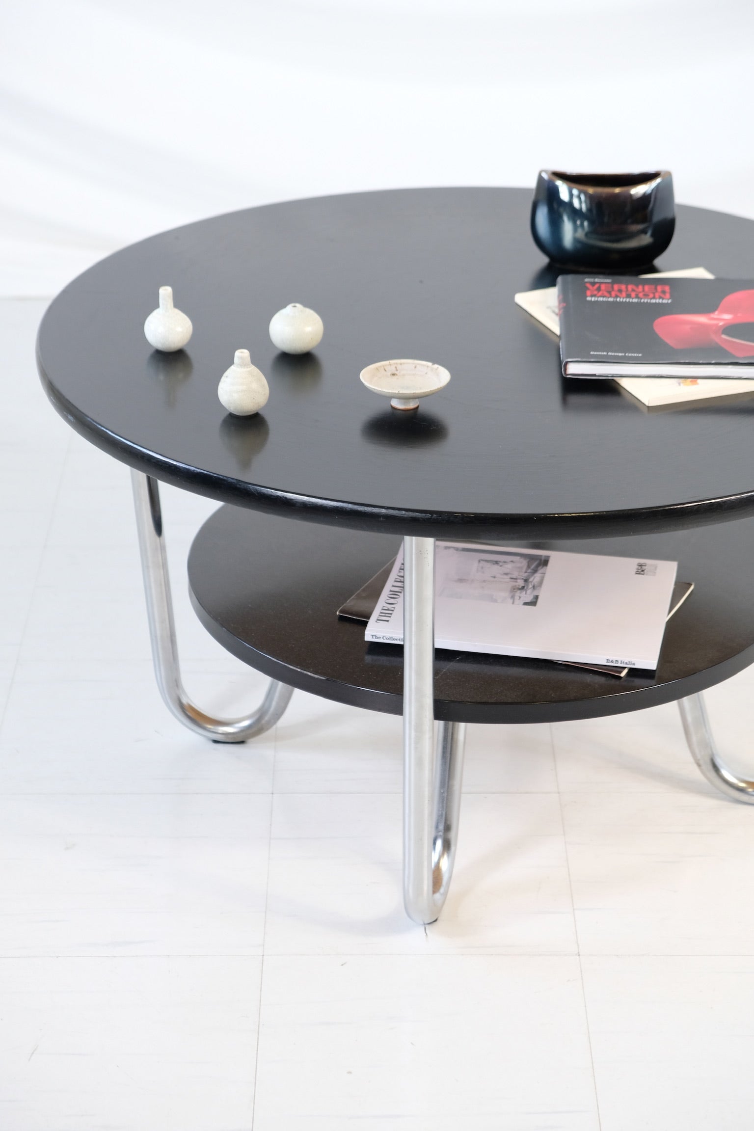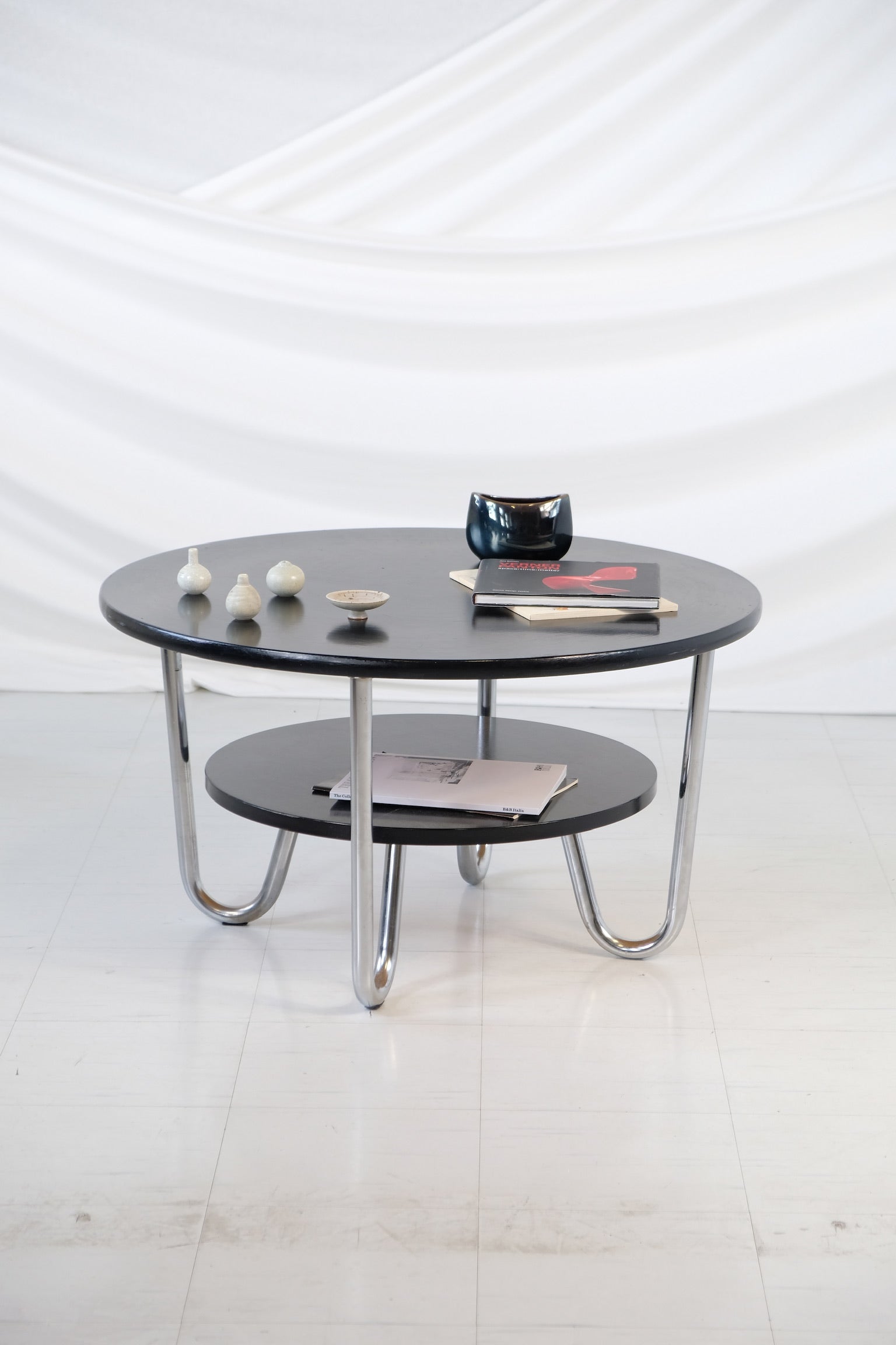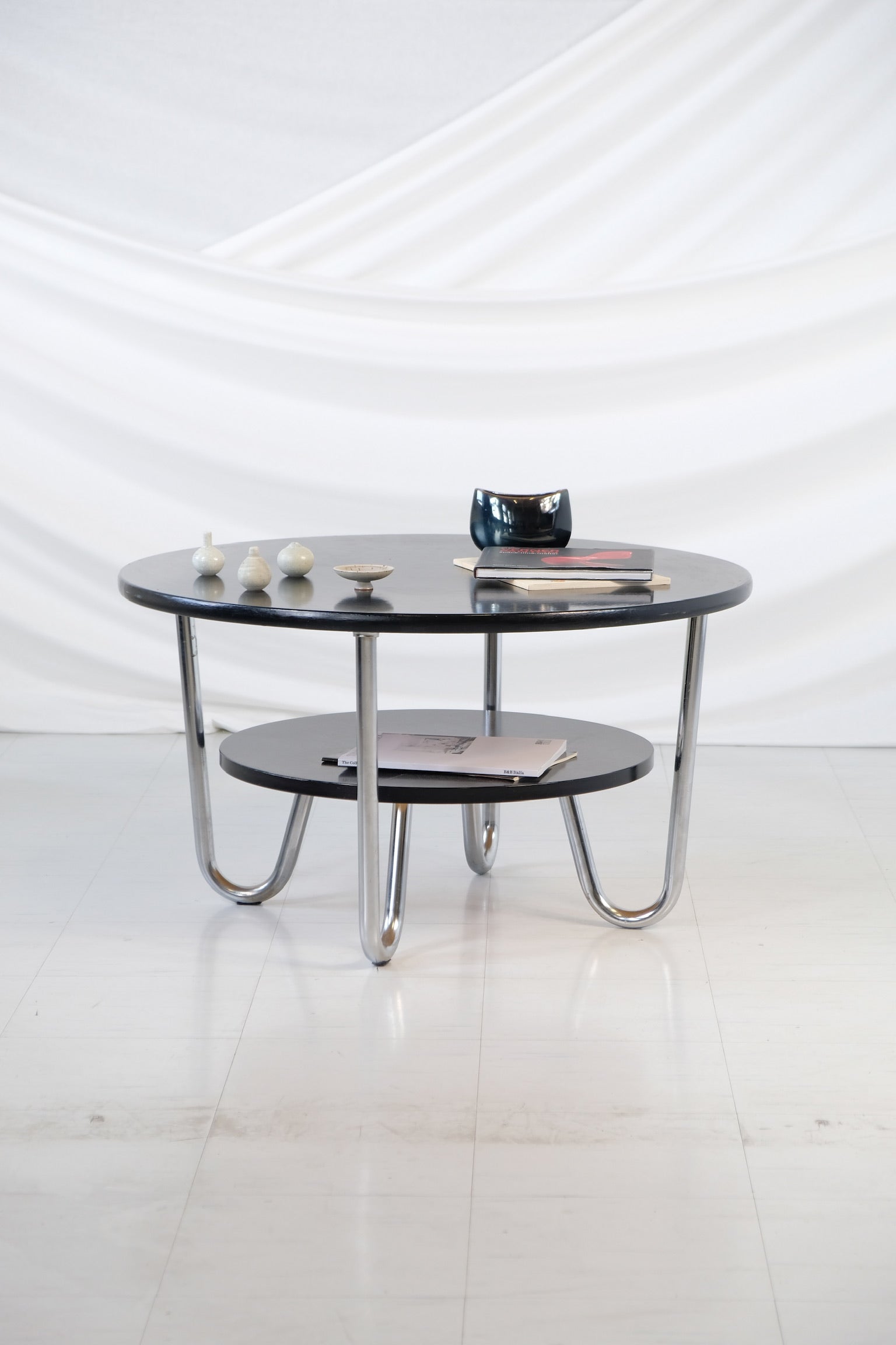 チューブ状のスチール脚を備えた円形コーヒーテーブル – 1930年代のバウハウス