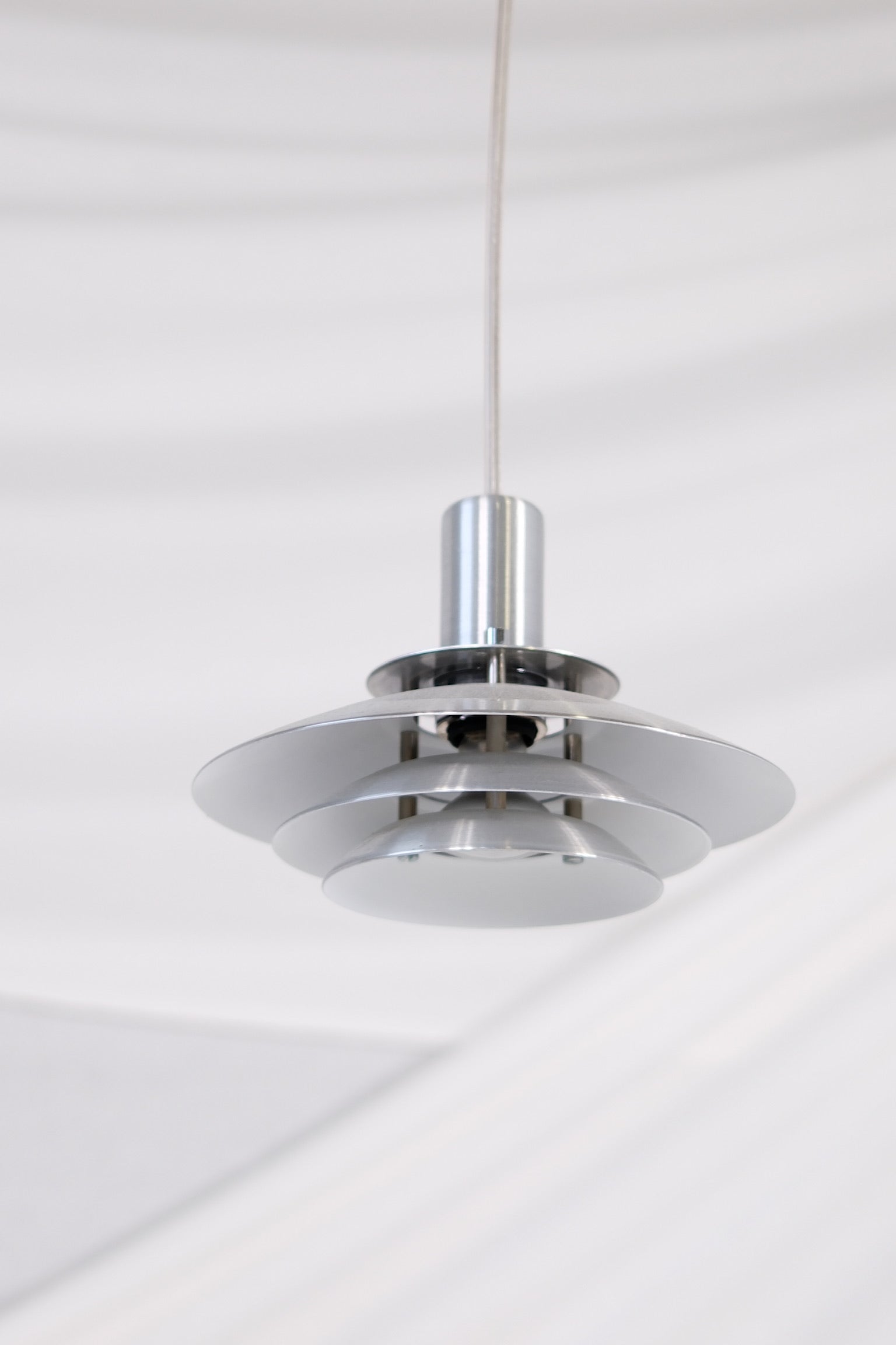 小さなヴィンテージデンマーク製クロームペンダントランプ 1970年代
