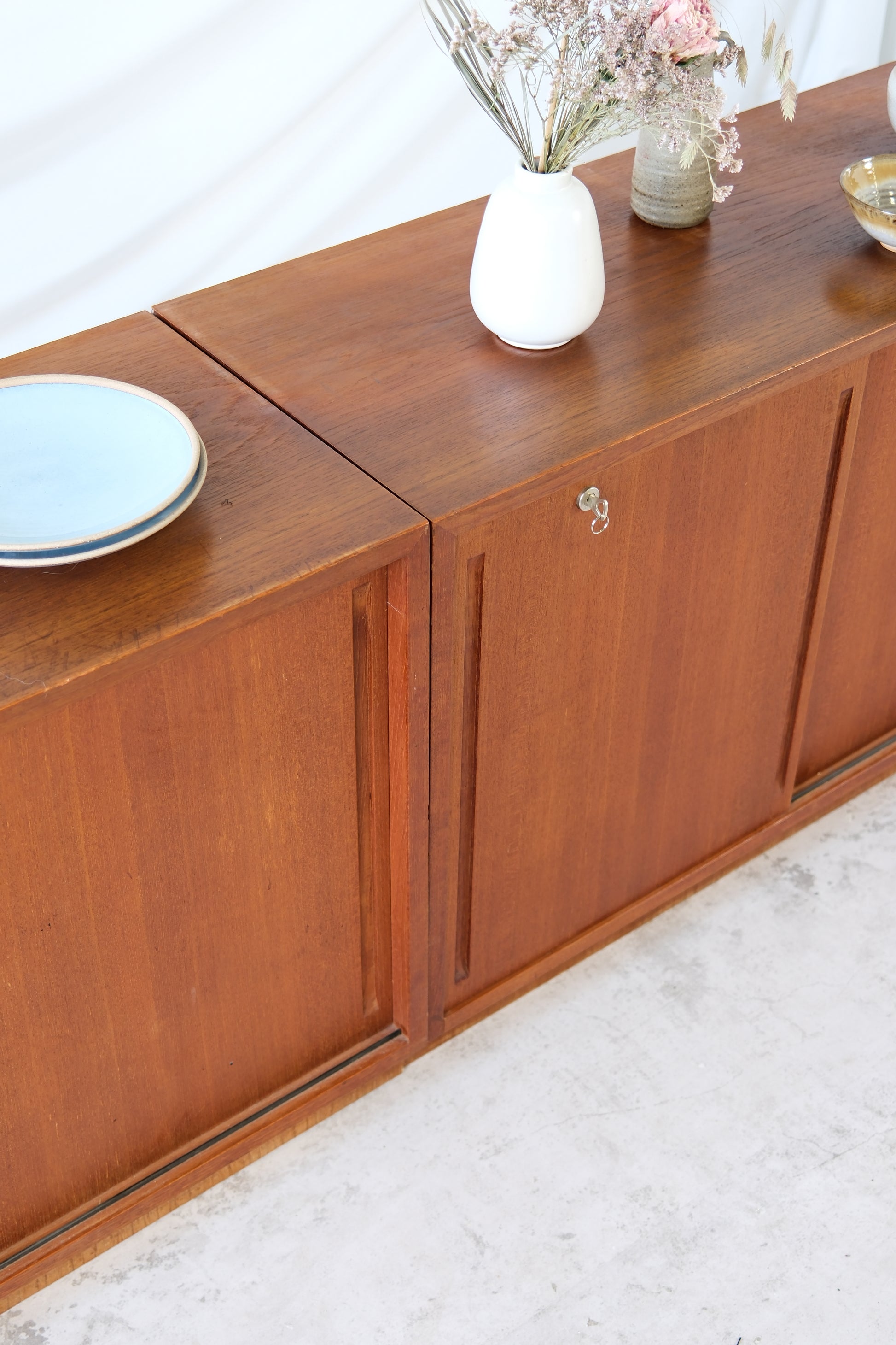 Designed by Carl-Gustaf Hiort af Ornäs and produced by Huonekalu Mikko Nupponen (HMN) in Finland. This pair of teak sideboards reflects the refined craftsmanship and balanced proportions typical of Ornäs’s work. Understated, functional, and beautifully detailed.