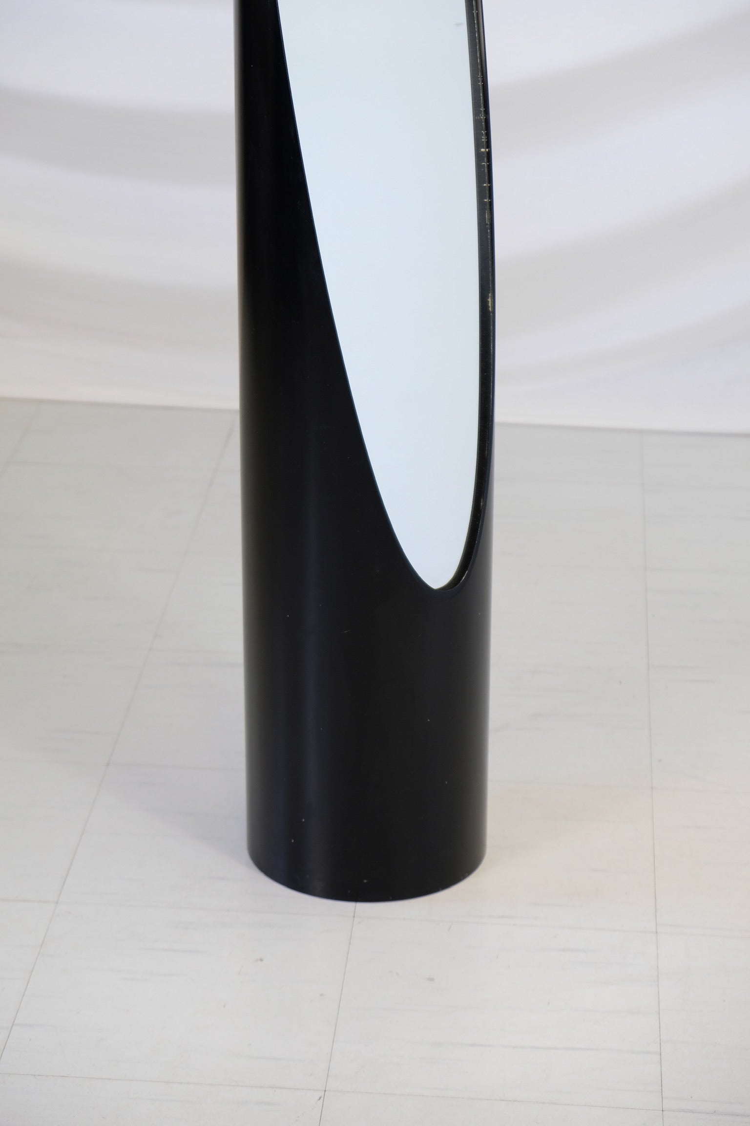 1980年代にロドルフォ・ボネットがウンギアのためにデザインした「リップスティック・ミラー」は、イタリア・ポストモダニズムの真のアイコンと言えるでしょう。大胆な円筒形のフォルムに、内側に埋め込まれた鏡を見せる鋭い彫刻が施されたそのフォルムは、口紅のチューブをひねり上げる動作にインスピレーションを得ており、その名が付けられました。コンセプトとスケールの両面で印象的なこの彫刻的なフロアミラーは、ボネットのインダストリアルデザインにおける感性と、遊び心と機能性を兼ね備えた美学を体現しています。