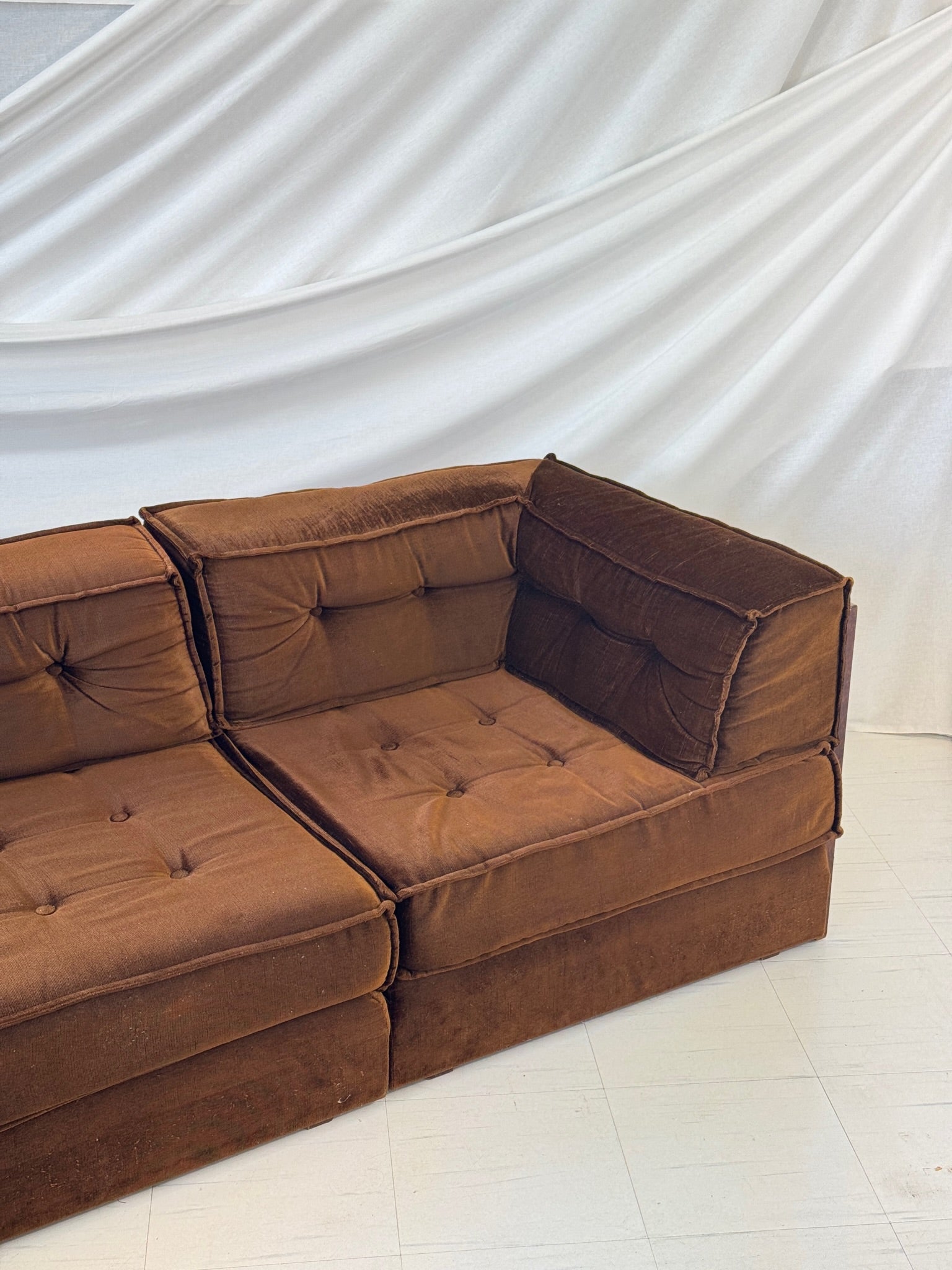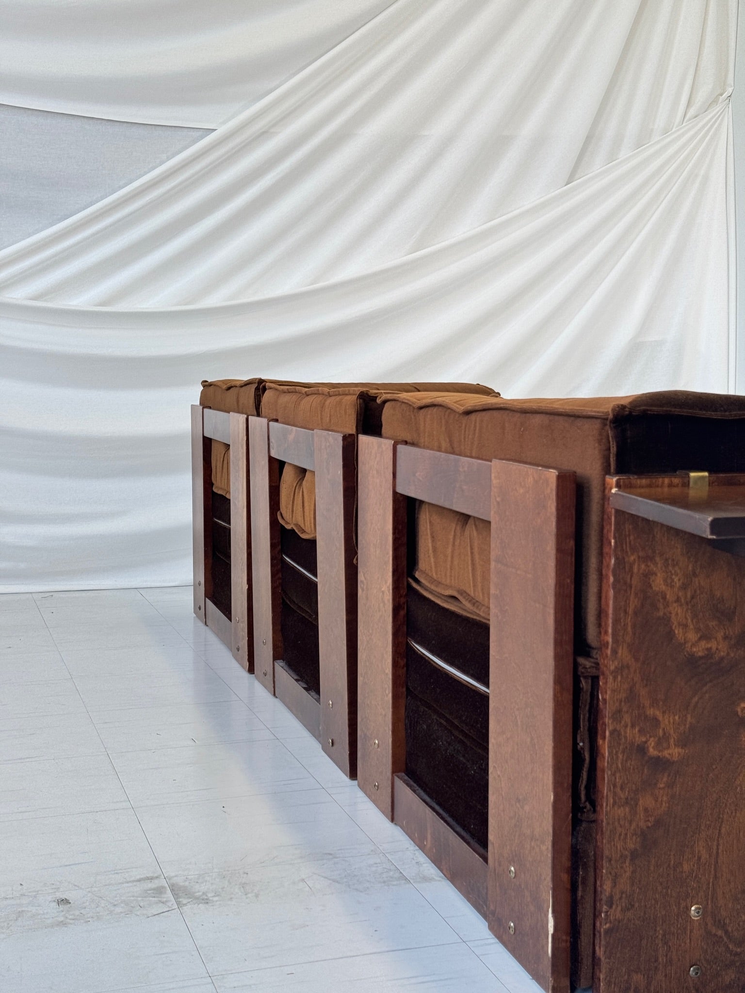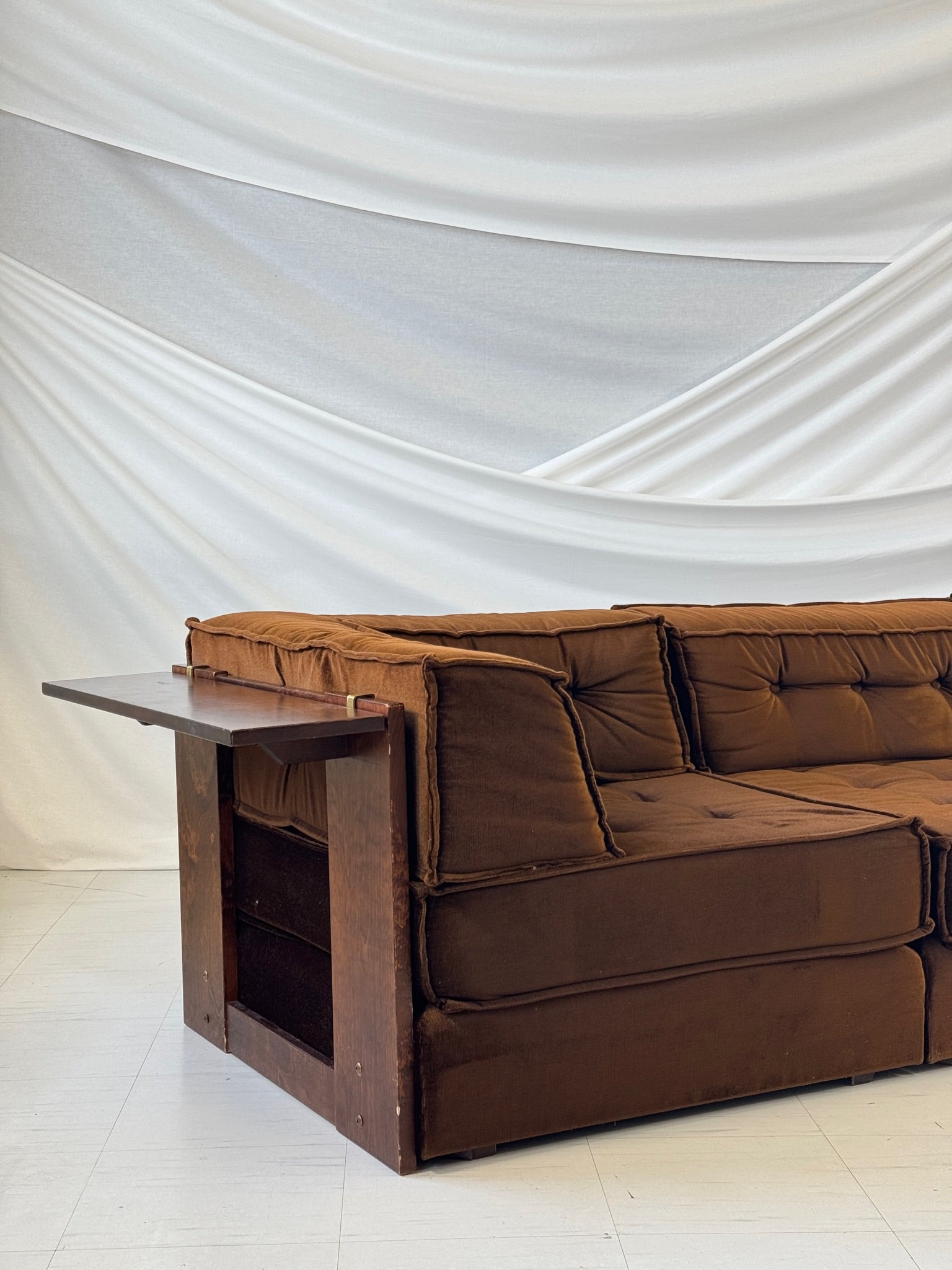 木製フレームとベルベット張りのVilkaモジュラーソファ