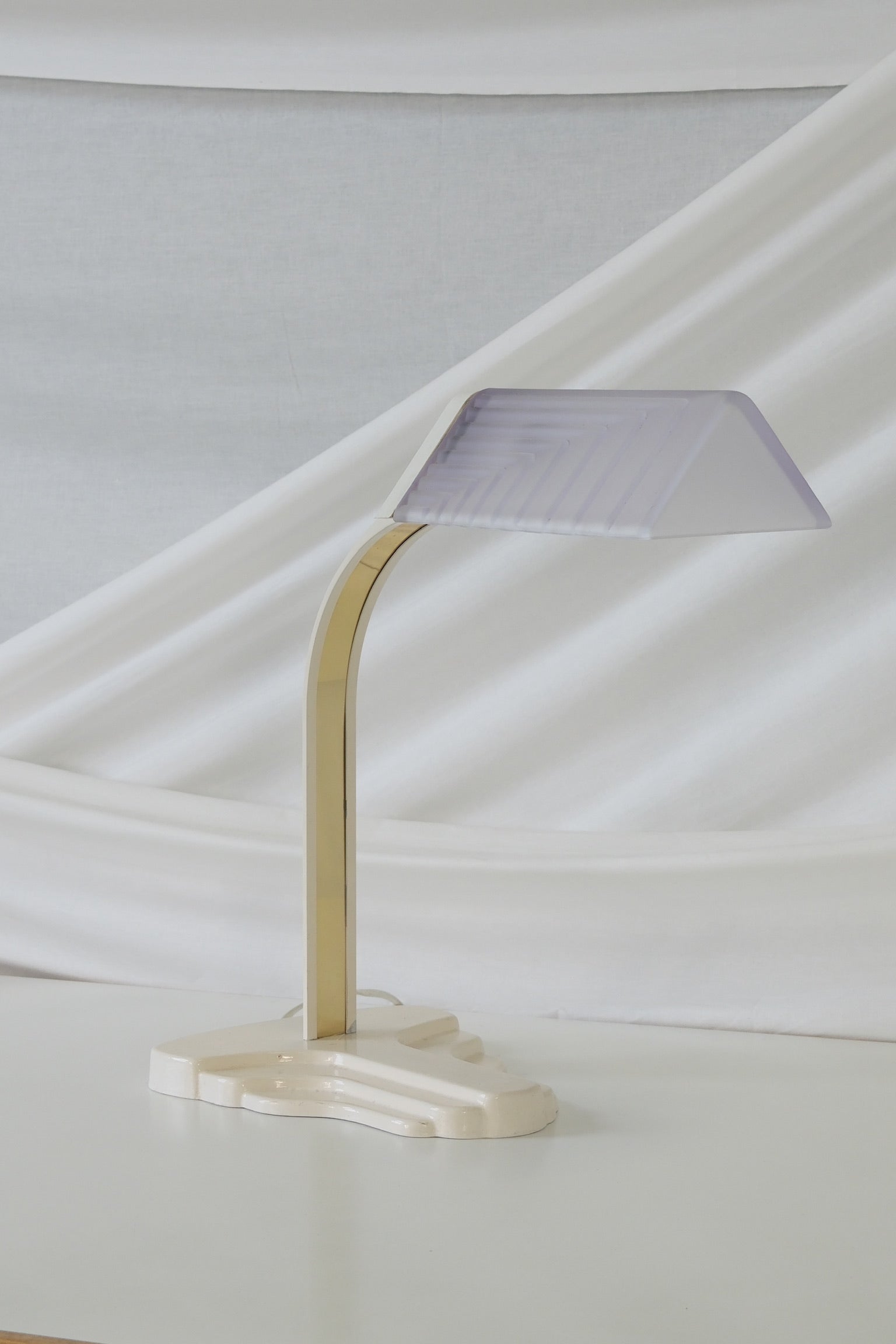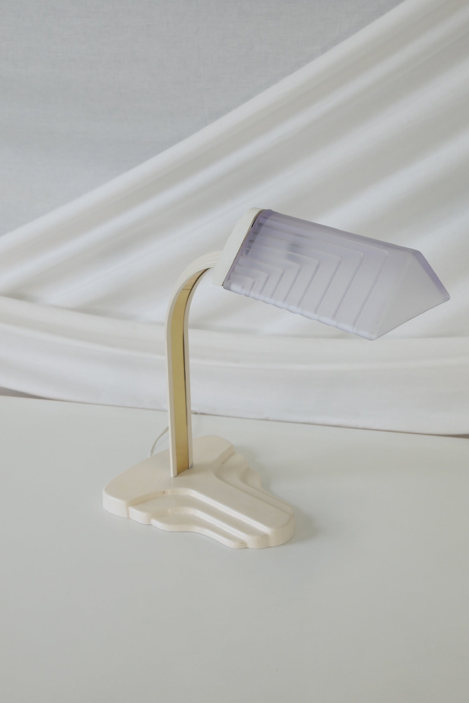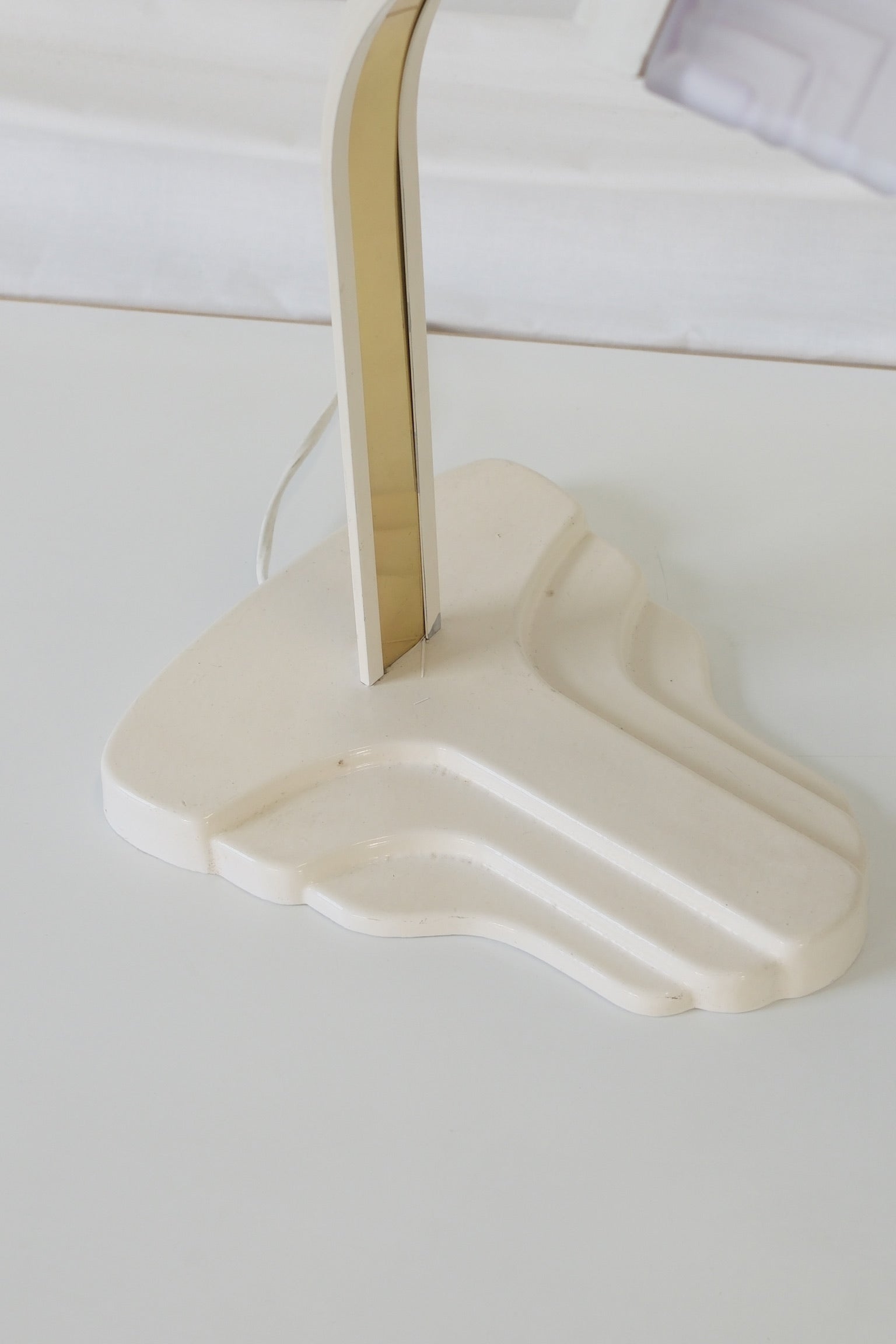 このユニークなヴィンテージ宇宙時代スタイル テーブル ランプはキャストを組み合わせた 鉄 曲線を描く脚と洗練されたフロストガラスのシェードを備えたベース。ミニマルなシルエットと上質な素材が、時代を超えた職人技を際立たせ、デスク、サイドテーブル、読書コーナーなど、様々なシーンで活躍します。