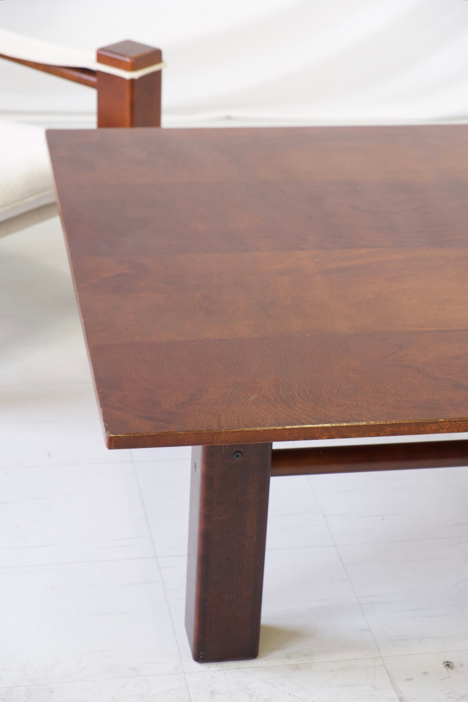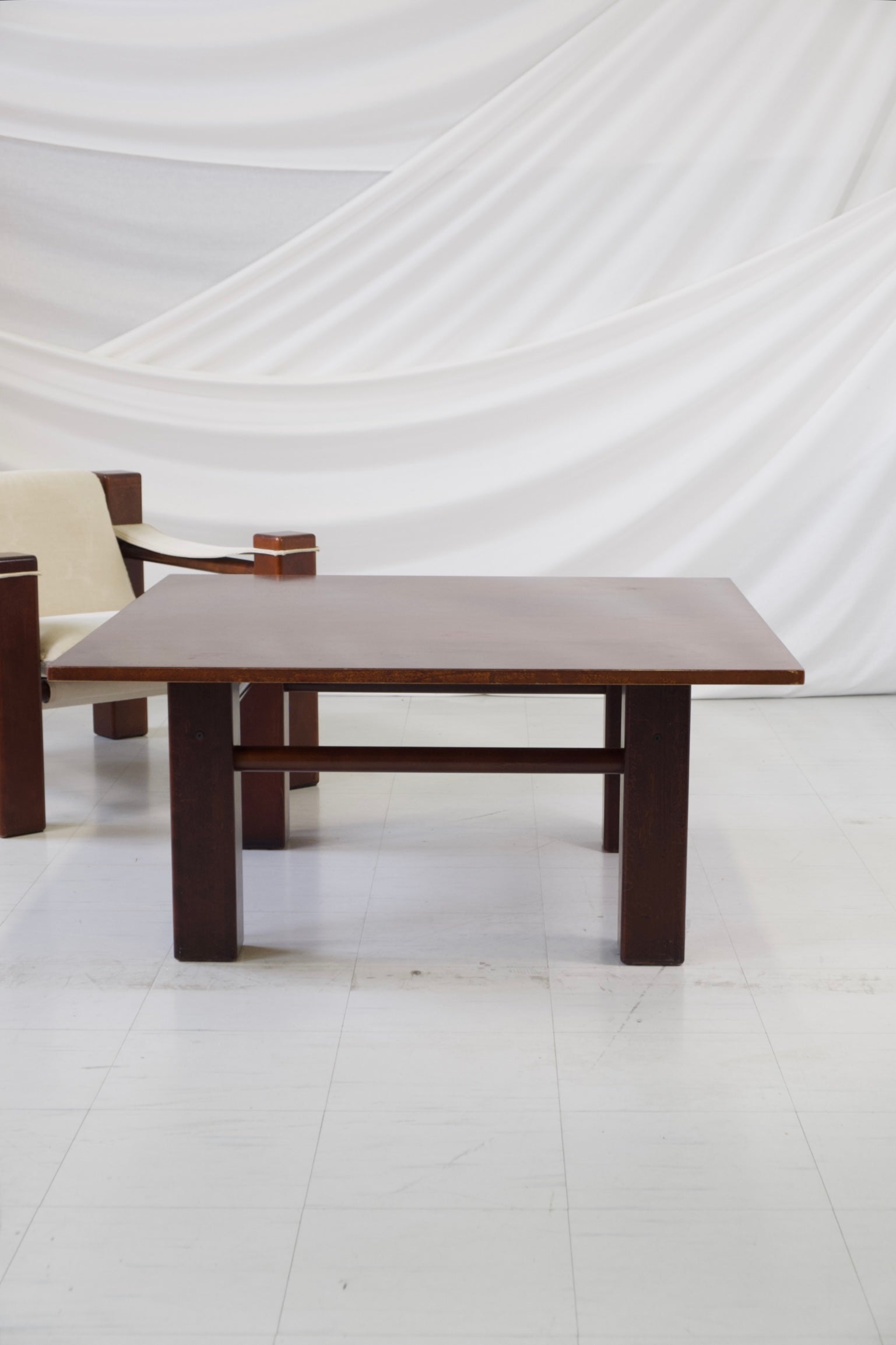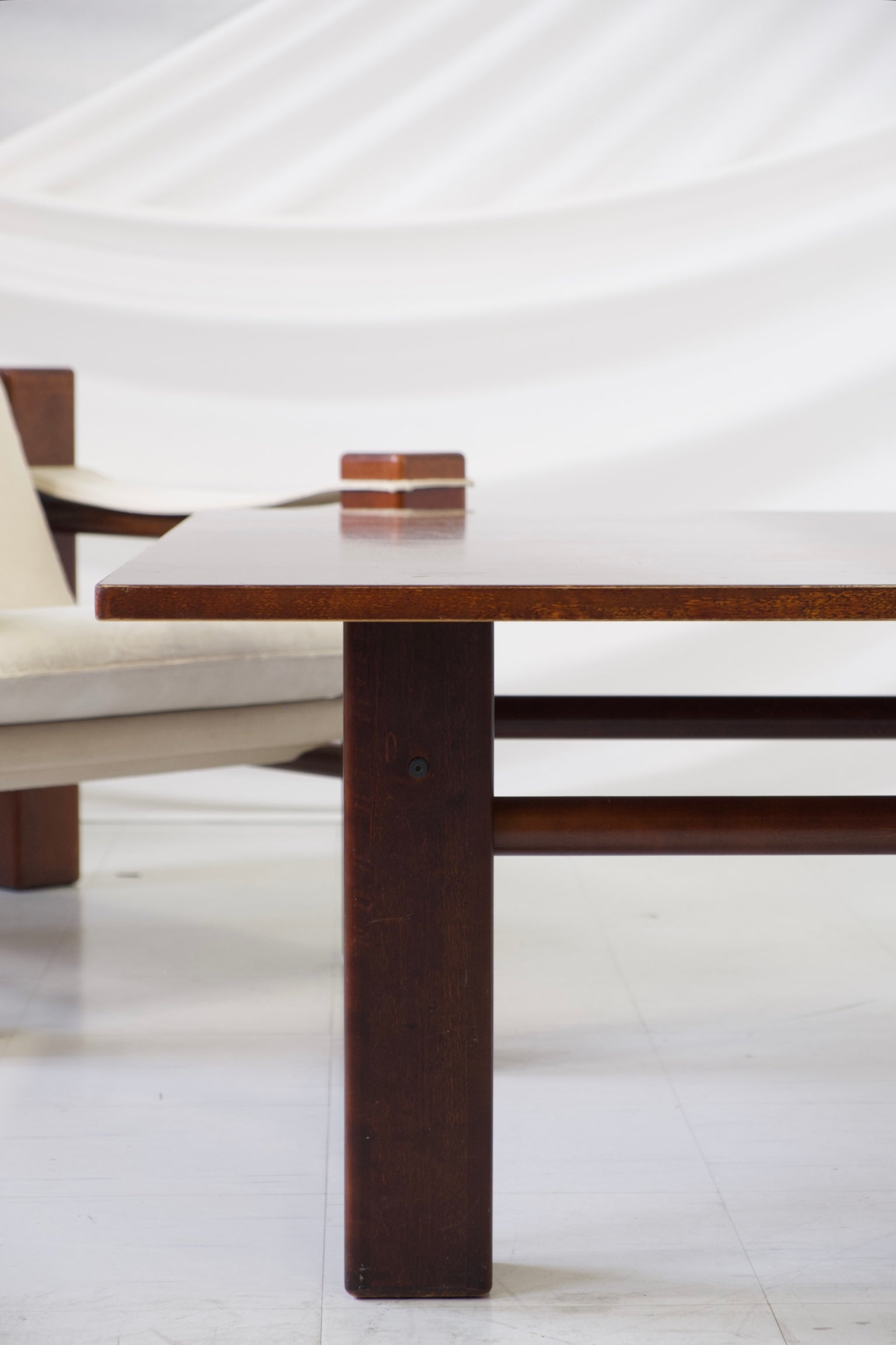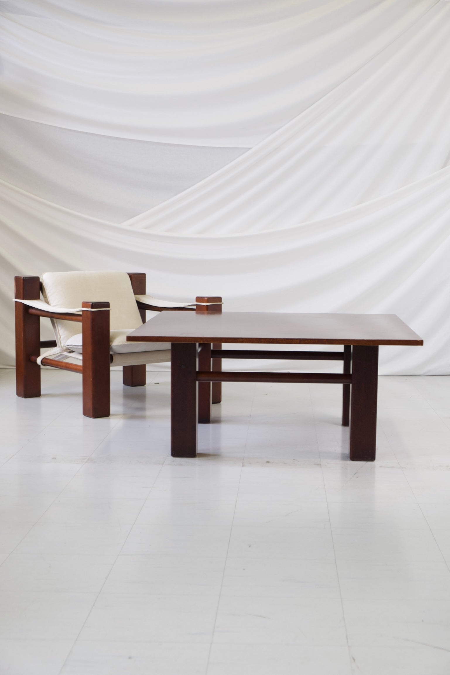 ビンテージのブラジル サファリ アームチェアと同じスタイルでデザインされた、印象的な無垢材のコーヒー テーブルです。
