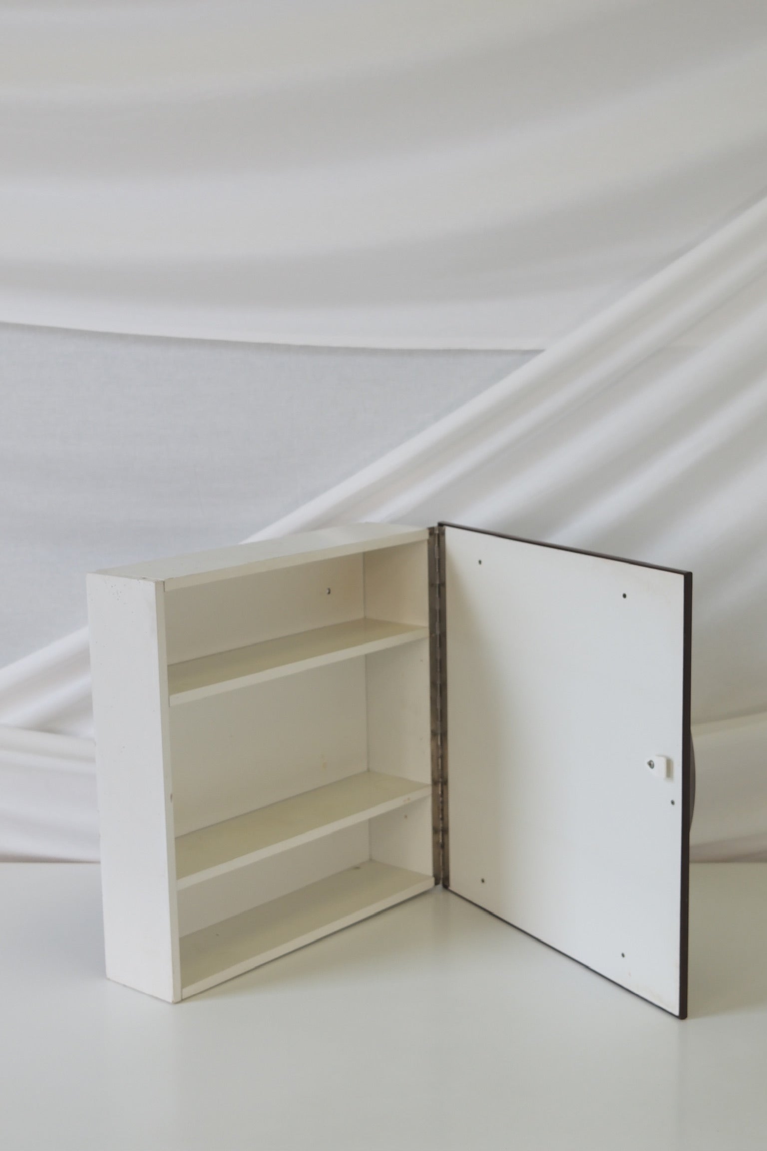 ヴィンテージ品としては良好なコンディションです。鏡はクリアで、キャビネットはスムーズに開きます。詳細については、詳細な写真をご請求ください。