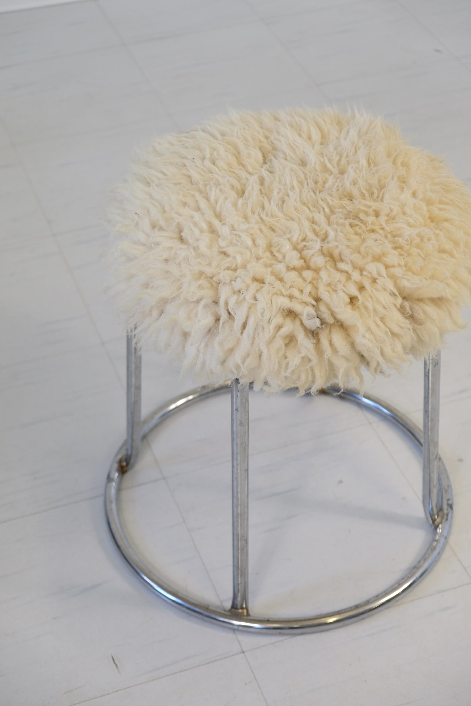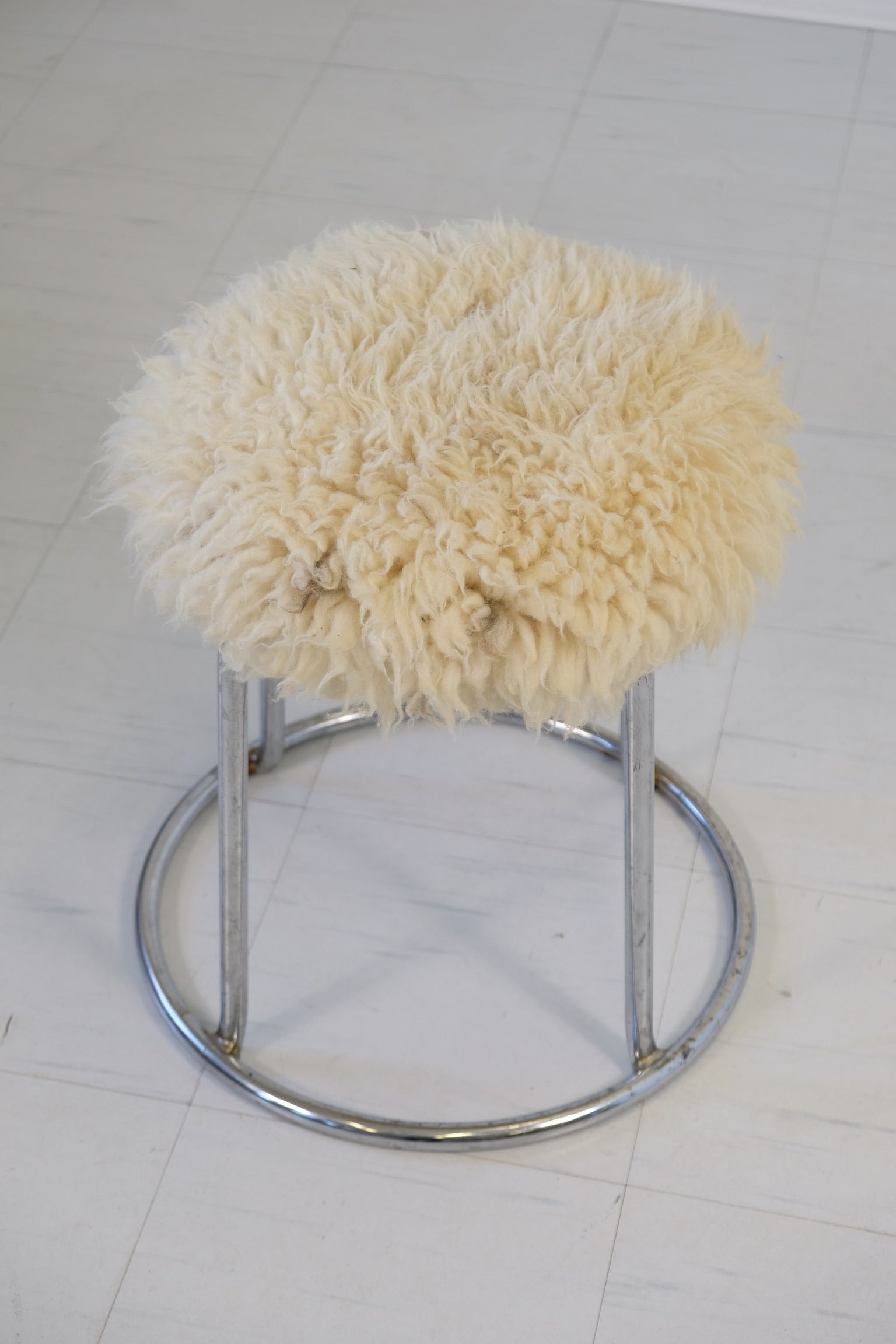 このスツールの状態は良好です!羊皮はふわふわで、クロームメッキも良好な状態です!