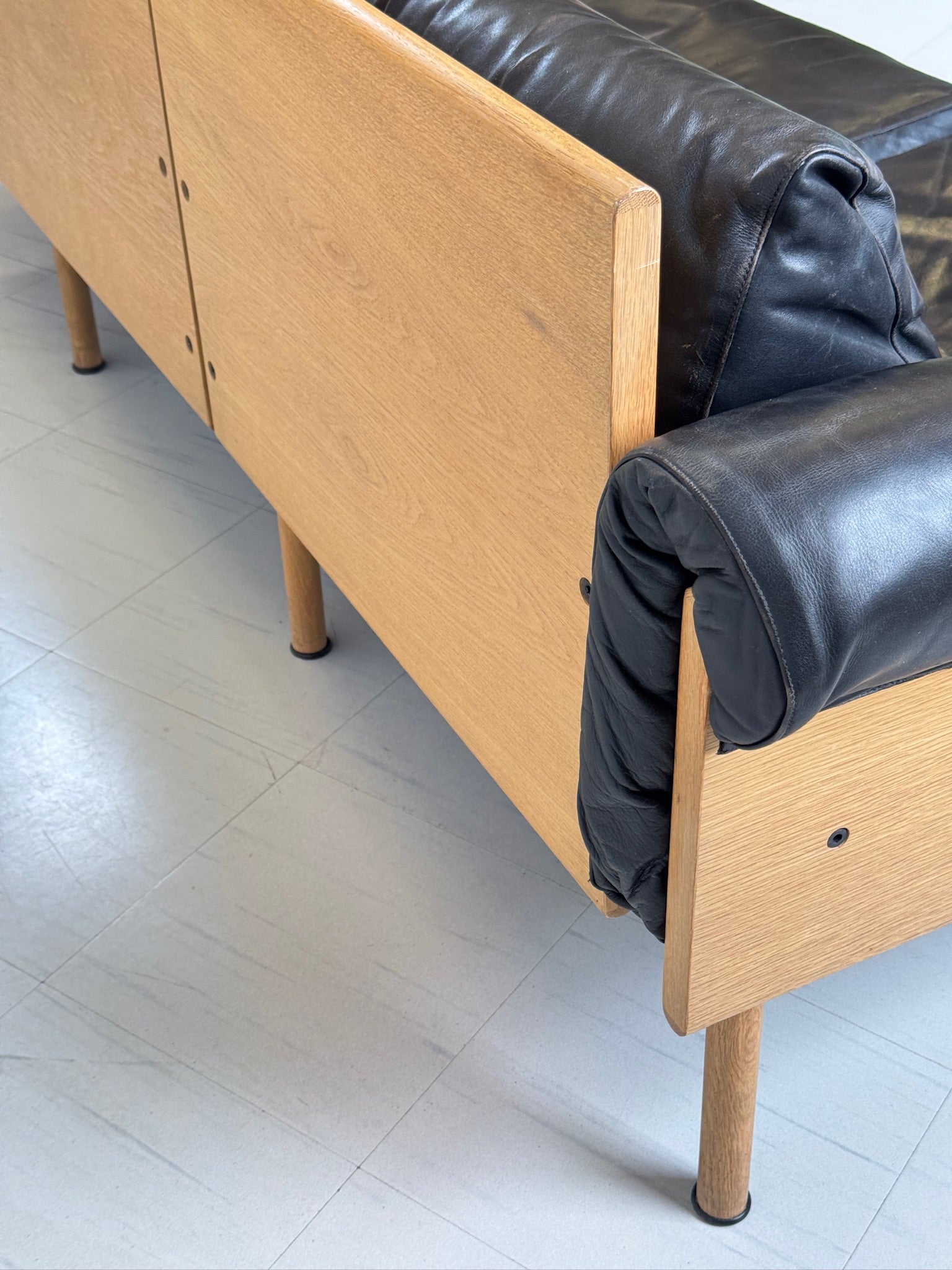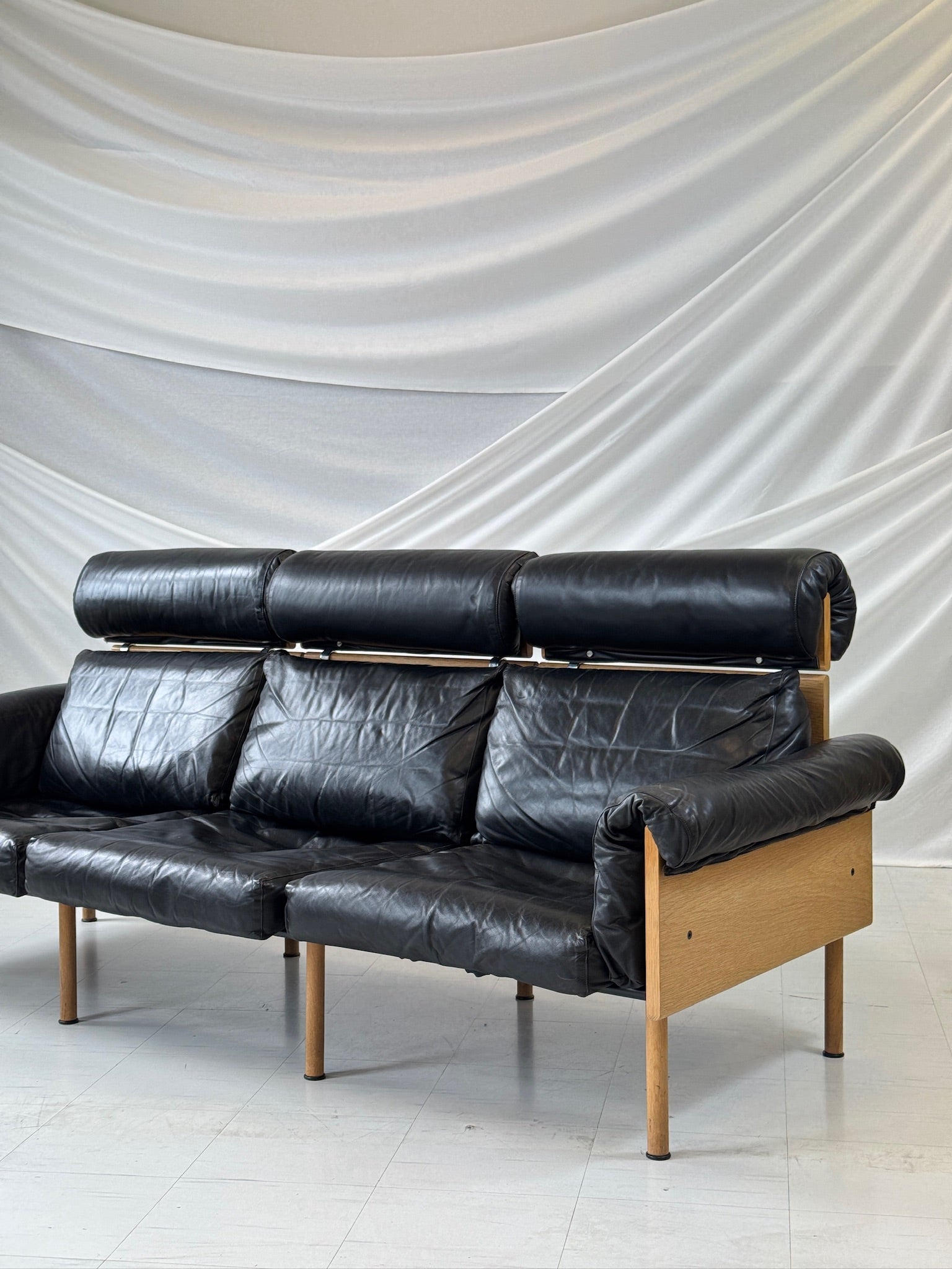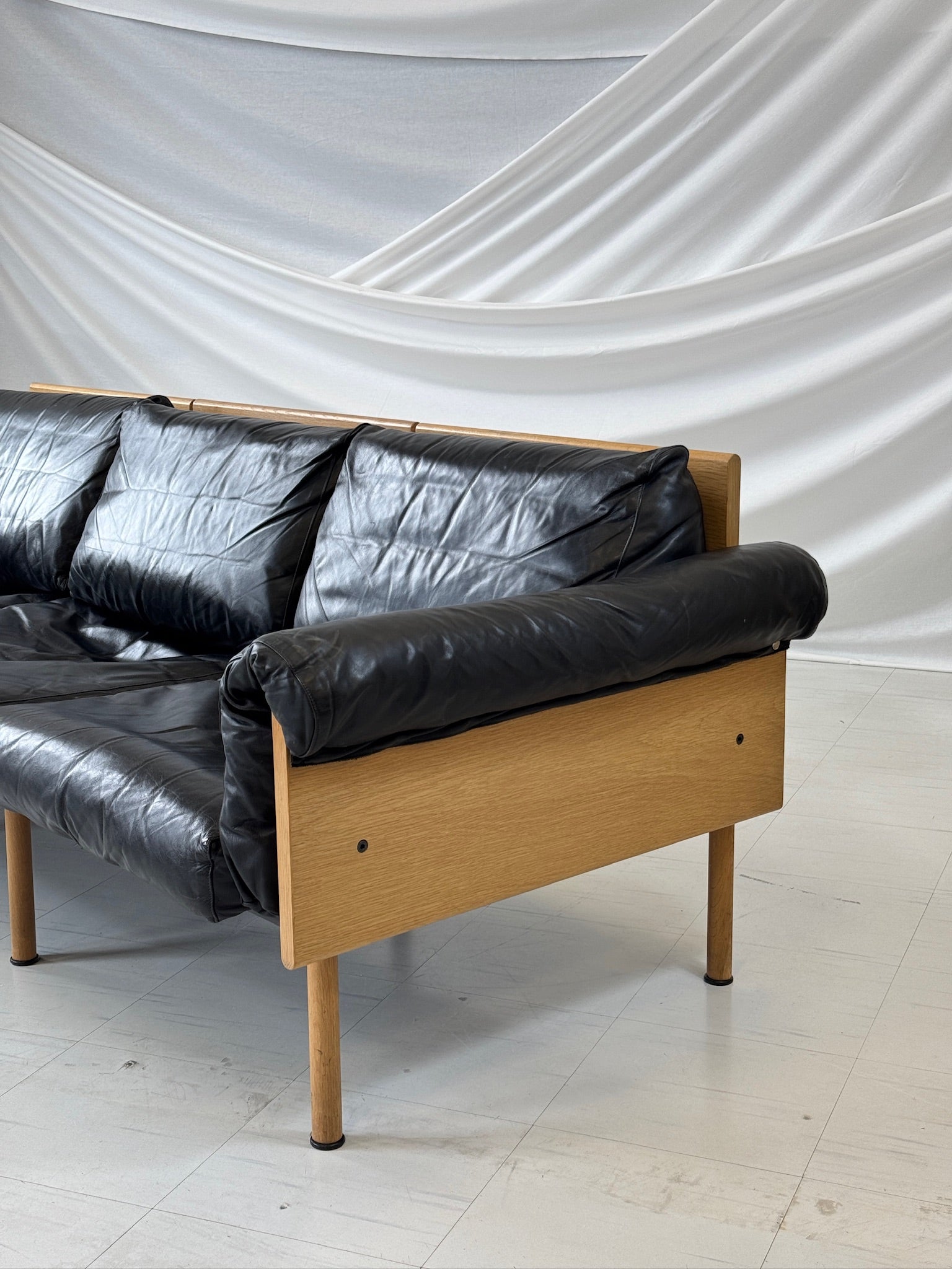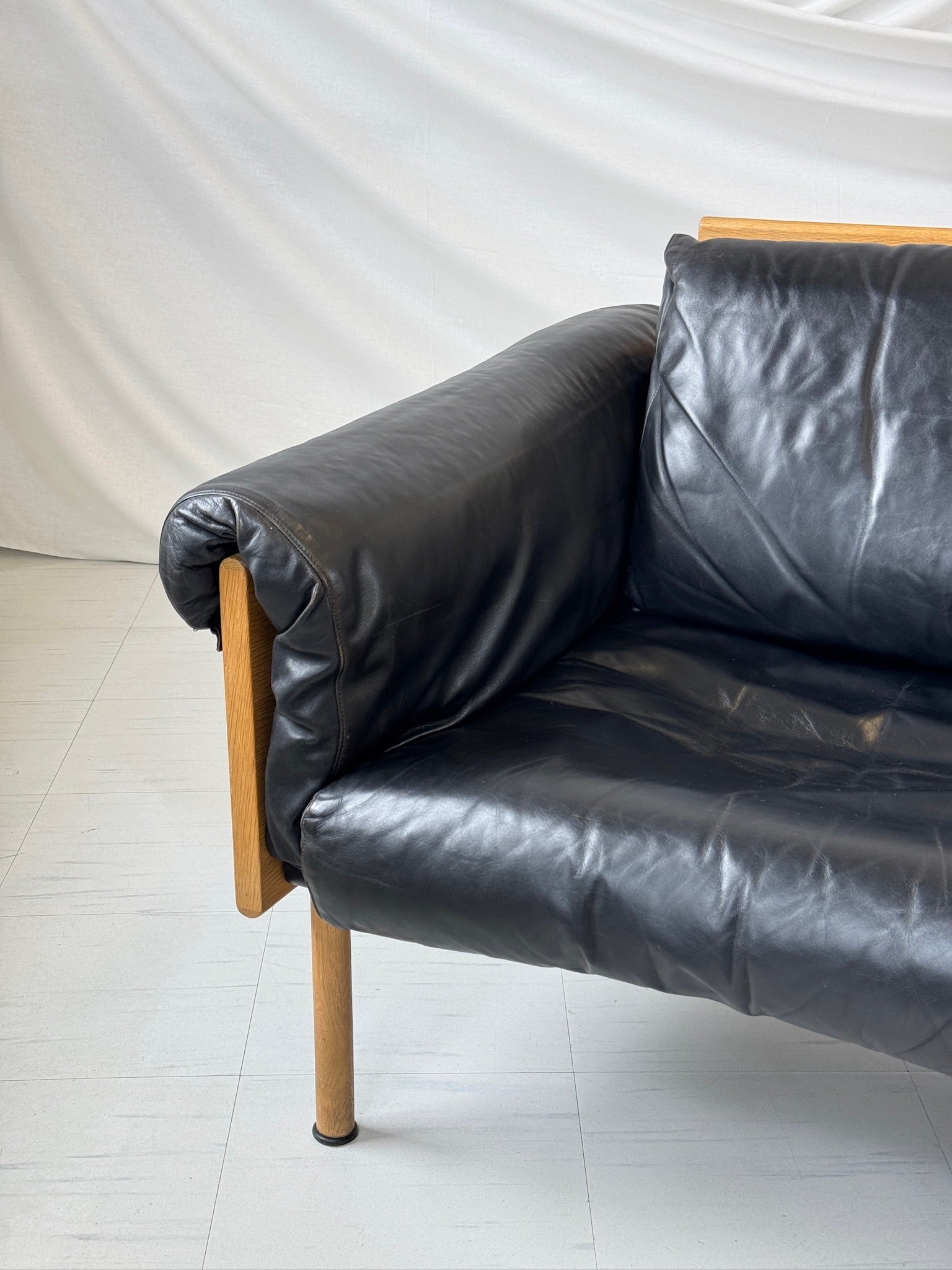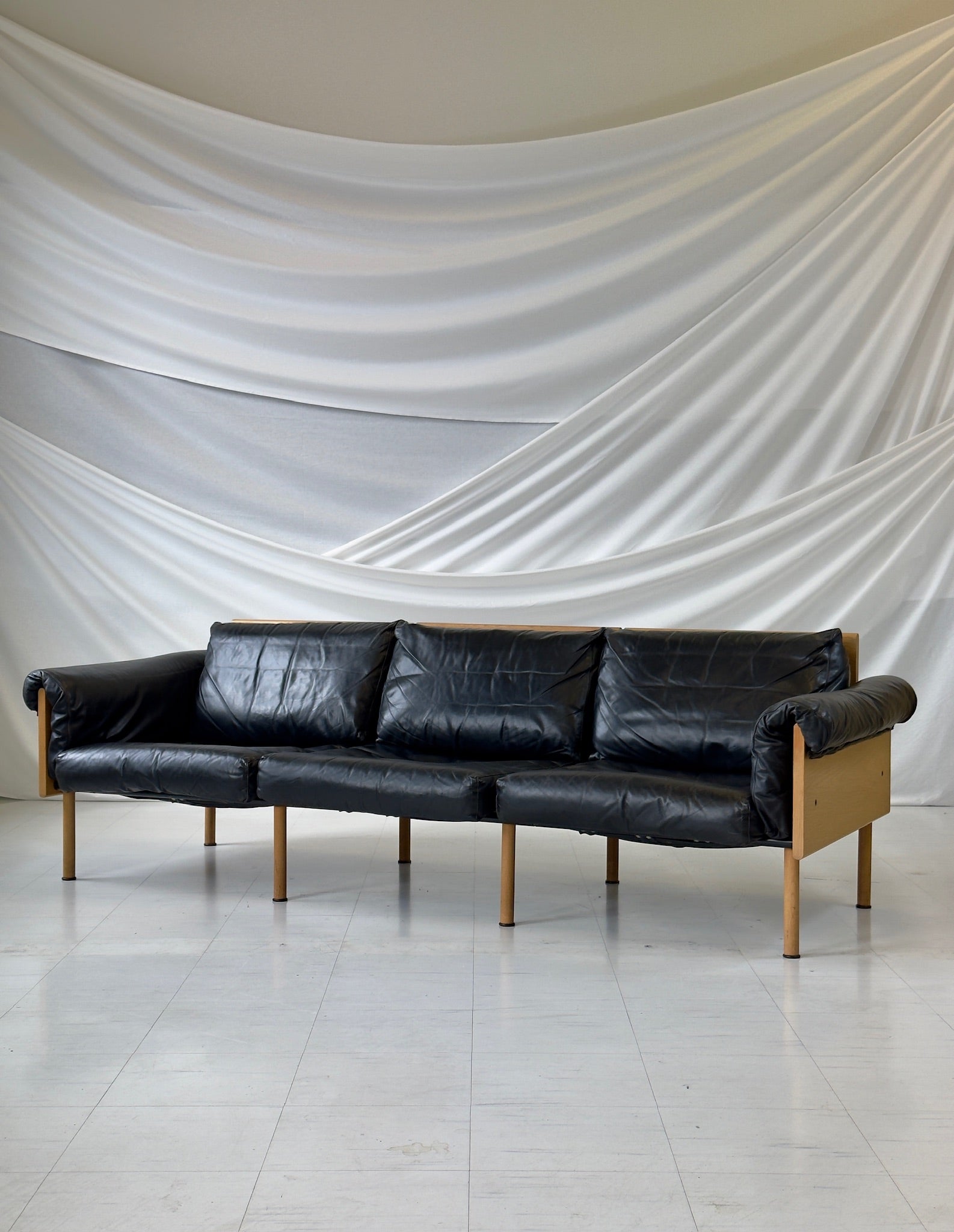 フィンランドの建築家ユルヨ・クッカプロが1960年代にデザインした「アテルジェ」ソファは、スカンジナビア・モダニズムの象徴的な存在です。この3人掛けソファは、ミニマルな無垢材とスチールのフレームに、たっぷりとしたレザーのクッションを配し、人間工学に基づいた快適性と構造の明瞭さを追求するクッカプロならではのこだわりを反映しています。