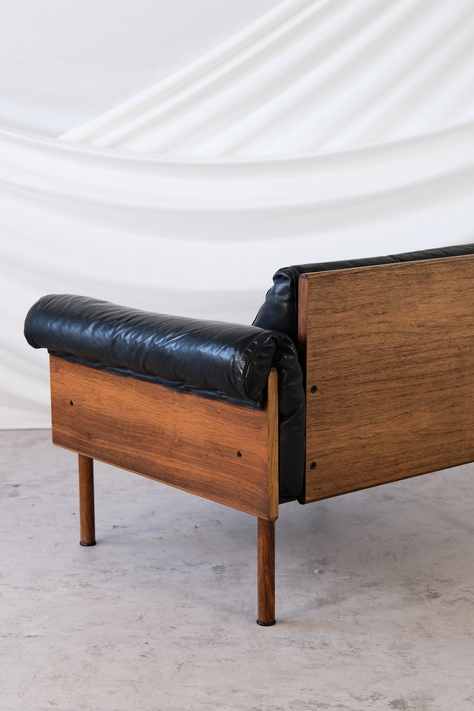 The Yrjö Kukkapuro Ateljee armchair, crafted by Haimi, combines timeless design with exceptional comfort. Featuring a sturdy rosewood frame and premium black leather upholstery, Its sculptural form reflects Kukkapuro’s signature ergonomic approach, making it a refined choice for both modern and classic interiors. Durable materials and expert craftsmanship ensure lasting quality and style.
