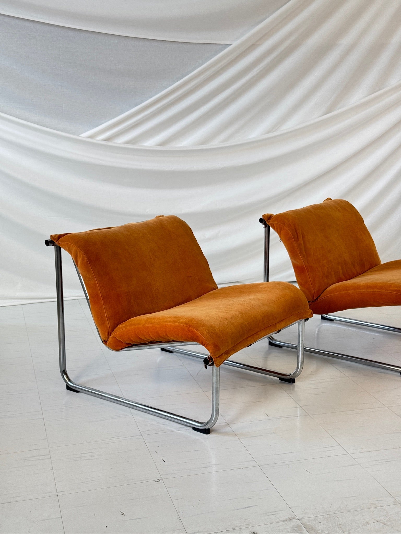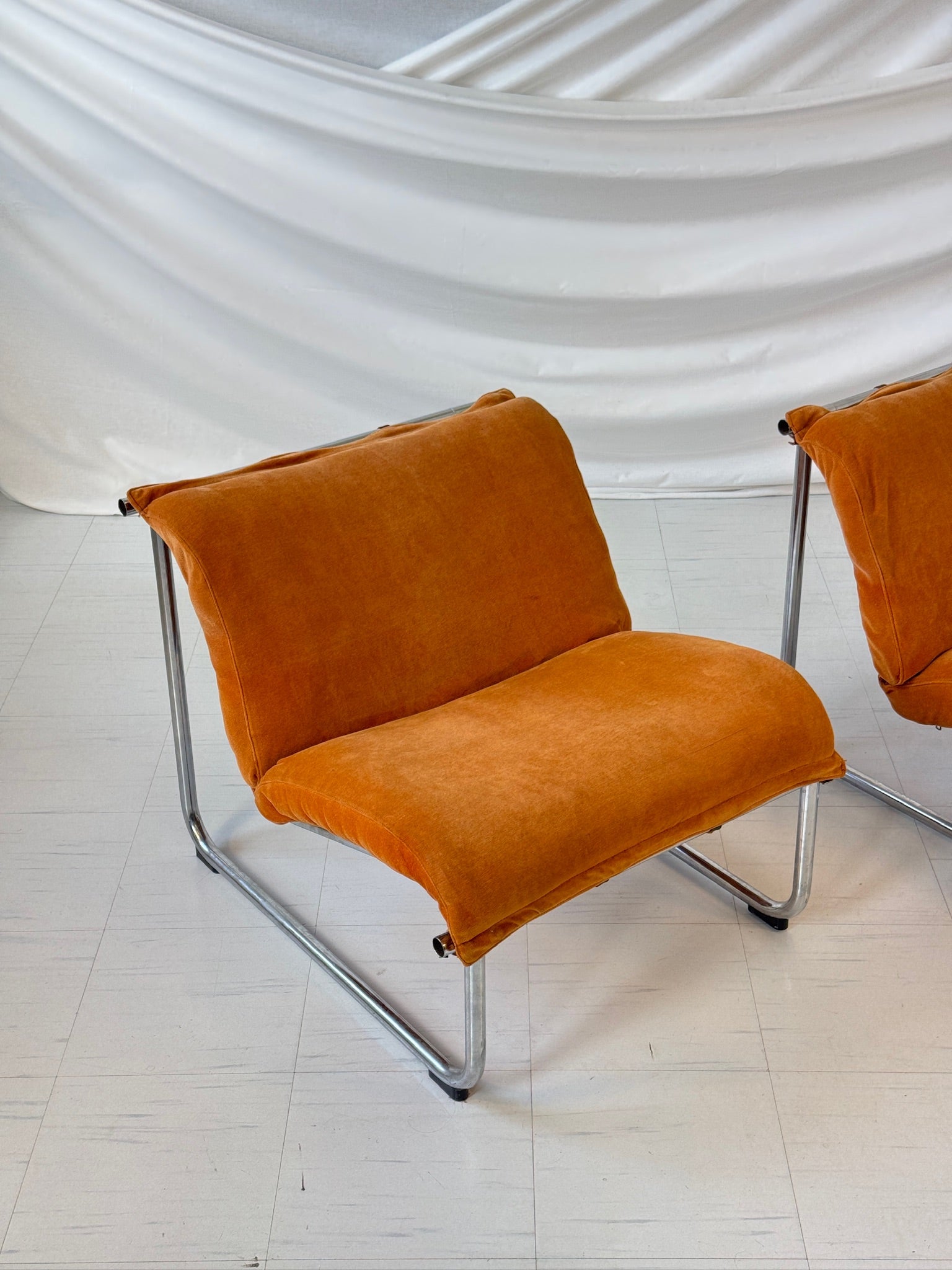 この椅子はヴィンテージ品としては良好なコンディションで、経年によるわずかな使用感は見られますが、良好な状態です。張り地は良好な状態を保っており、フレームはオリジナルのクローム仕上げを保っています。詳細については、詳細な写真をご請求ください。