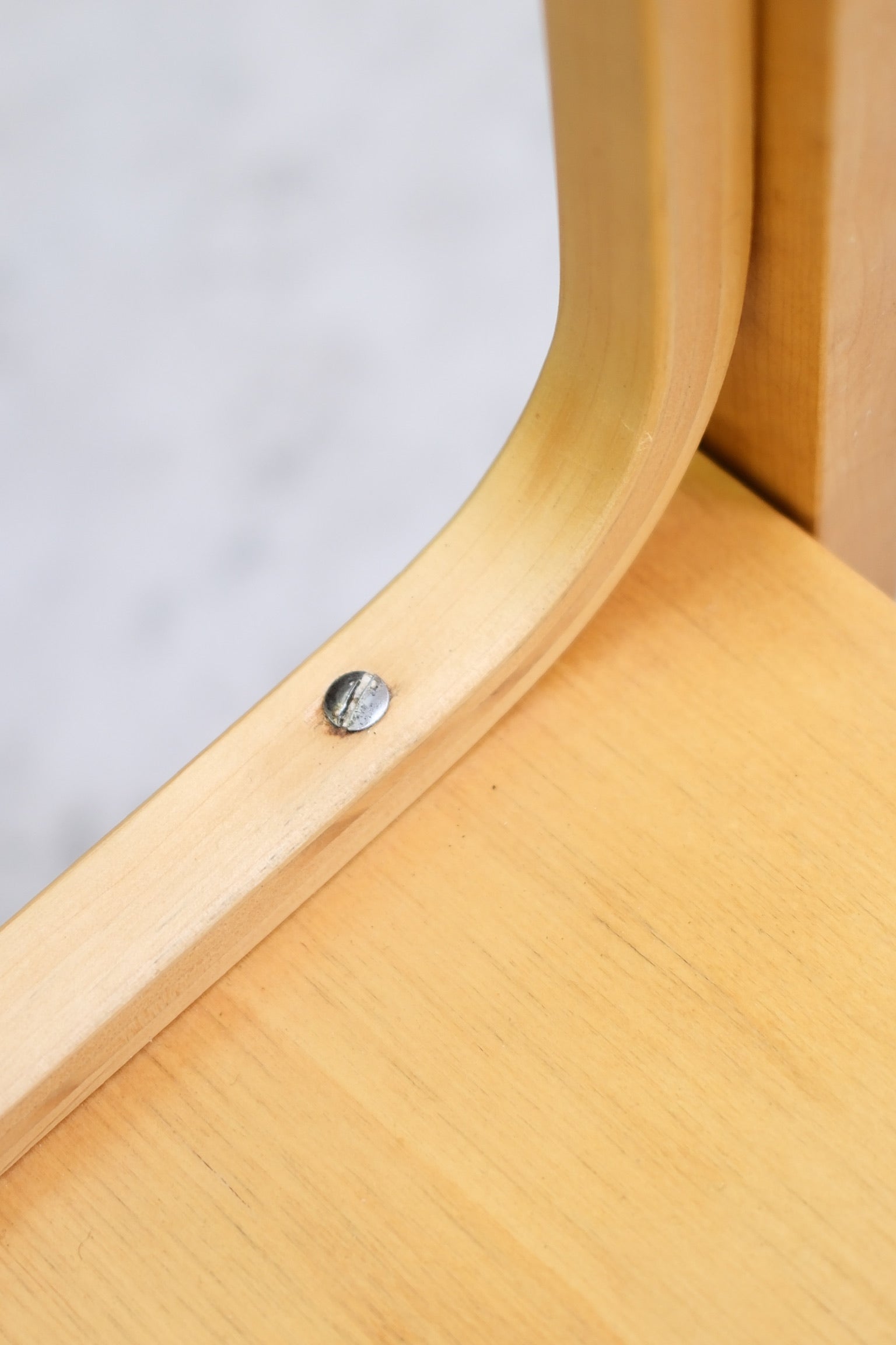 Original Alvar Aalto 112B wall shelf, designed for Artek in the 1930s and produced in the 1950s. This two-part version features Aalto’s signature bent birch brackets and two birch veneer shelves with beautiful warm patina. Notable construction details include finger-jointed shelves and original flat-head screws, highlighting Artek’s refined mid-century craftsmanship.
