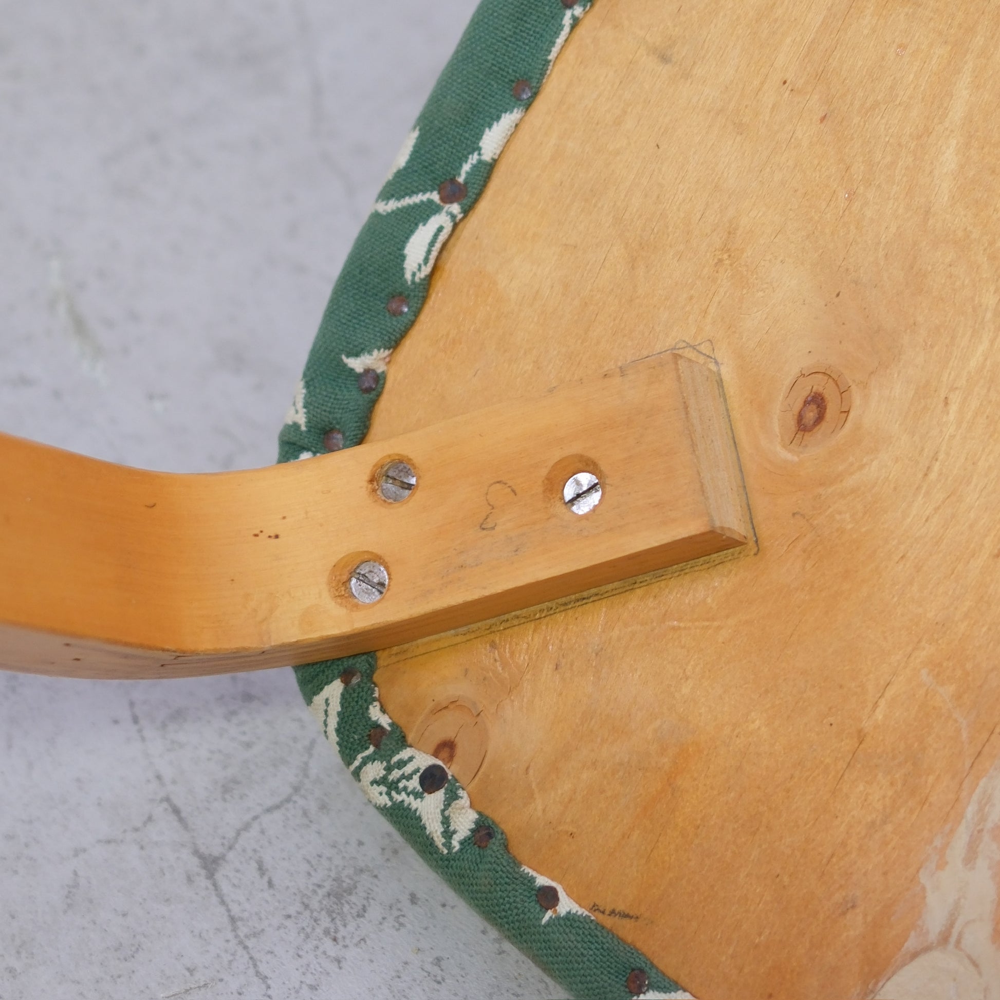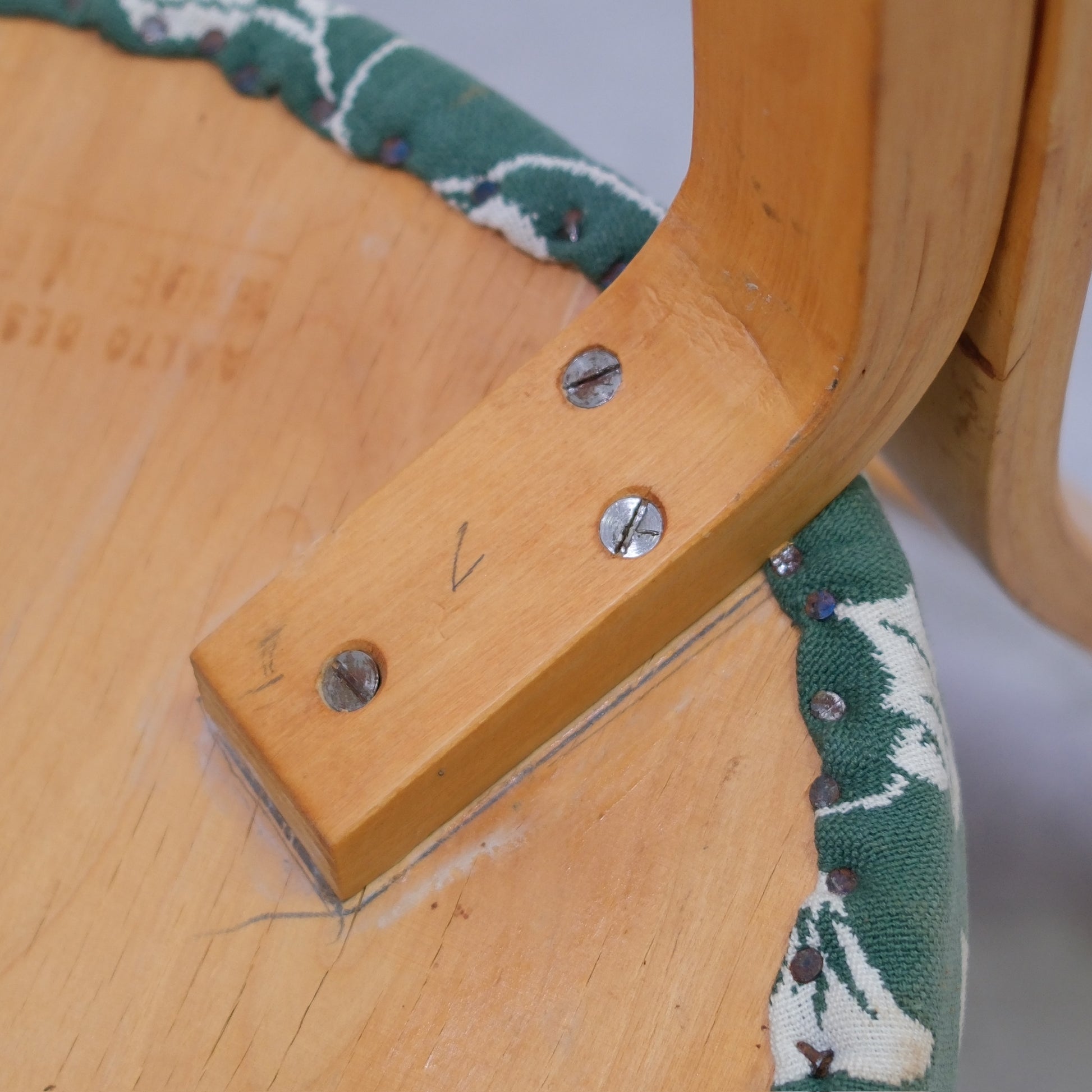 This set of Artek 69 chairs comes with a beautiful early character, and the underside features a 1930s Artek stamp, which is a great detail for collectors. The look is classic Aalto-Artek, warm birch frames with a calm, honest silhouette. The added upholstery gives them a softer feel in the room, and they work especially well around a wooden table, in a kitchen corner, or as mixed seating in a more collected interior.