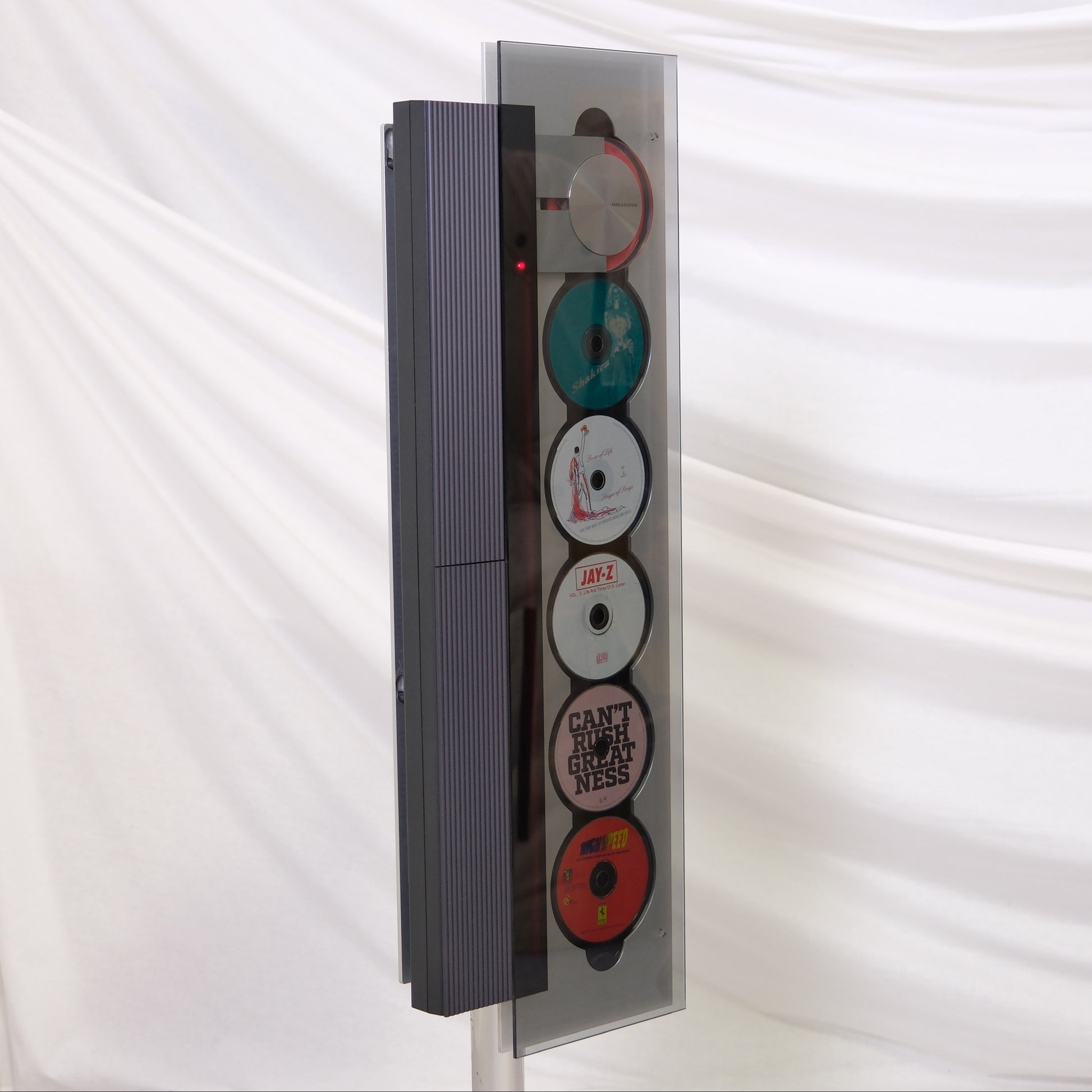 Beosound 9000 is one of Bang and Olufsen’s most iconic designs from the CD era. Originally launched in 1996 and designed by David Lewis, it was created to make the movement of the discs part of the visual experience. The six CDs are displayed behind glass, and the mechanical arm glides with that precise, almost theatrical B and O feel.