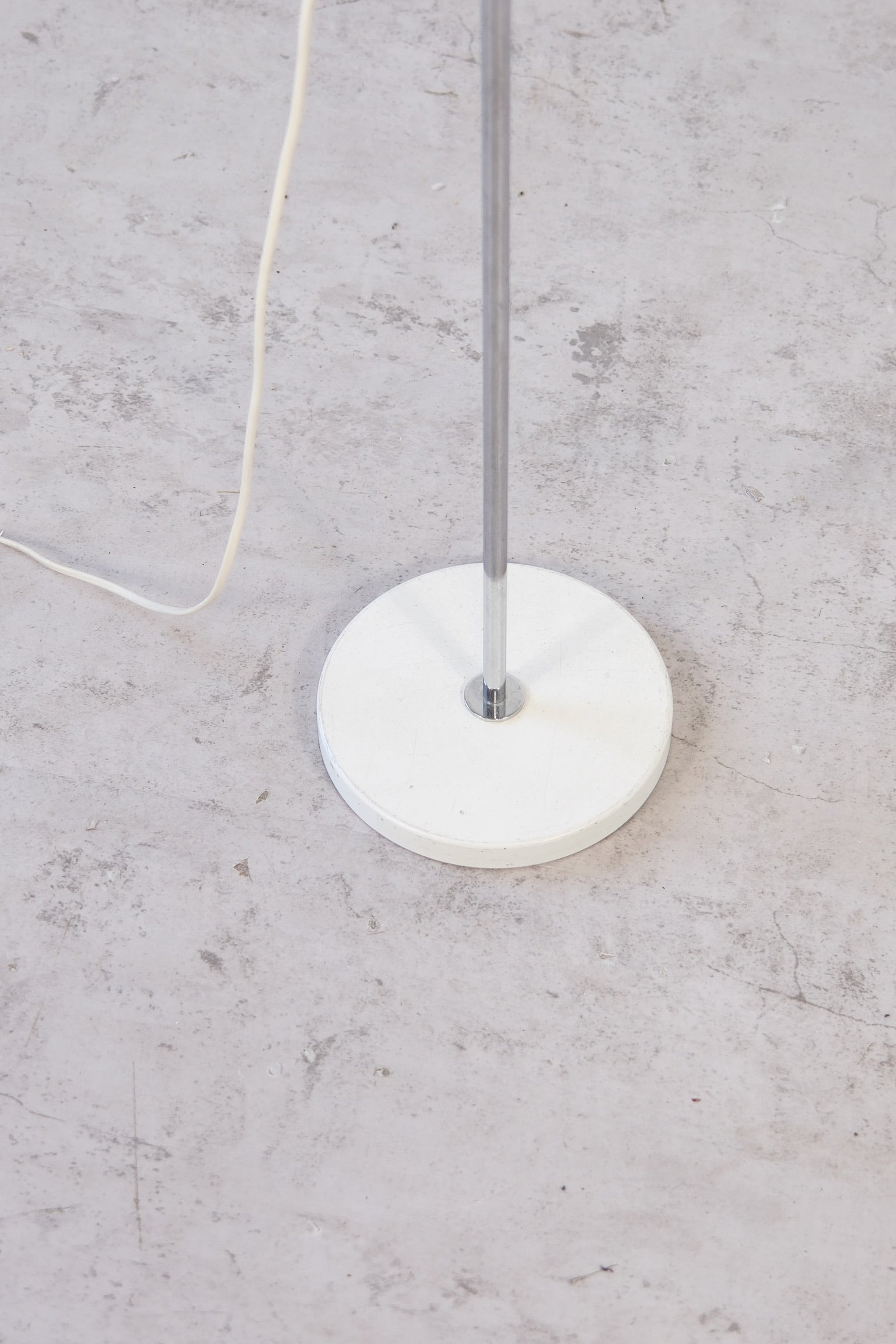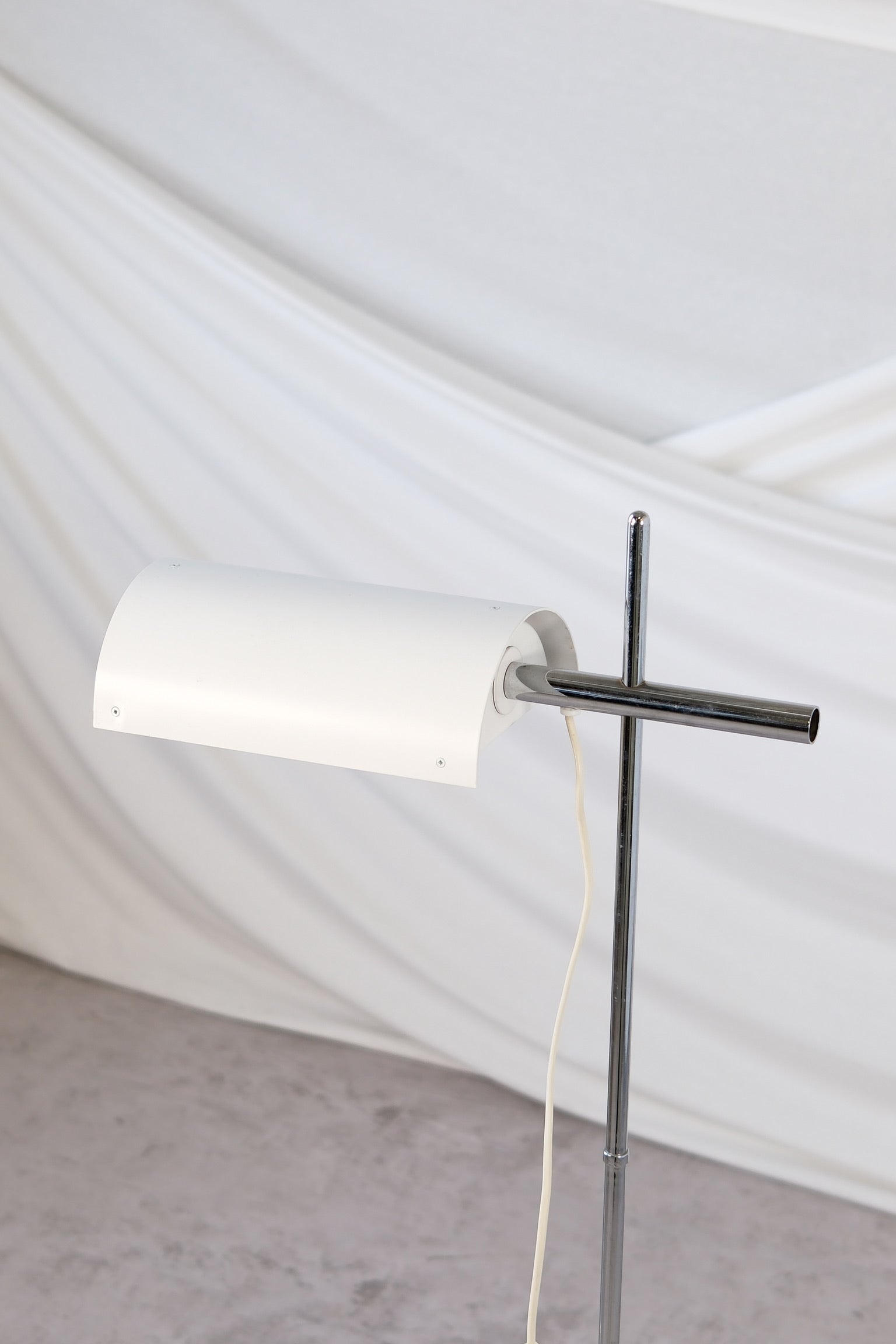 Designed by Ben af Schultén for Artek, this minimalist floor lamp embodies the refined functionality of Finnish modern design. With its clean lines, white lacquered shade, and chrome-plated steel frame, the lamp provides a balanced, adjustable light ideal for reading or accent lighting.