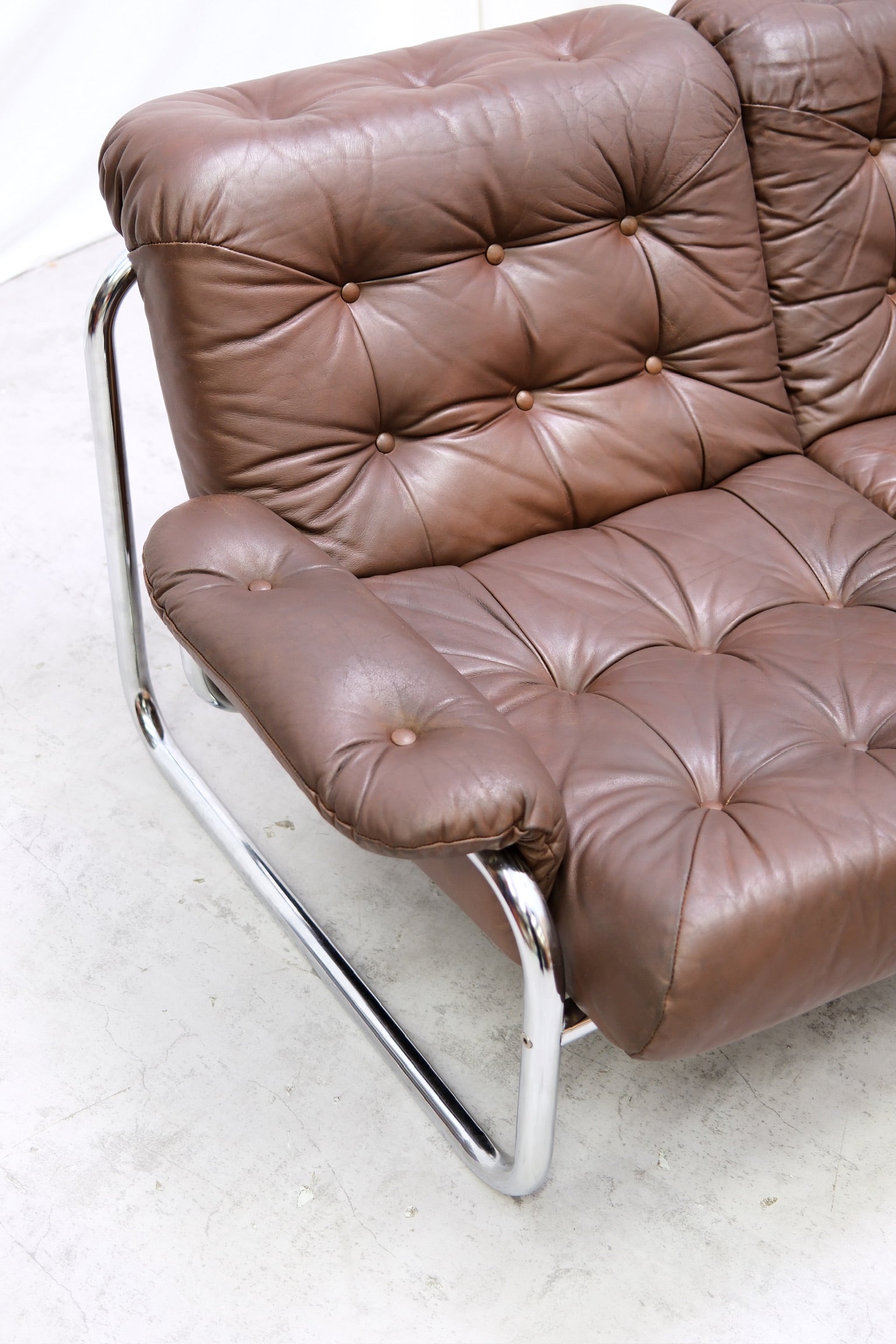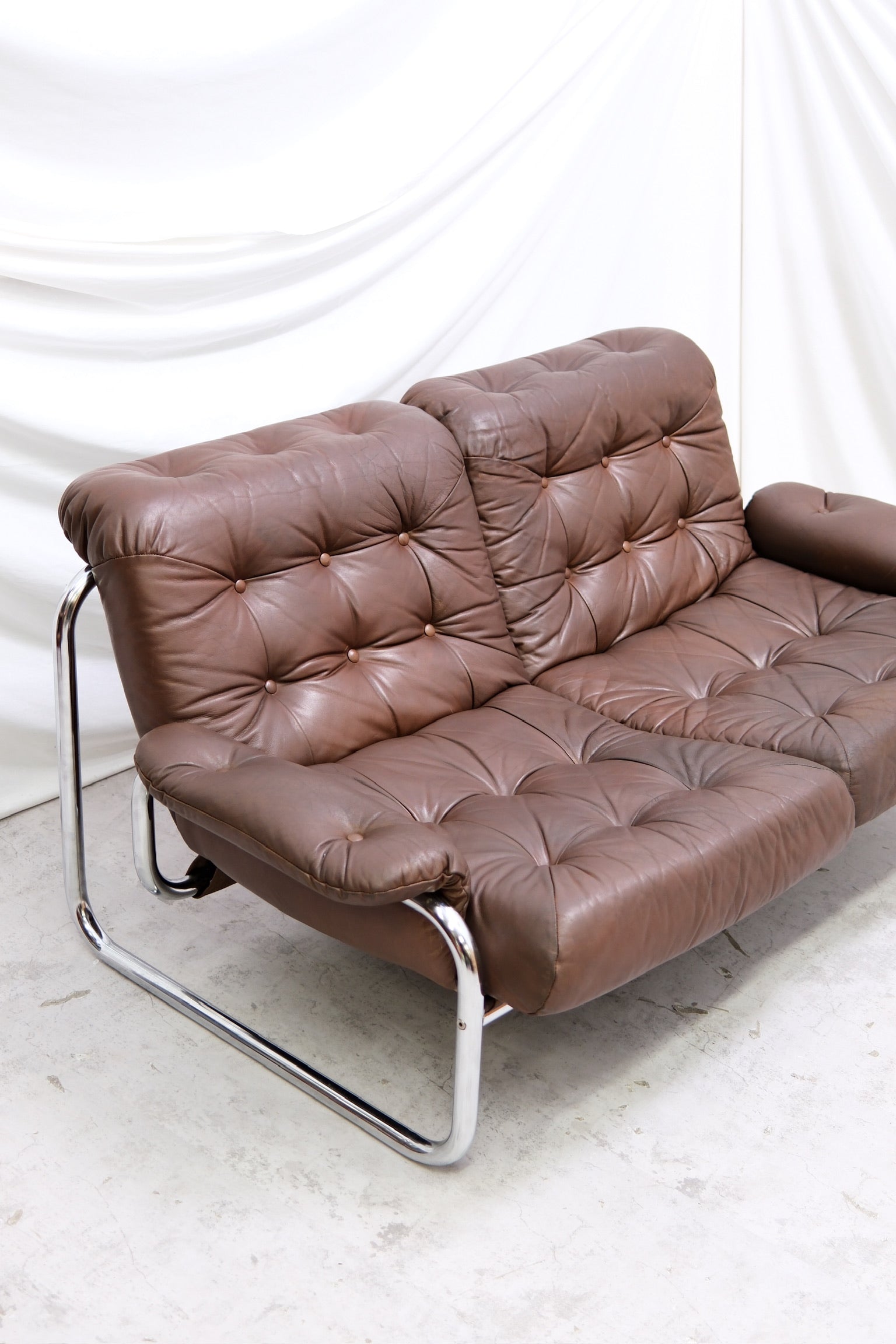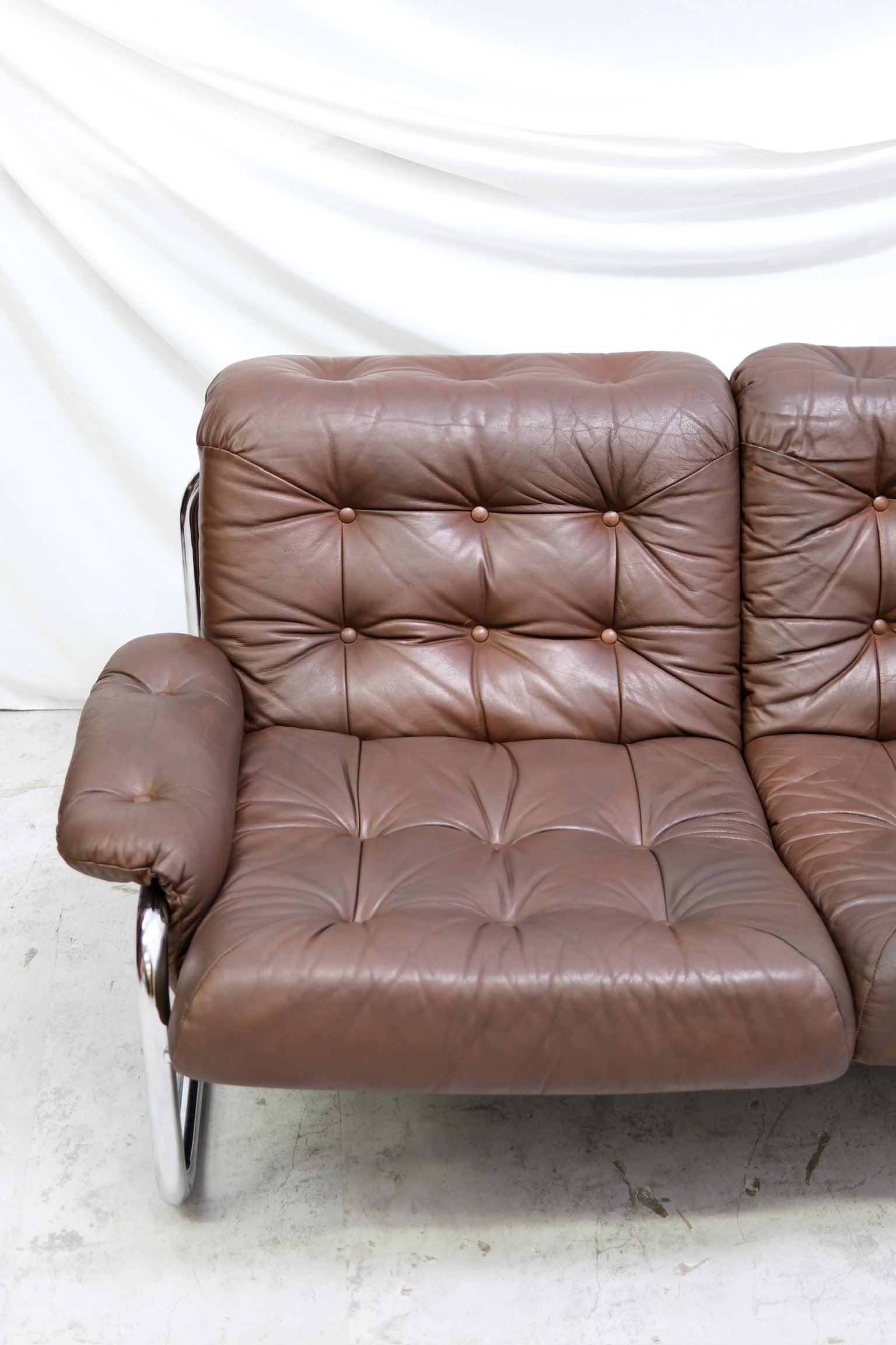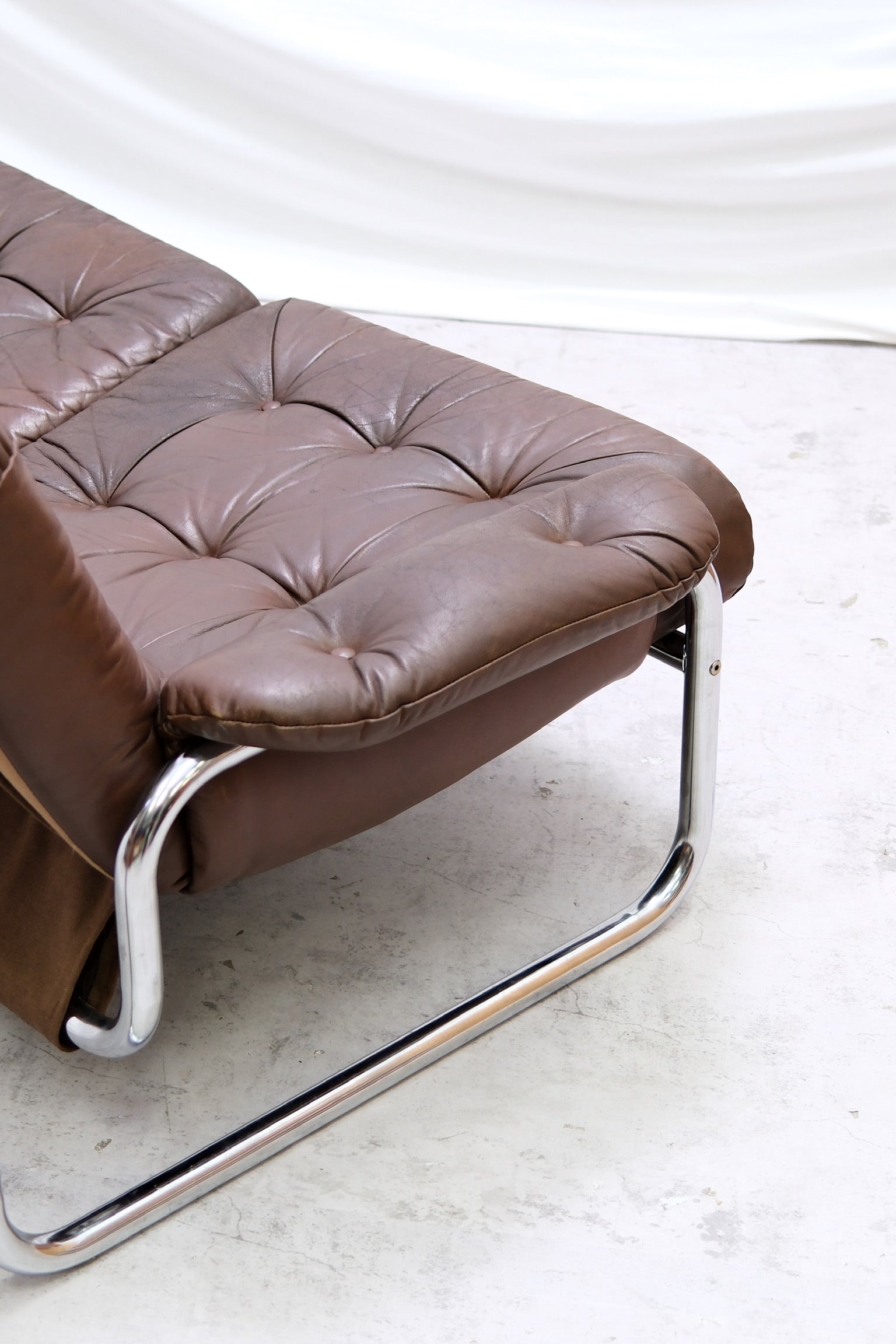 1970년대 이케아를 위해 요한 베르틸 헤그스트룀이 디자인한 보르쿰 소파는 진정한 디자인의 고전입니다. 튜브형 크롬 프레임과 터프팅 가죽 커버는 시대를 초월하는 우아함과 편안함을 동시에 구현합니다. 이 희귀한 3인용 버전은 넉넉한 공간을 제공하여 거실의 중심 장식이나 모던한 작업 공간에 스타일리시한 포인트를 더하기에...