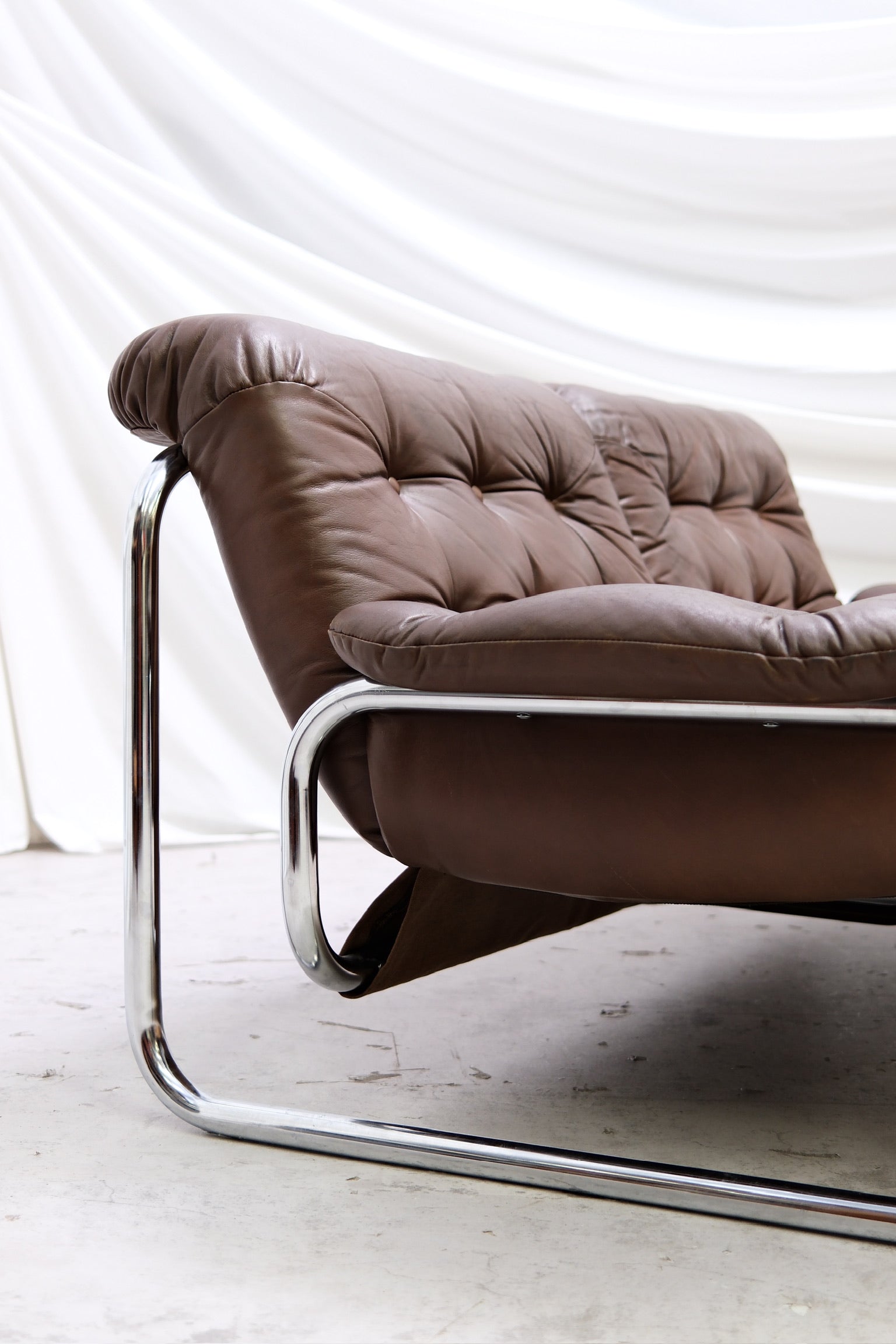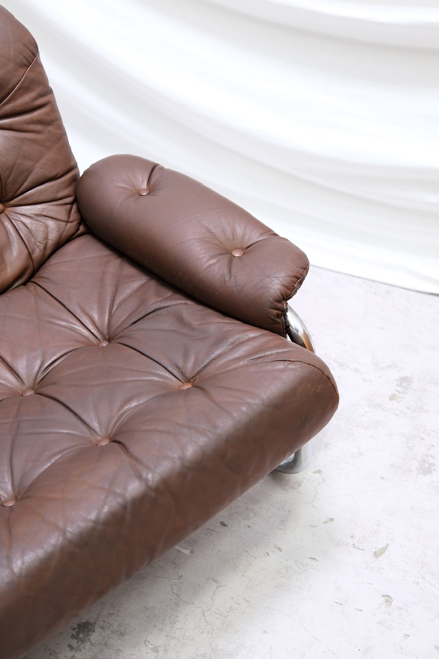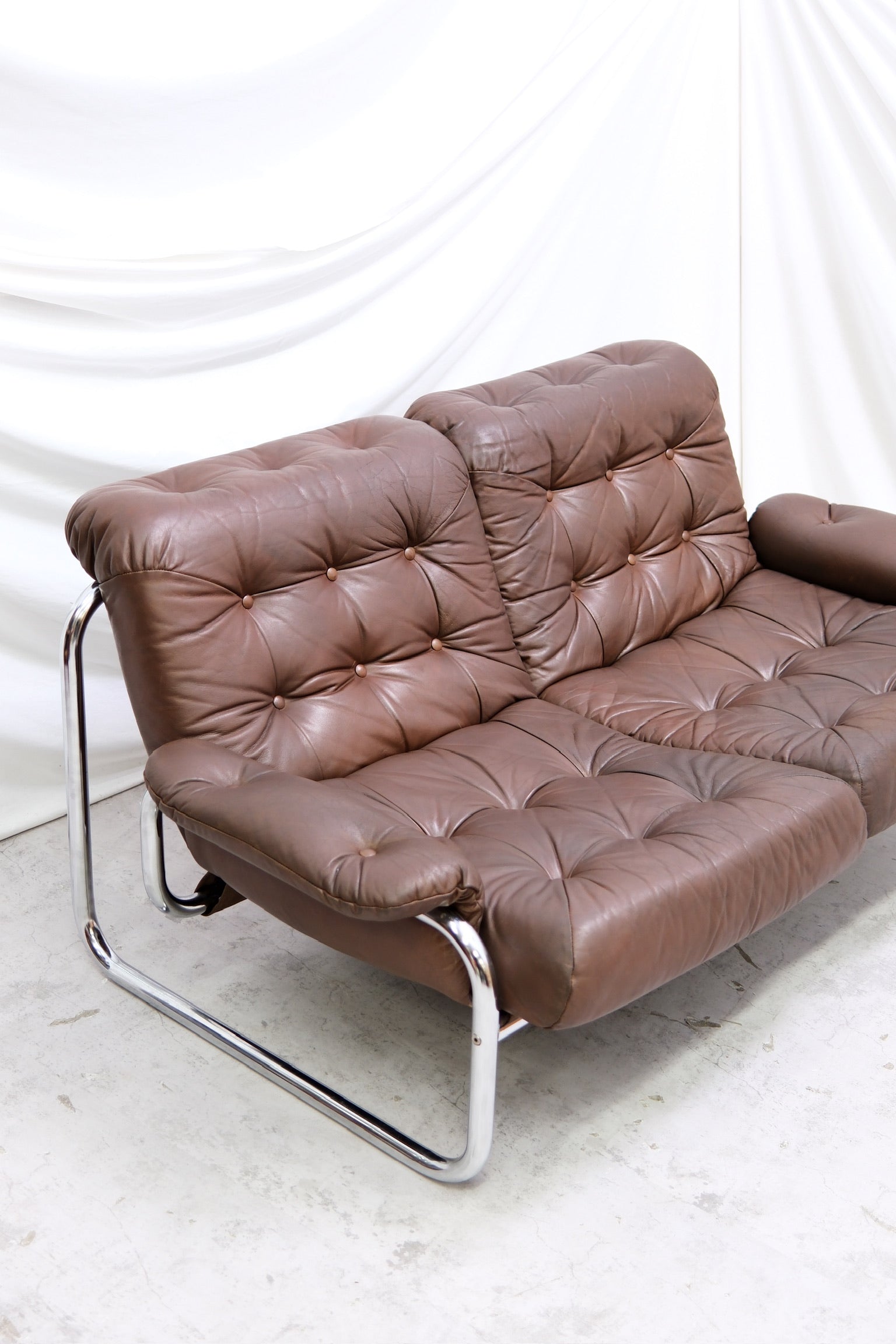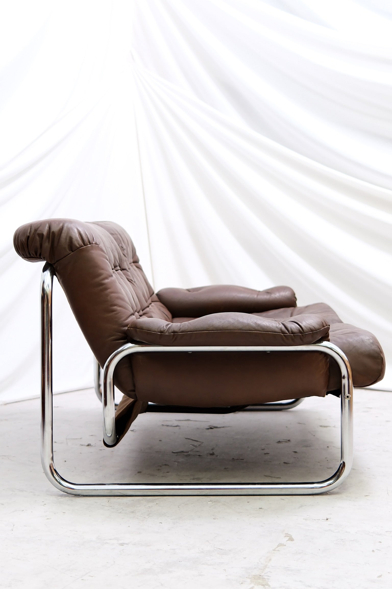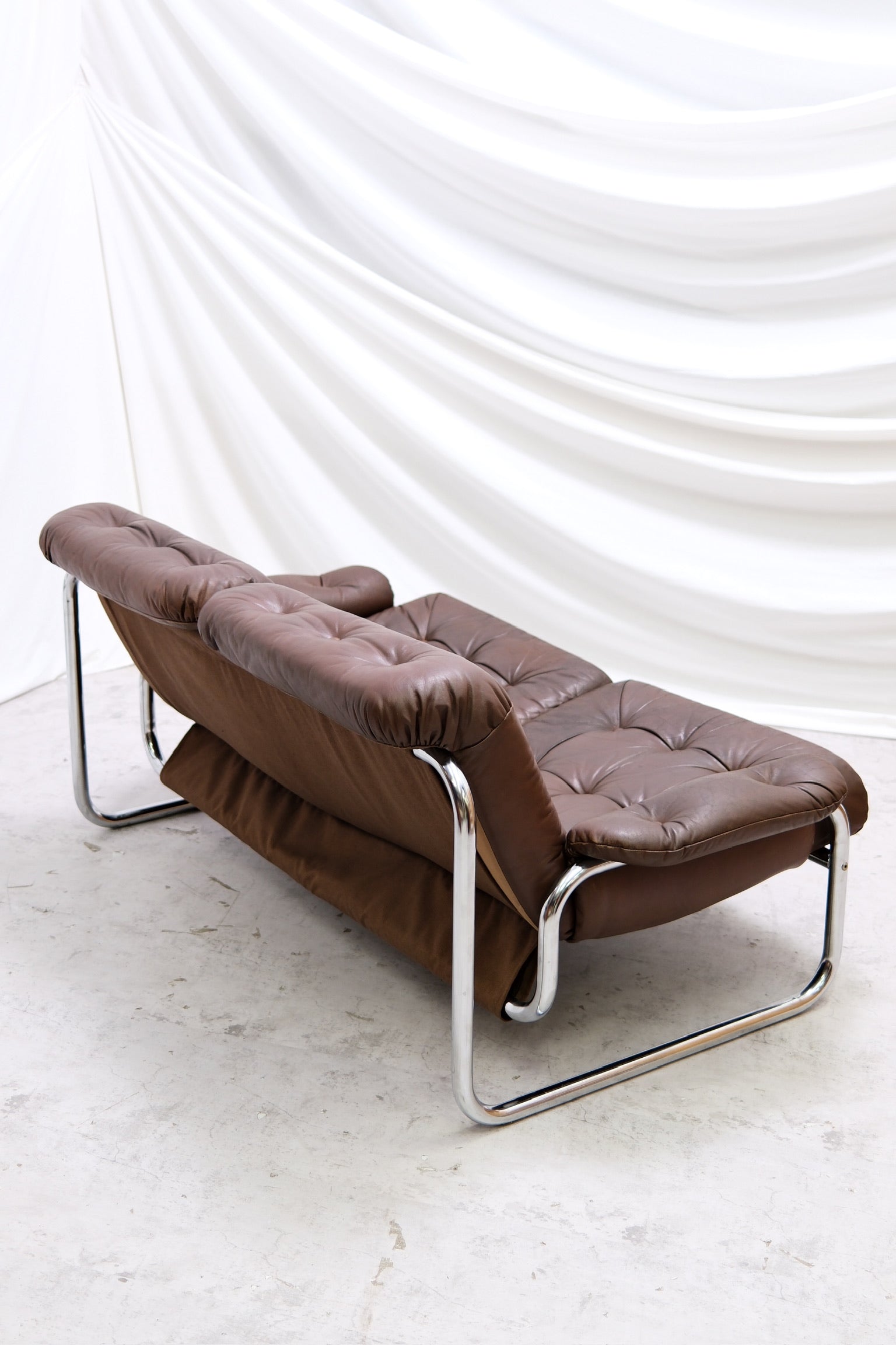 1970년대 이케아를 위해 요한 베르틸 헤그스트룀이 디자인한 보르쿰 소파는 진정한 디자인의 고전입니다. 튜브형 크롬 프레임과 터프팅 가죽 커버는 시대를 초월하는 우아함과 편안함을 동시에 구현합니다. 이 희귀한 3인용 버전은 넉넉한 공간을 제공하여 거실의 중심 장식이나 모던한 작업 공간에 스타일리시한 포인트를 더하기에...