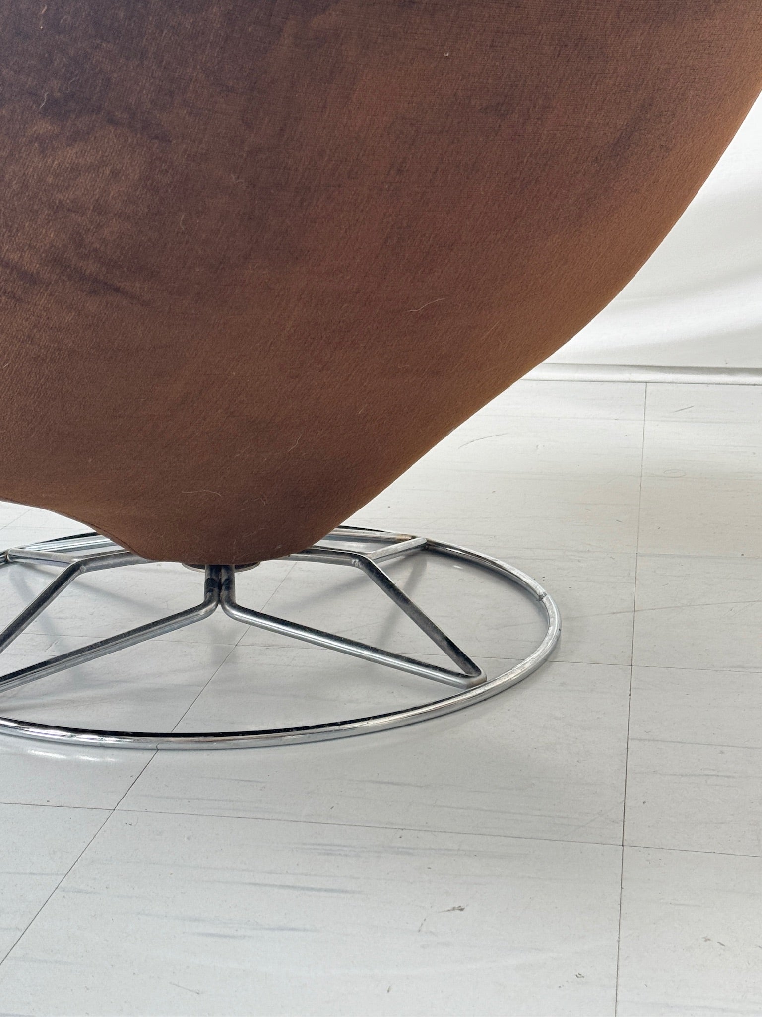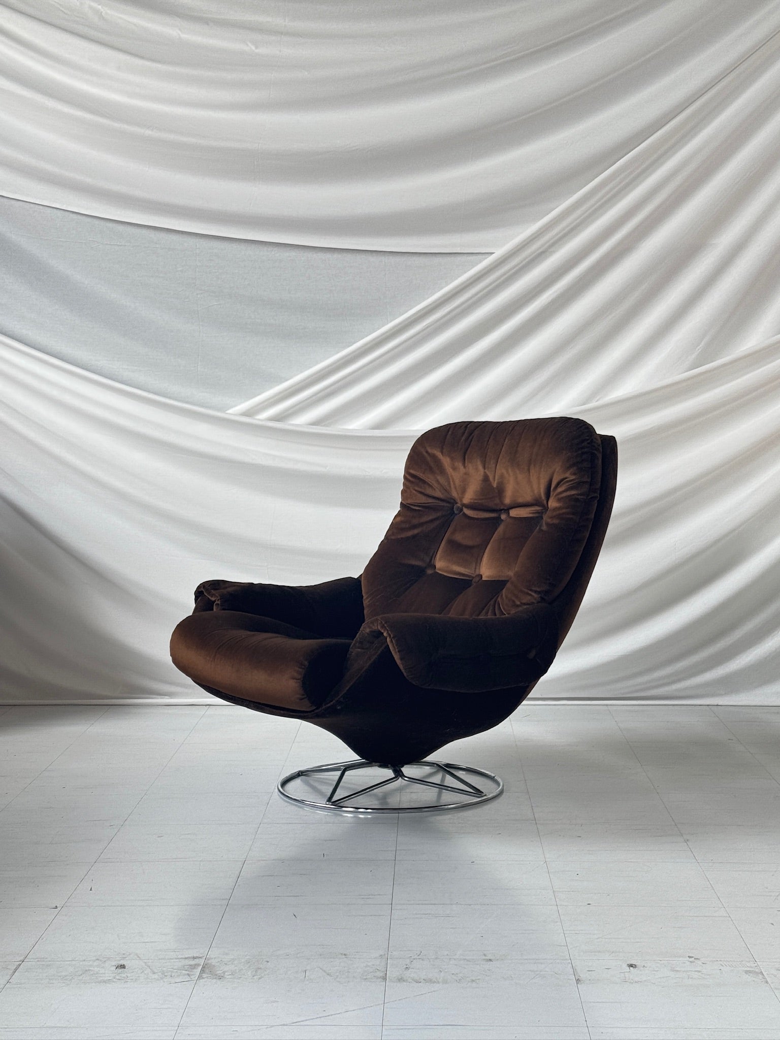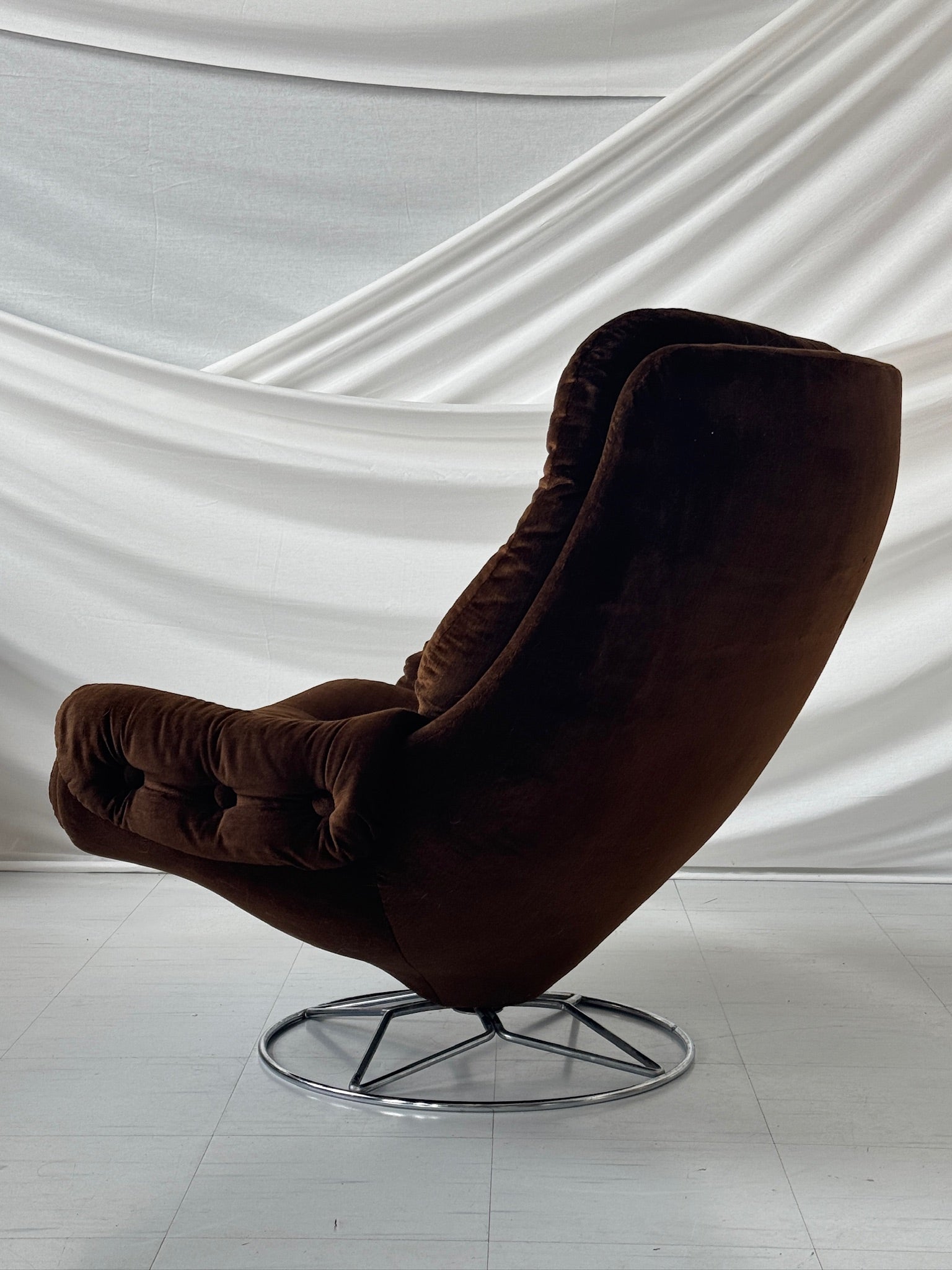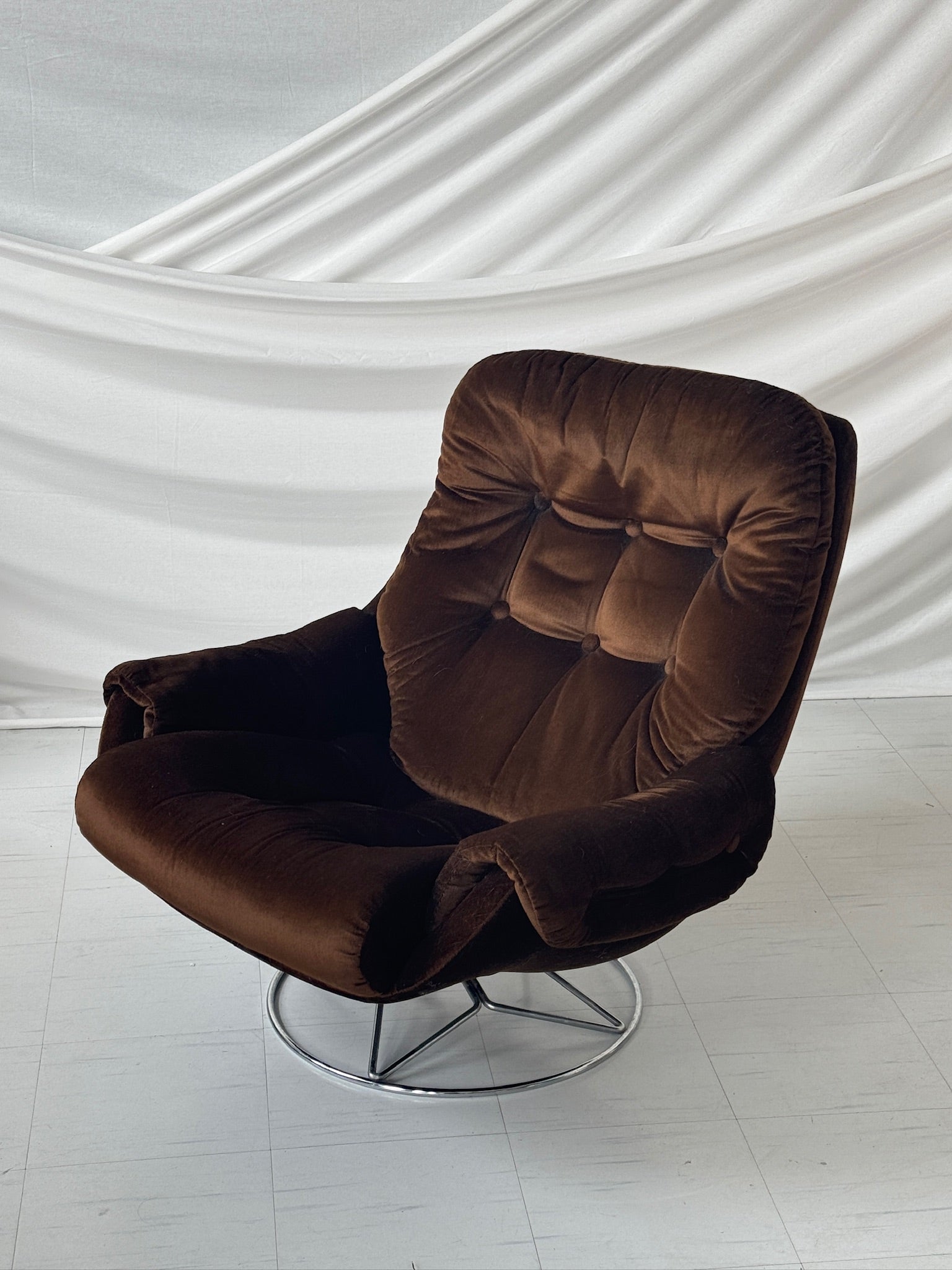 초콜릿 브라운 벨벳 소재의 빈티지 회전 라운지 의자