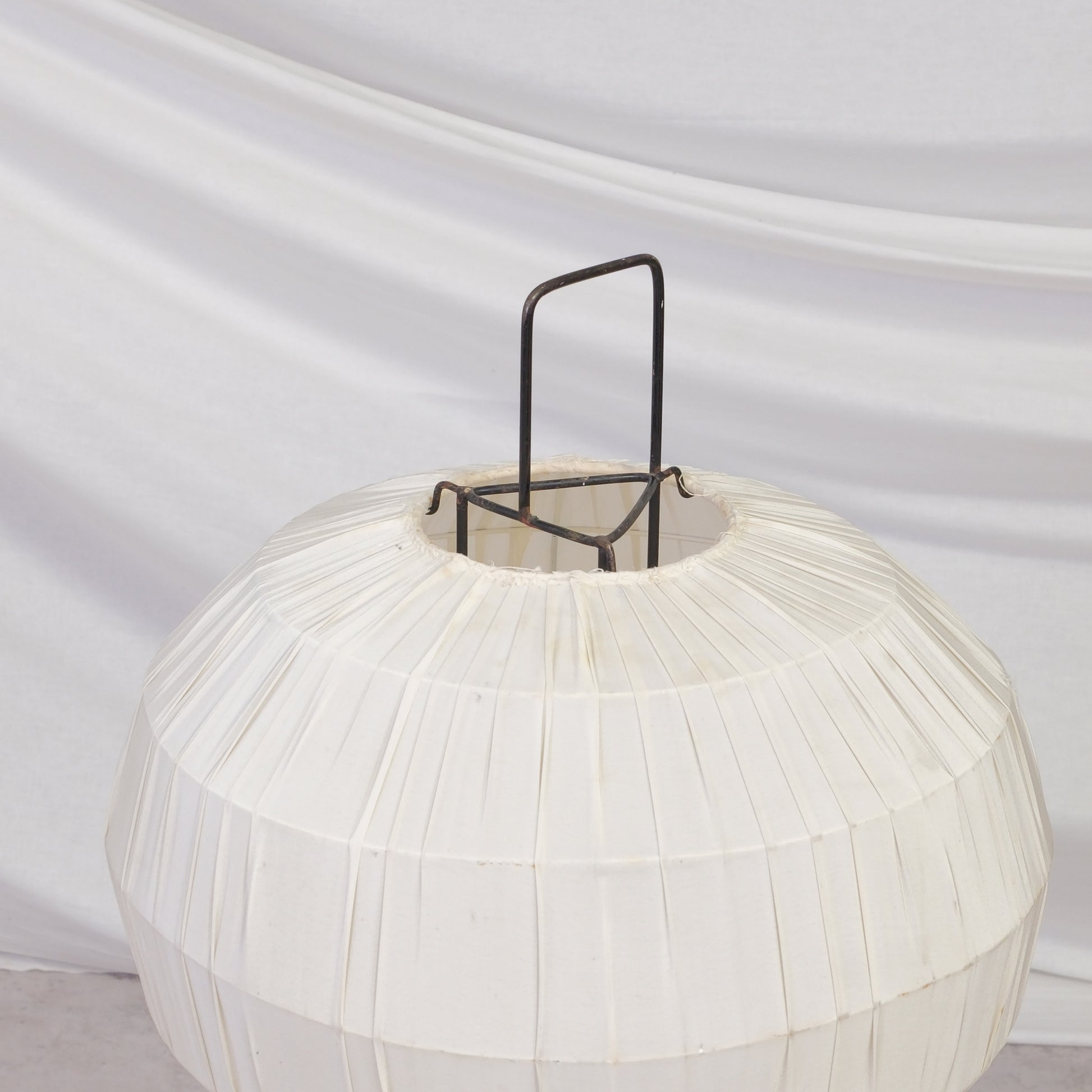 The paper shade has a couple of small holes but remains intact and functions well. Please request detailed photos for specifics.