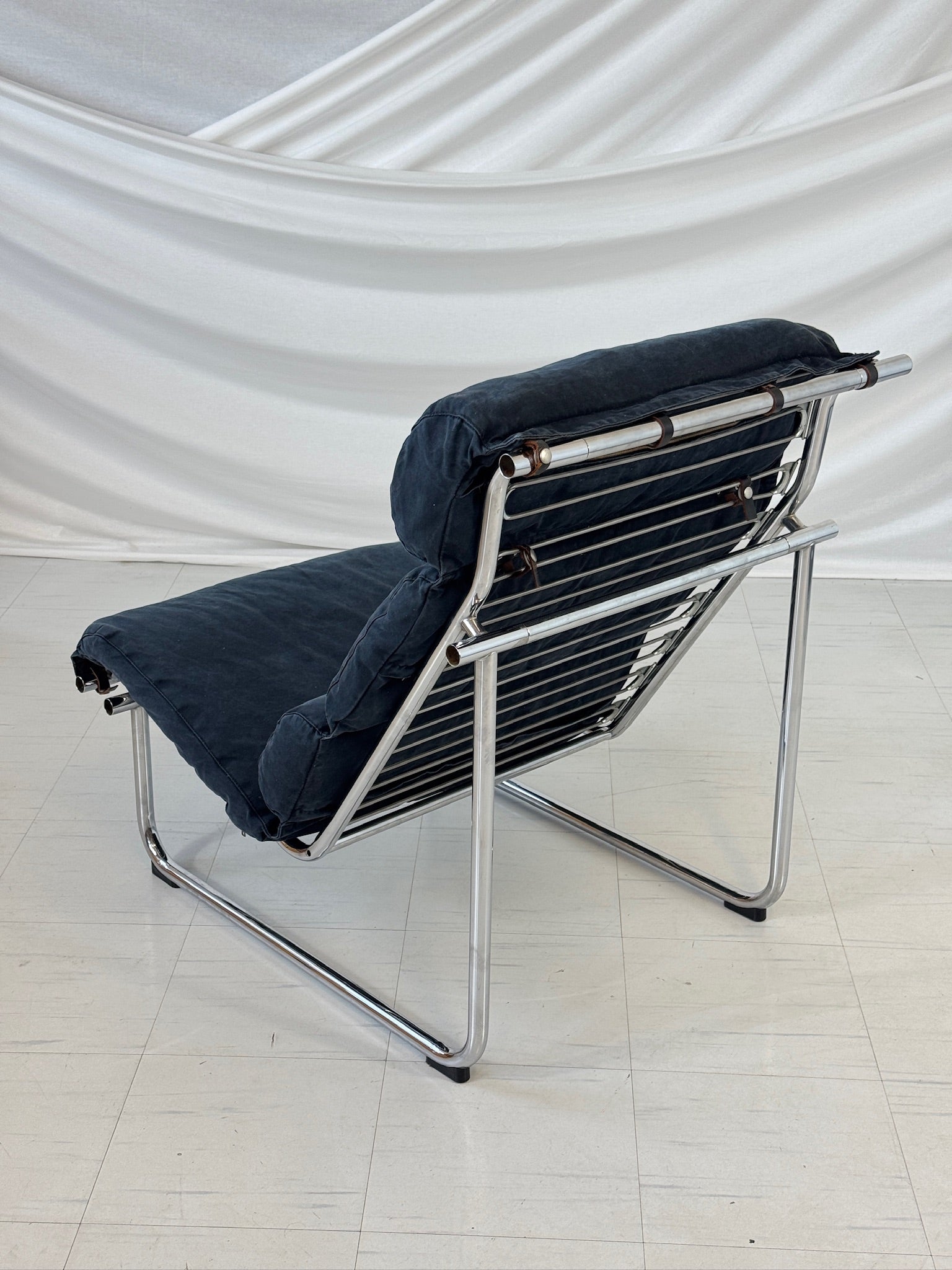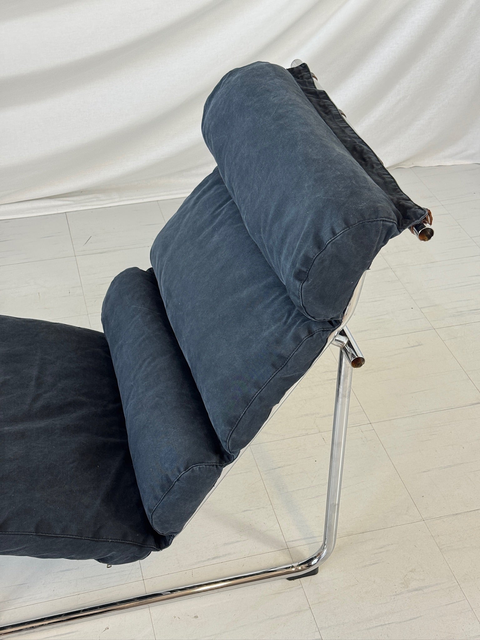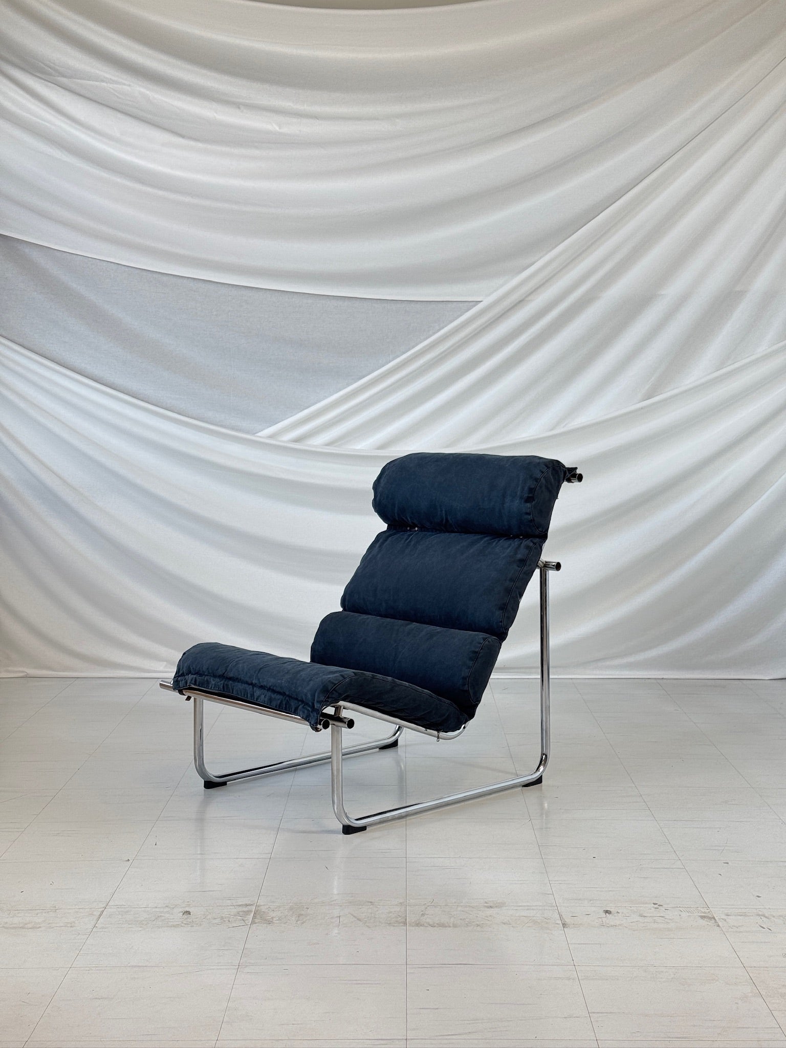 통풍이 잘 되고 상징적인 레미 라운지 체어는 현대적인 편안함과 시대를 초월하는 우아한 디자인을 자랑합니다. 크롬 도금 금속 프레임은 가볍고 유선형의 외관을 자랑하며, 넉넉한 쿠션감은 탁월한 착석감을 선사합니다. 이 특별한 의자는 스톤워싱 처리된 코튼으로 맞춤 제작한 아름다운 딥블루 패브릭 커버가 특징입니다....