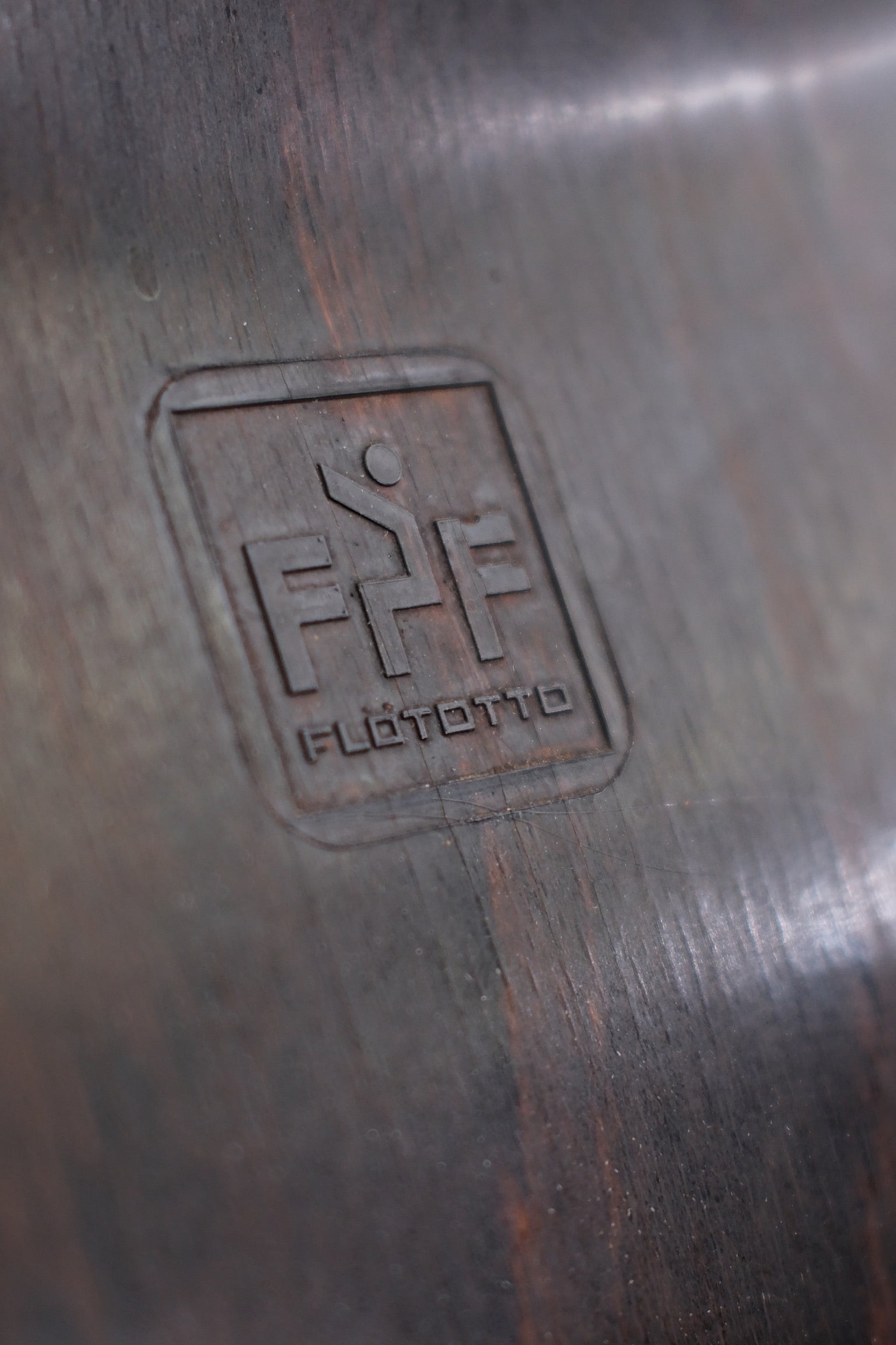 Classic German design from the 1970s. These Flötotto chairs are made from molded Pagholz plywood with a rich dark tone and chrome tubular legs. They’re sturdy, comfortable and easy to stack, which made them popular in schools, cafés and meeting...