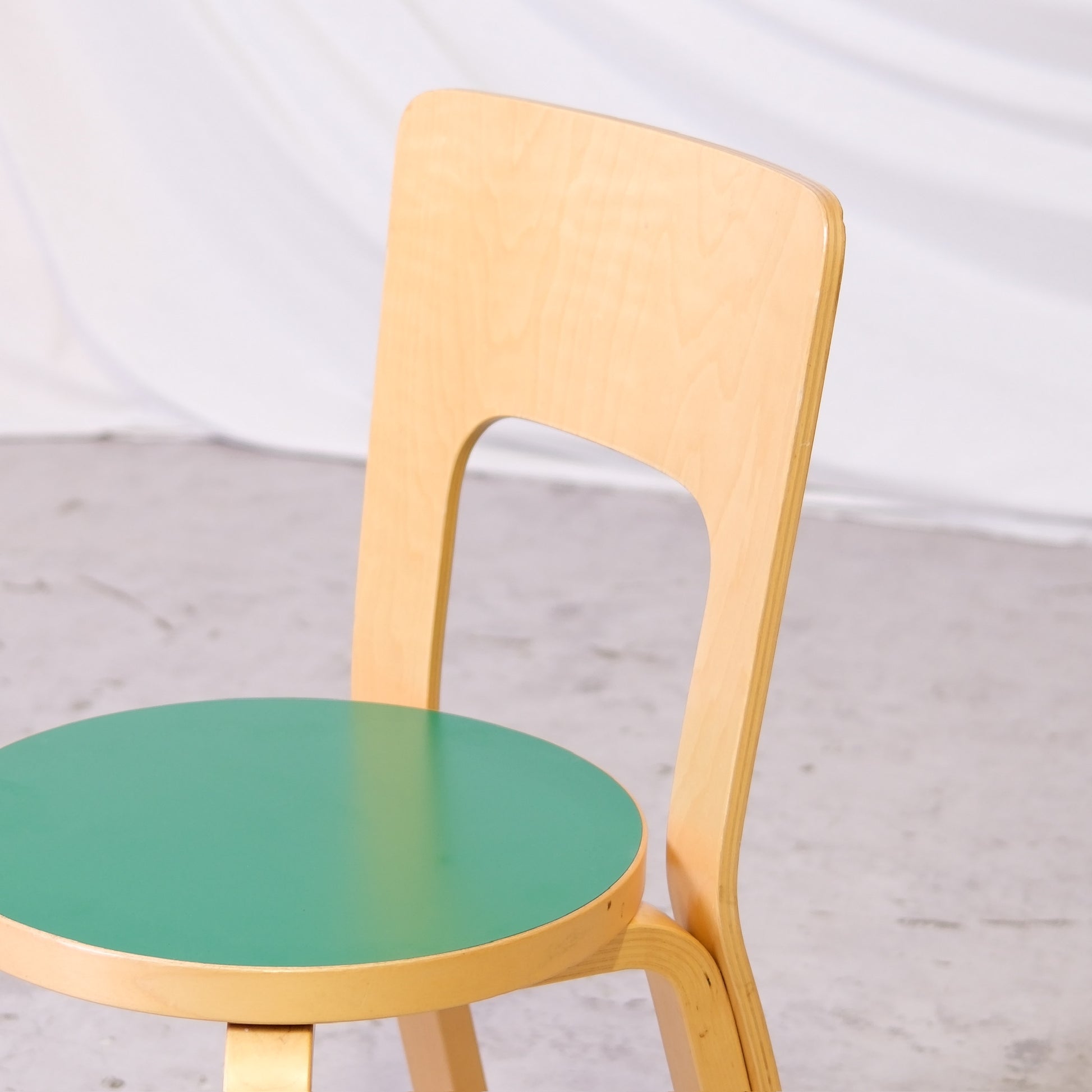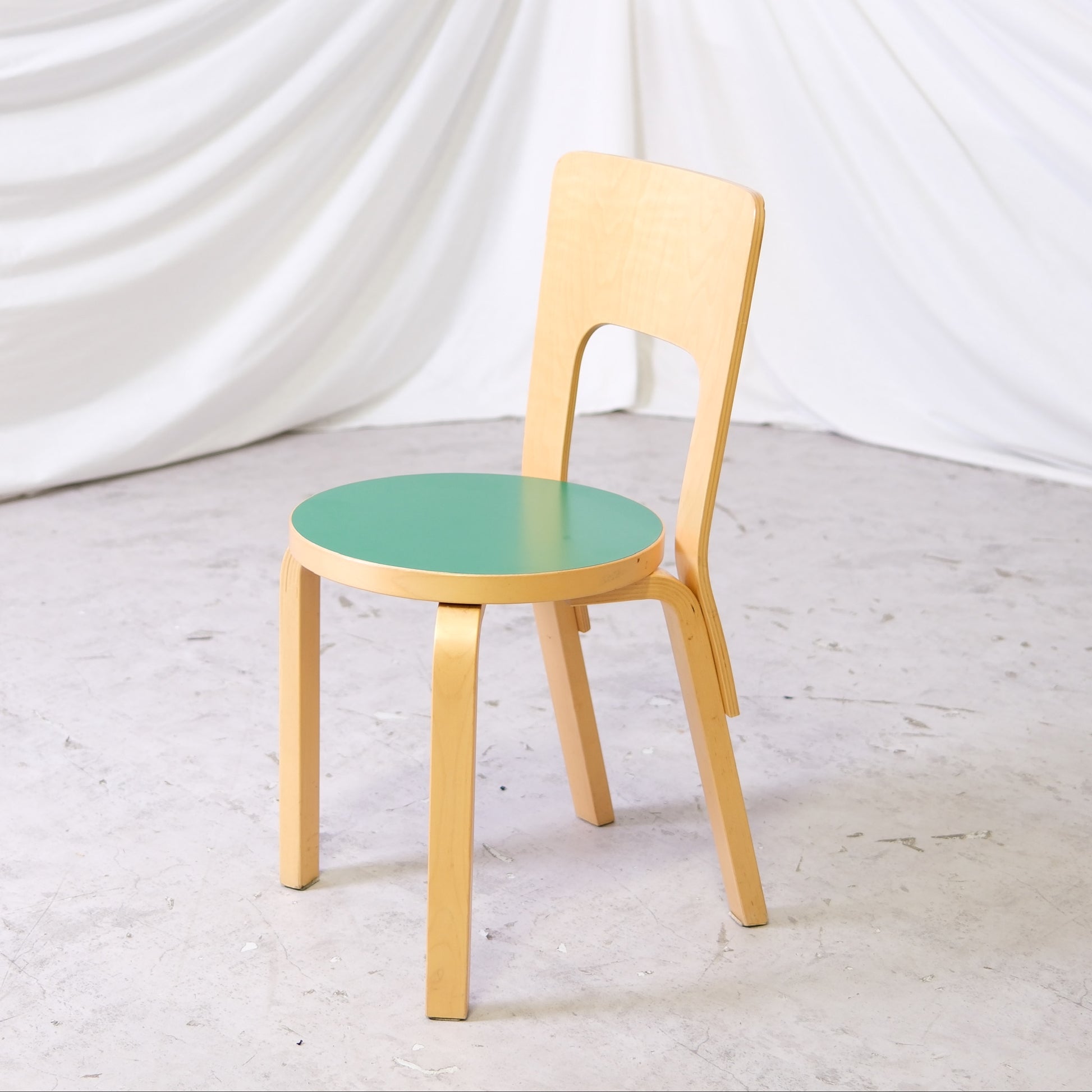 Alvar Aalto Chair 66 - Green Linoleum Seat, 1998