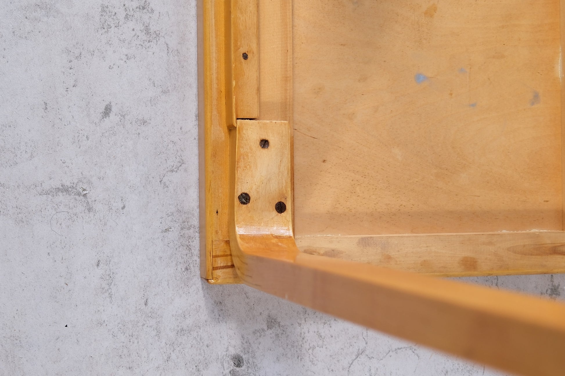 A beautiful vintage Alvar Aalto table from the 1950s, featuring a black linoleum top paired with Aalto’s signature bent birch legs. The combination of natural wood and soft green surface gives the table a timeless and functional aesthetic, characteristic of Aalto’s modernist design language.