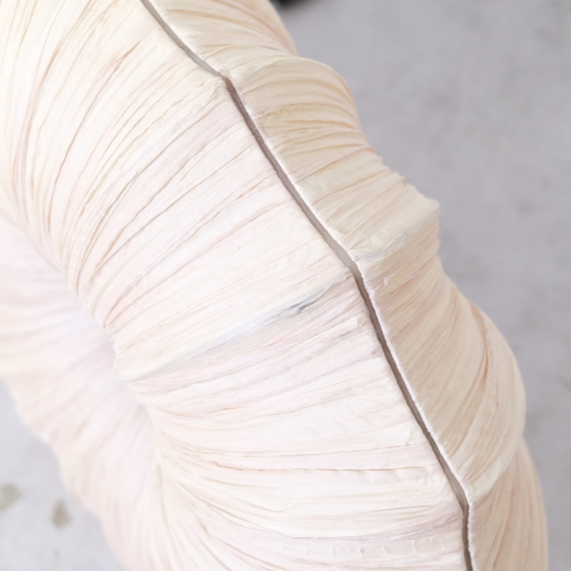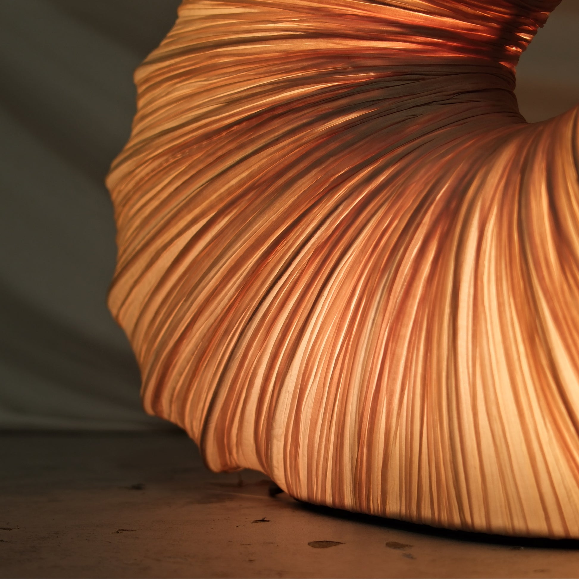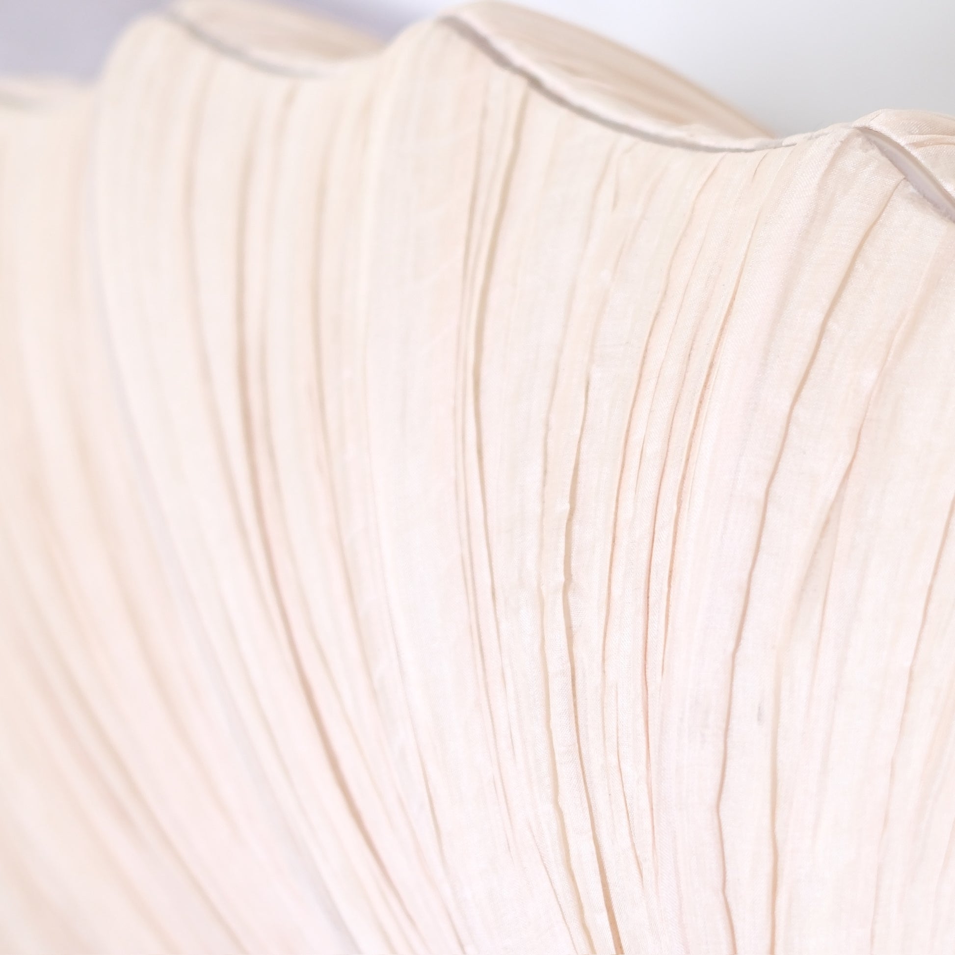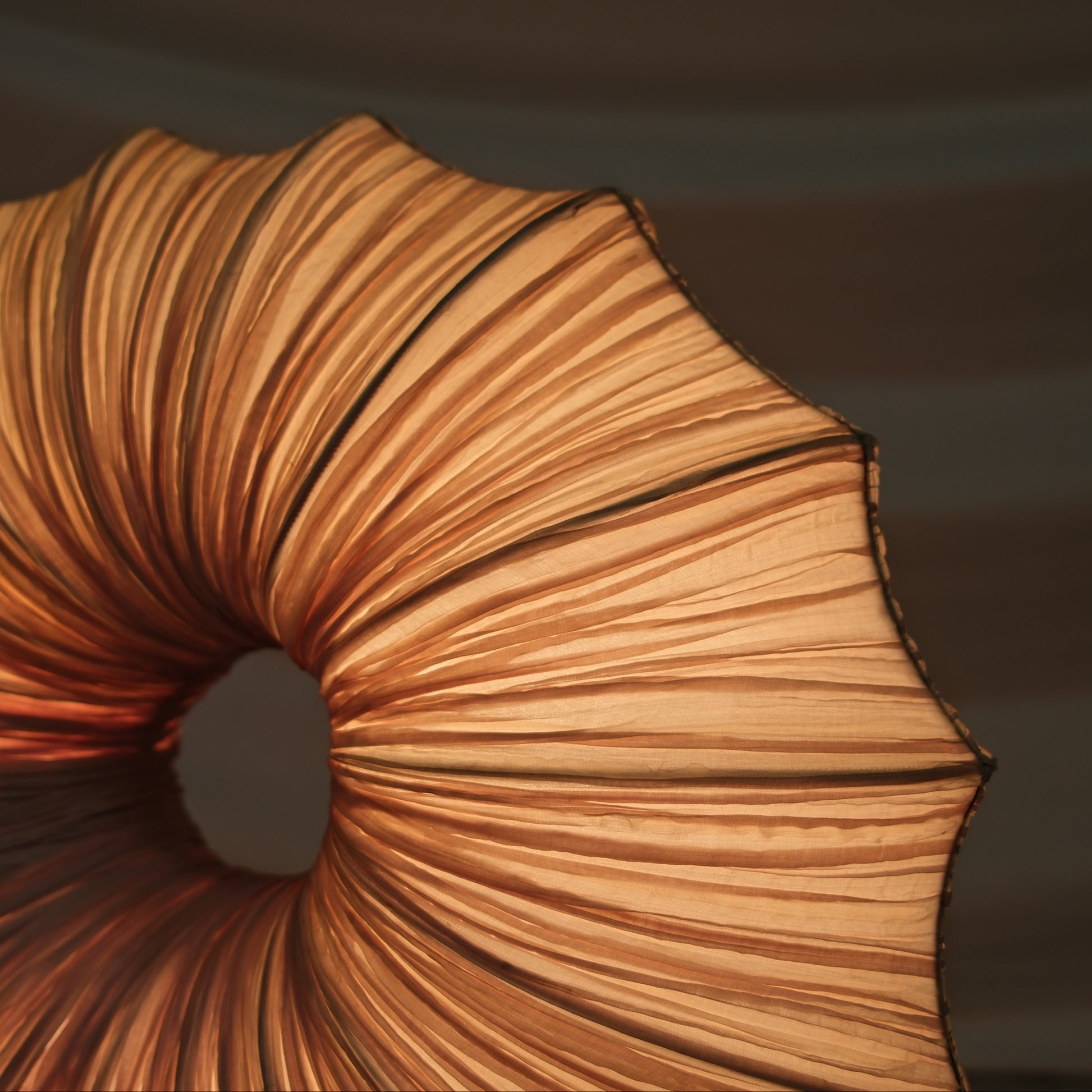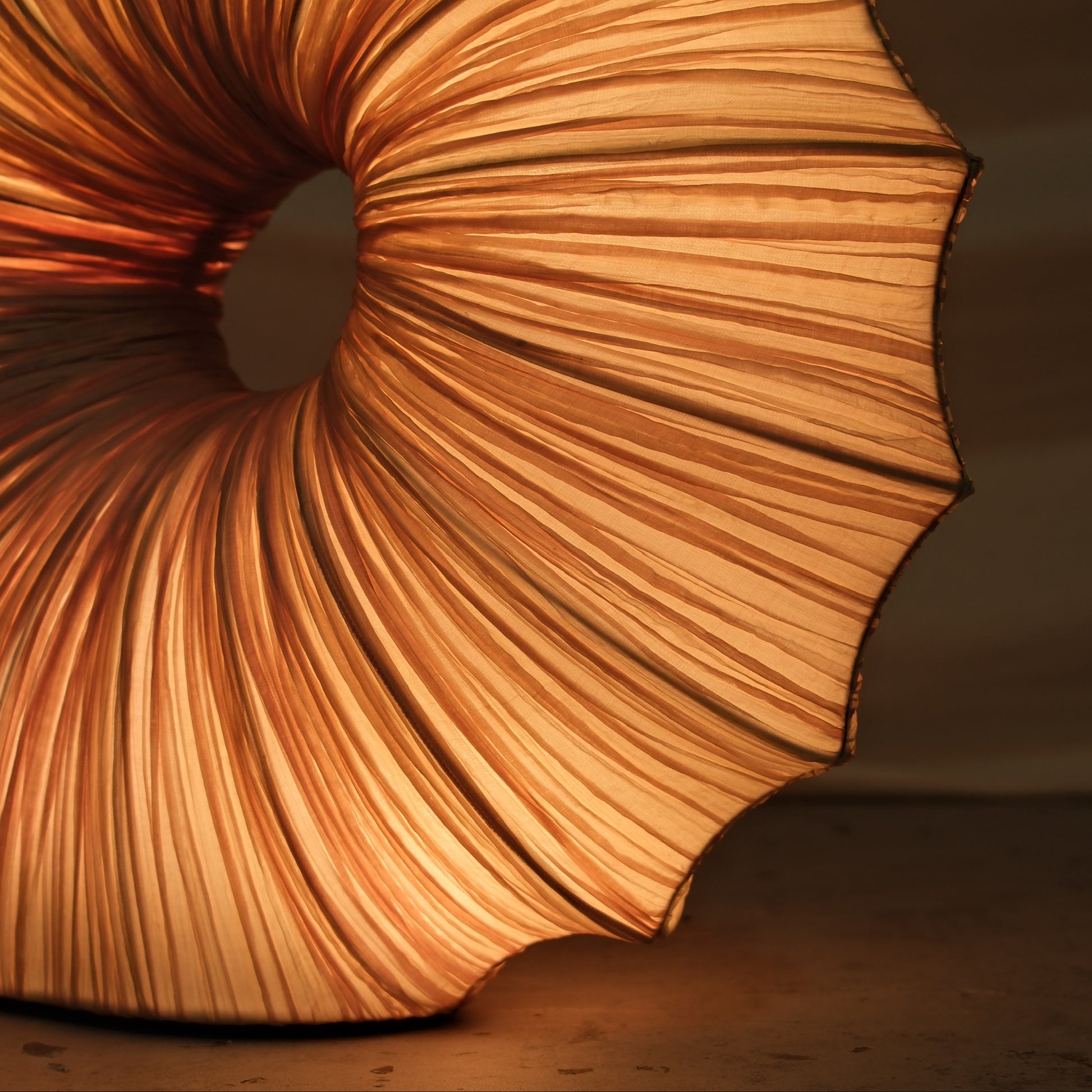 Each Viola lamp is individually crafted, resulting in subtle variations in shape and texture. The central opening and flowing silk surface give the piece its distinctive, organic character, making it ideal as a statement lamp in living spaces, galleries, or refined interiors.