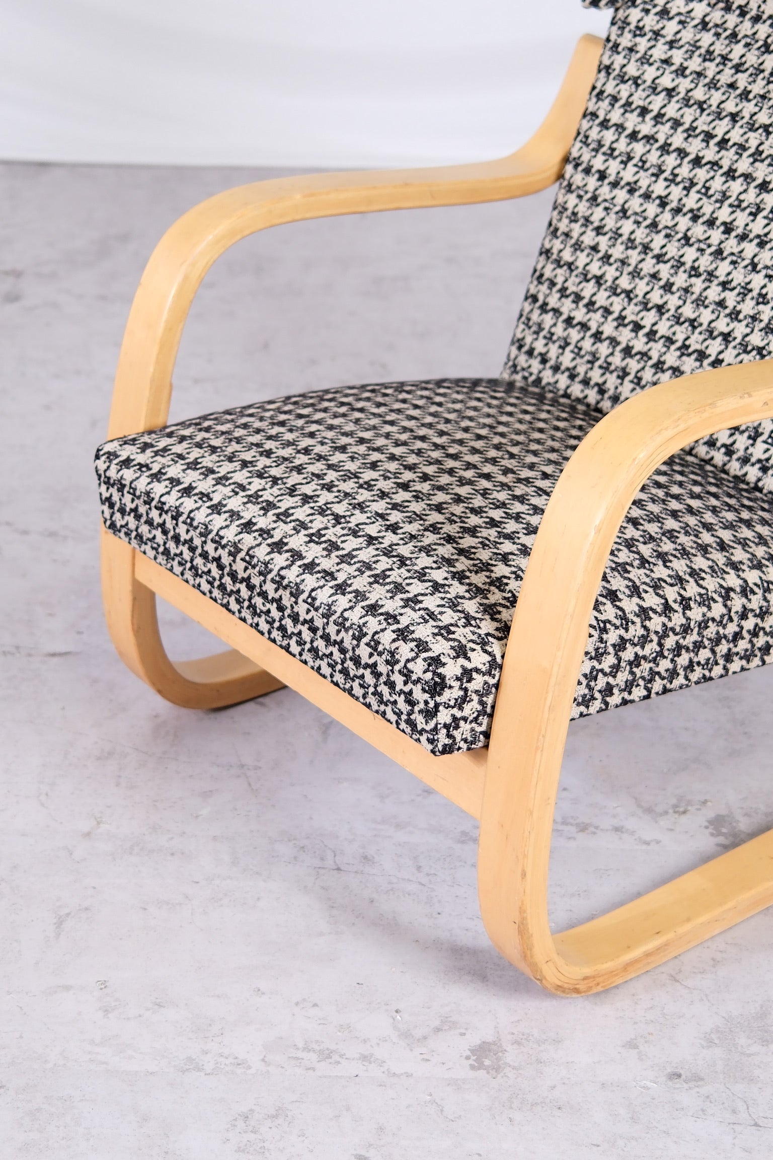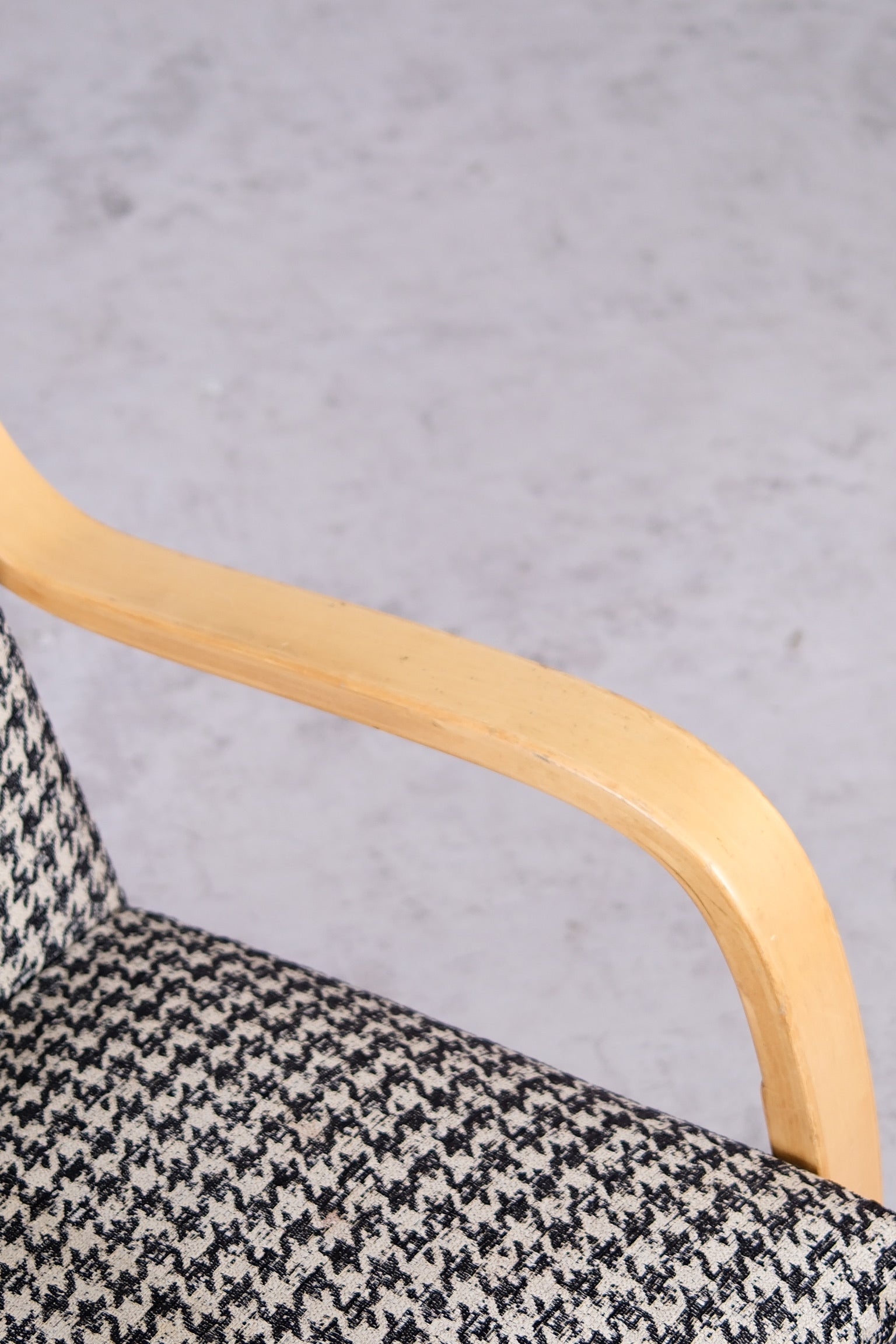 Pair of original Artek 401 lounge chairs designed by Alvar Aalto in the 1930s. These timeless armchairs feature Aalto’s signature cantilevered birch frame and gently curved armrests, creating a light and organic silhouette that’s both sculptural and inviting.
