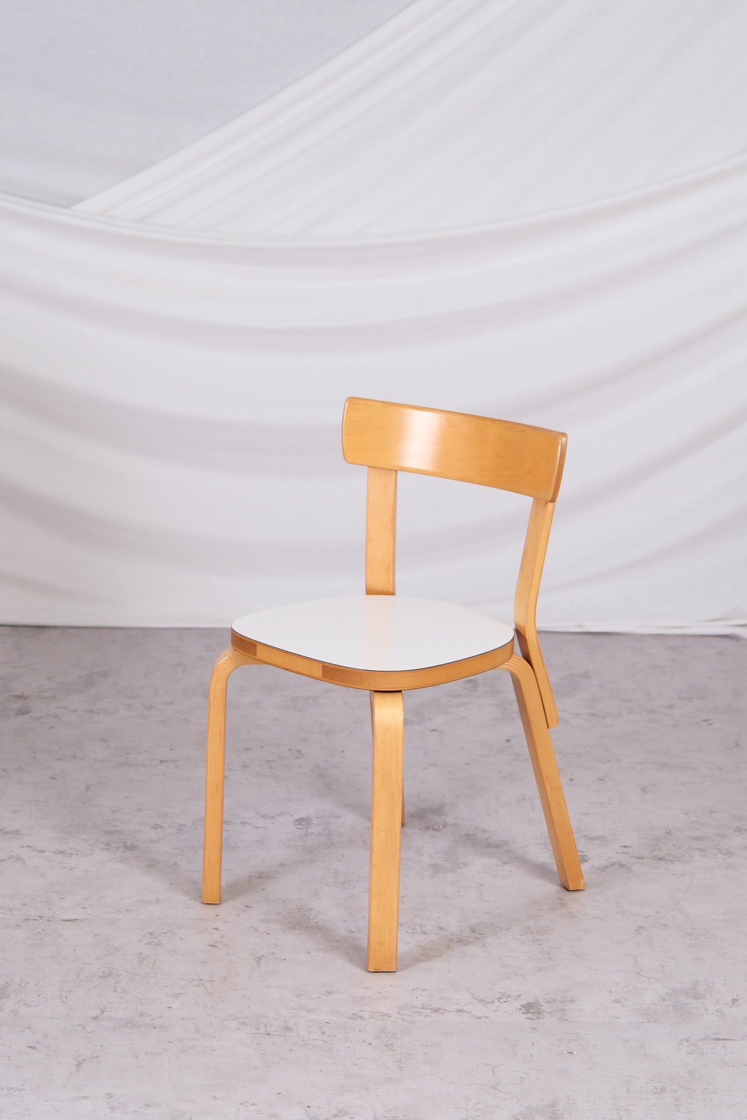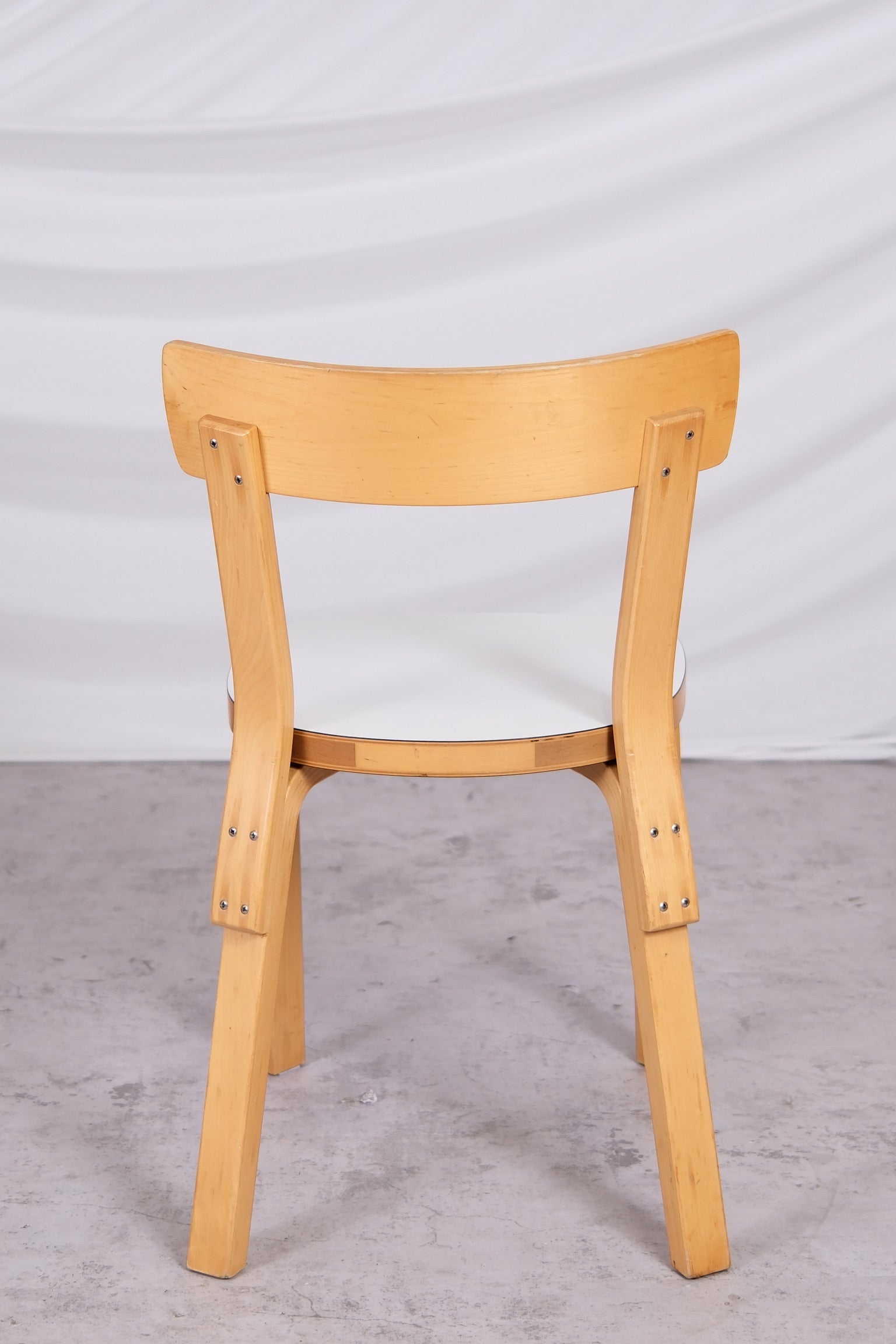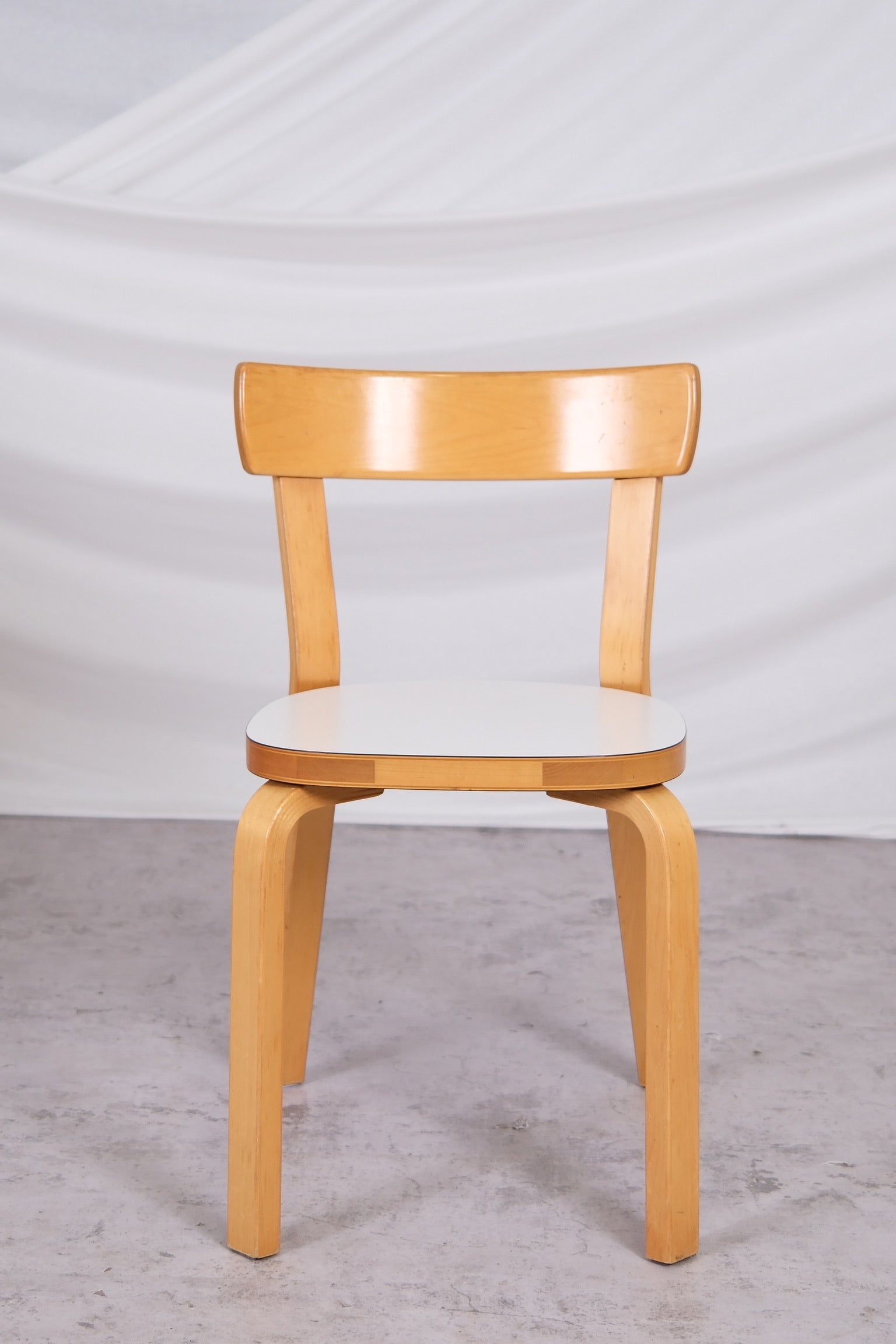 Original Artek 69 chairs in birch, designed by Alvar Aalto in 1935. With their sturdy construction, clean lines, and timeless form, the 69 chairs are among Aalto’s most enduring and versatile designs.