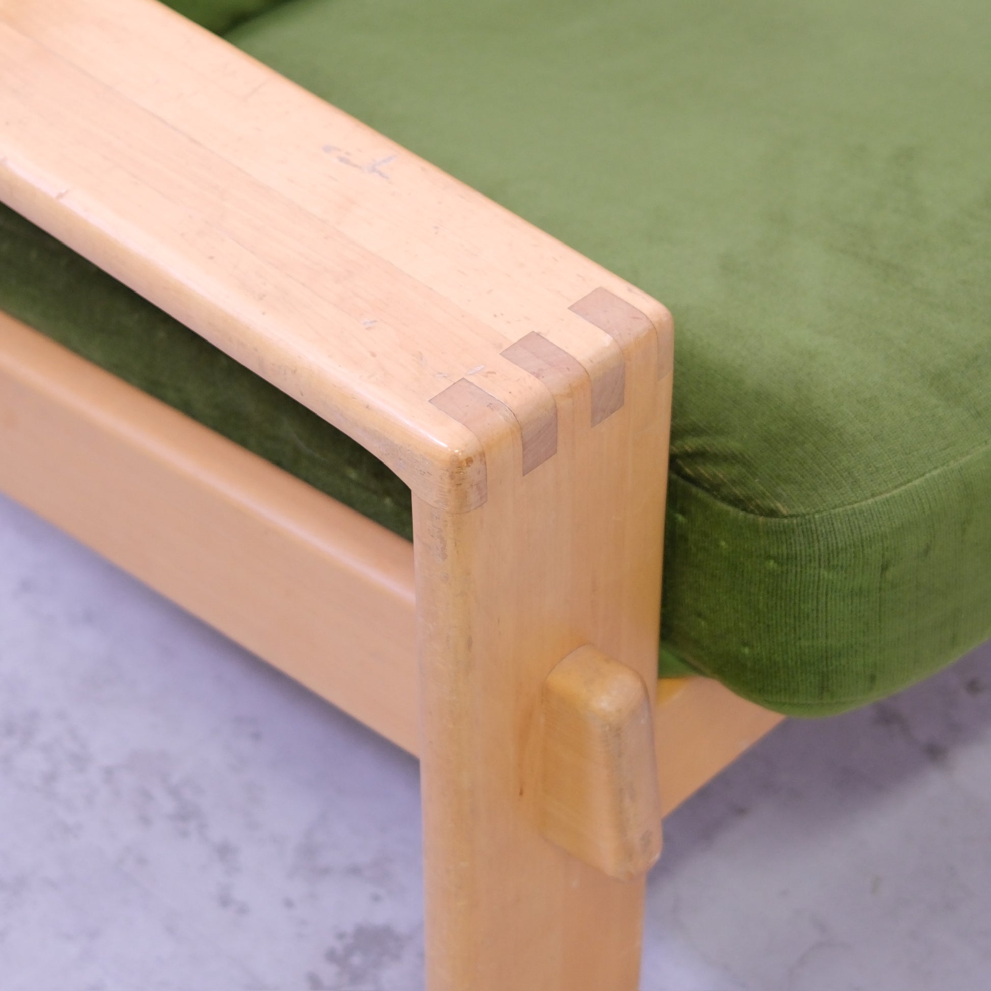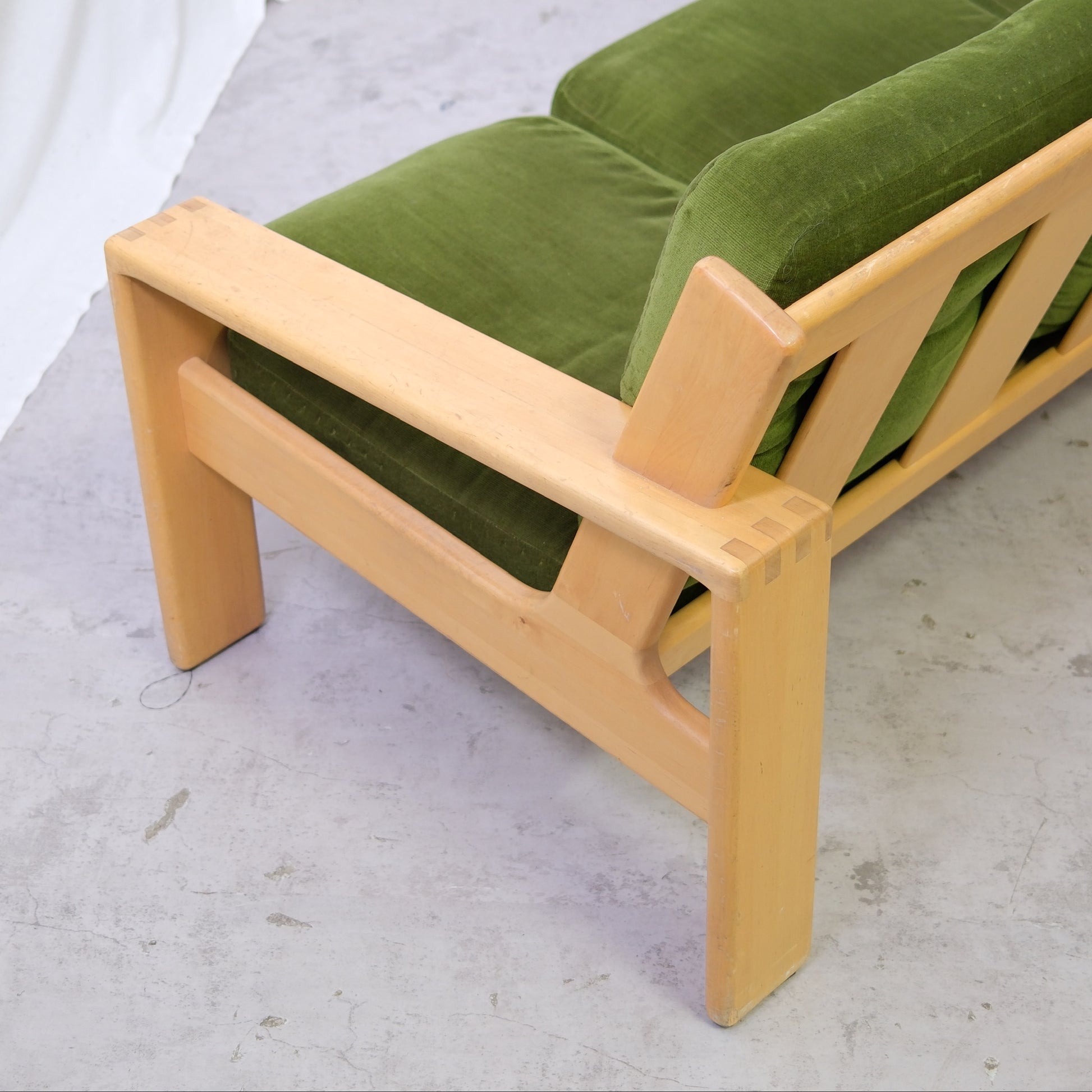 Esko Pajamies’ Bonanza is a Finnish design classic, and this 3-seater is manufactured by Asko. The chunky wooden frame and deep cushions give it that perfect 70s feel, while the green velvet adds a softer, richer look.