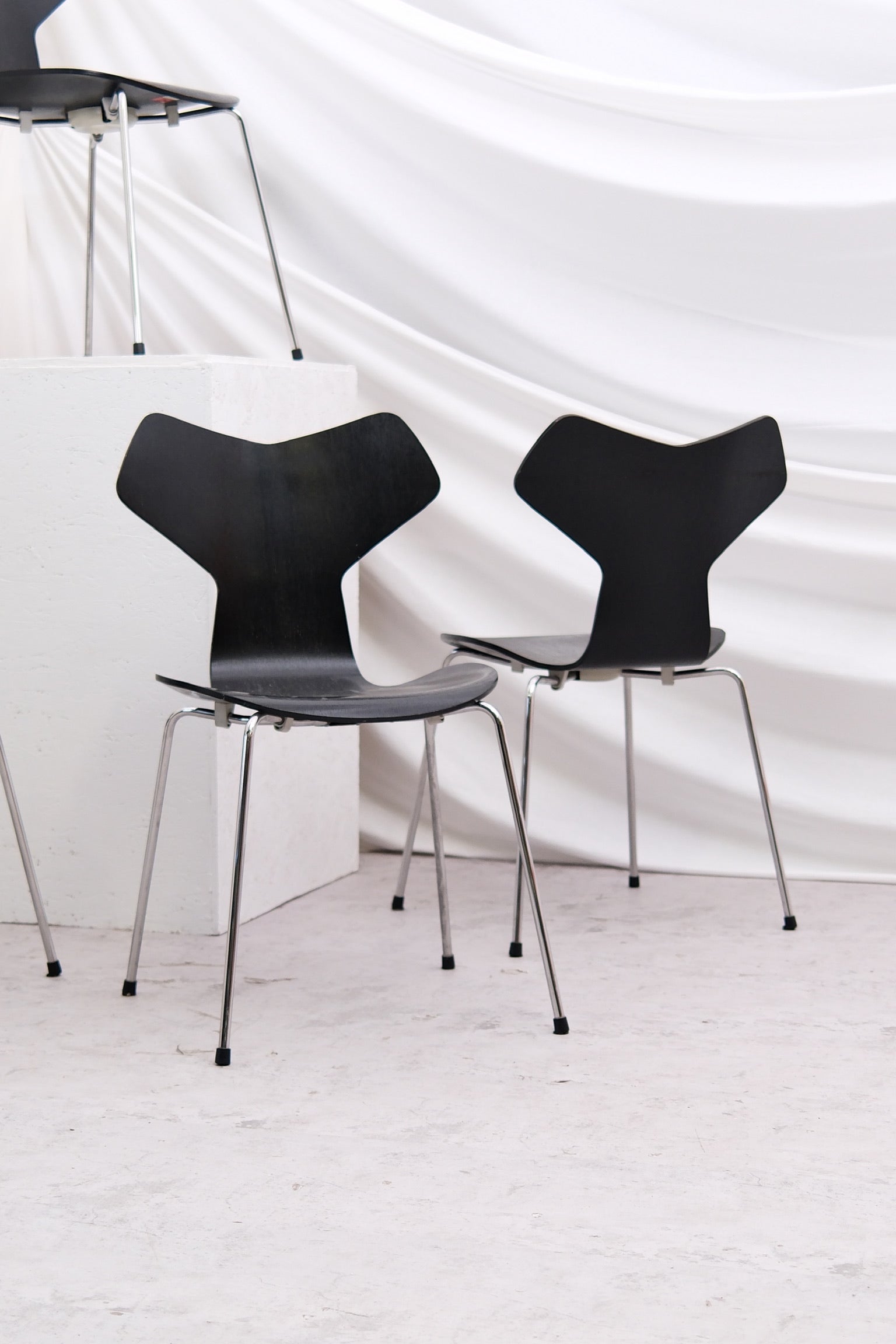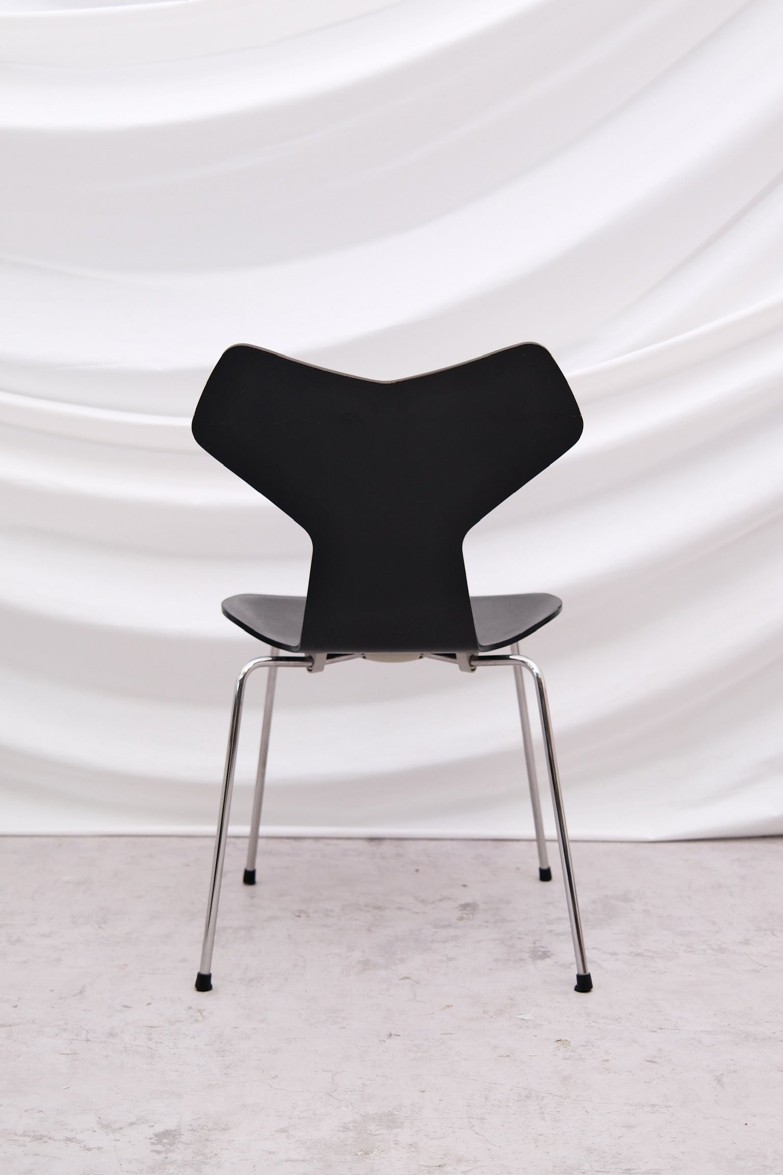 Designed by Arne Jacobsen in 1957, the Grand Prix chair is a Danish design icon that blends sculptural elegance with everyday functionality. This set features the distinctive Grand Prix silhouette in a bold black wood finish, offering a contemporary interpretation of a timeless classic.