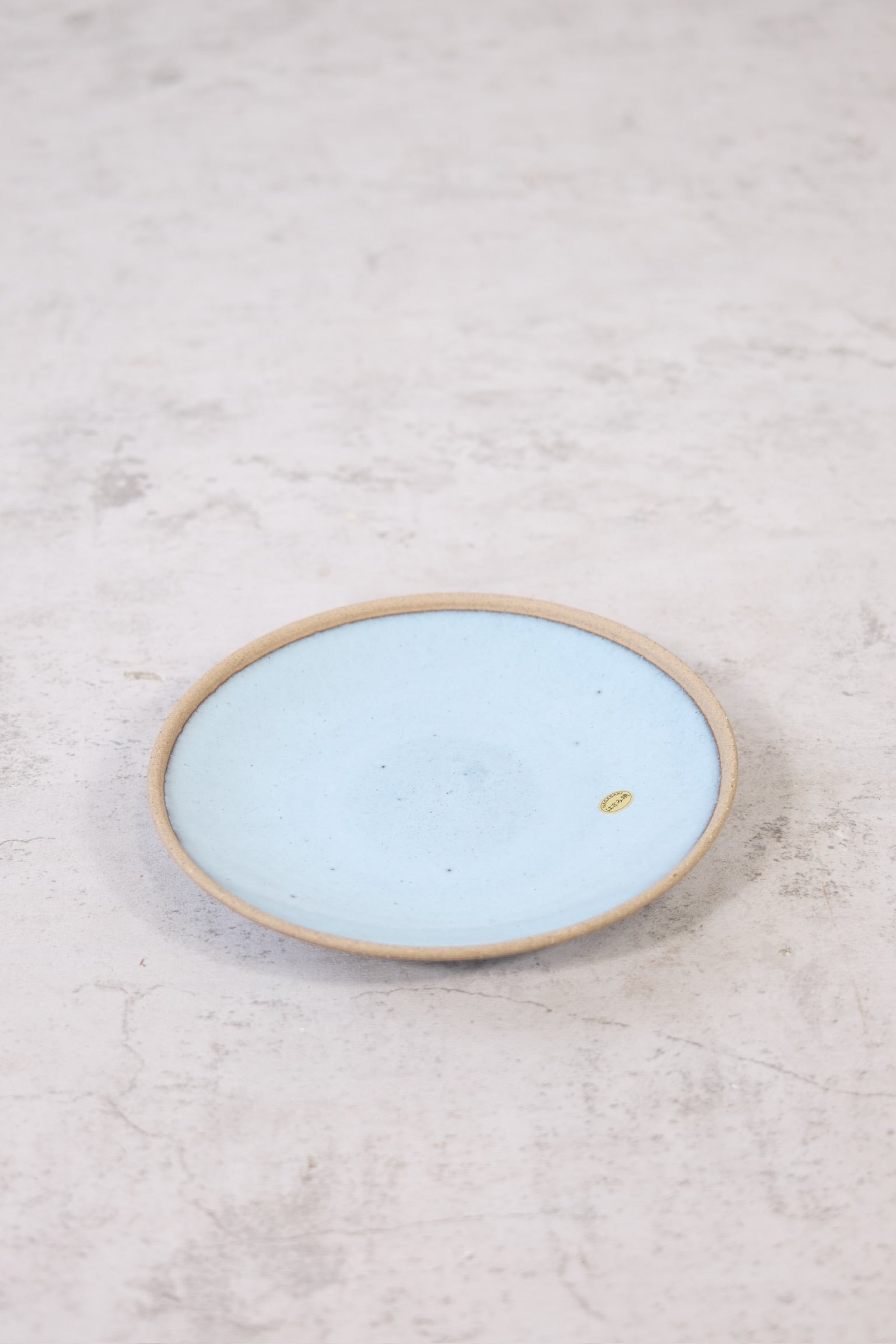 Vintage Japanese ceramic dish in a soft sky-blue glaze with a natural clay rim. Minimal and calming in its simplicity, reflecting the quiet precision of Japanese craftsmanship. Ideal for small servings or as a decorative piece.