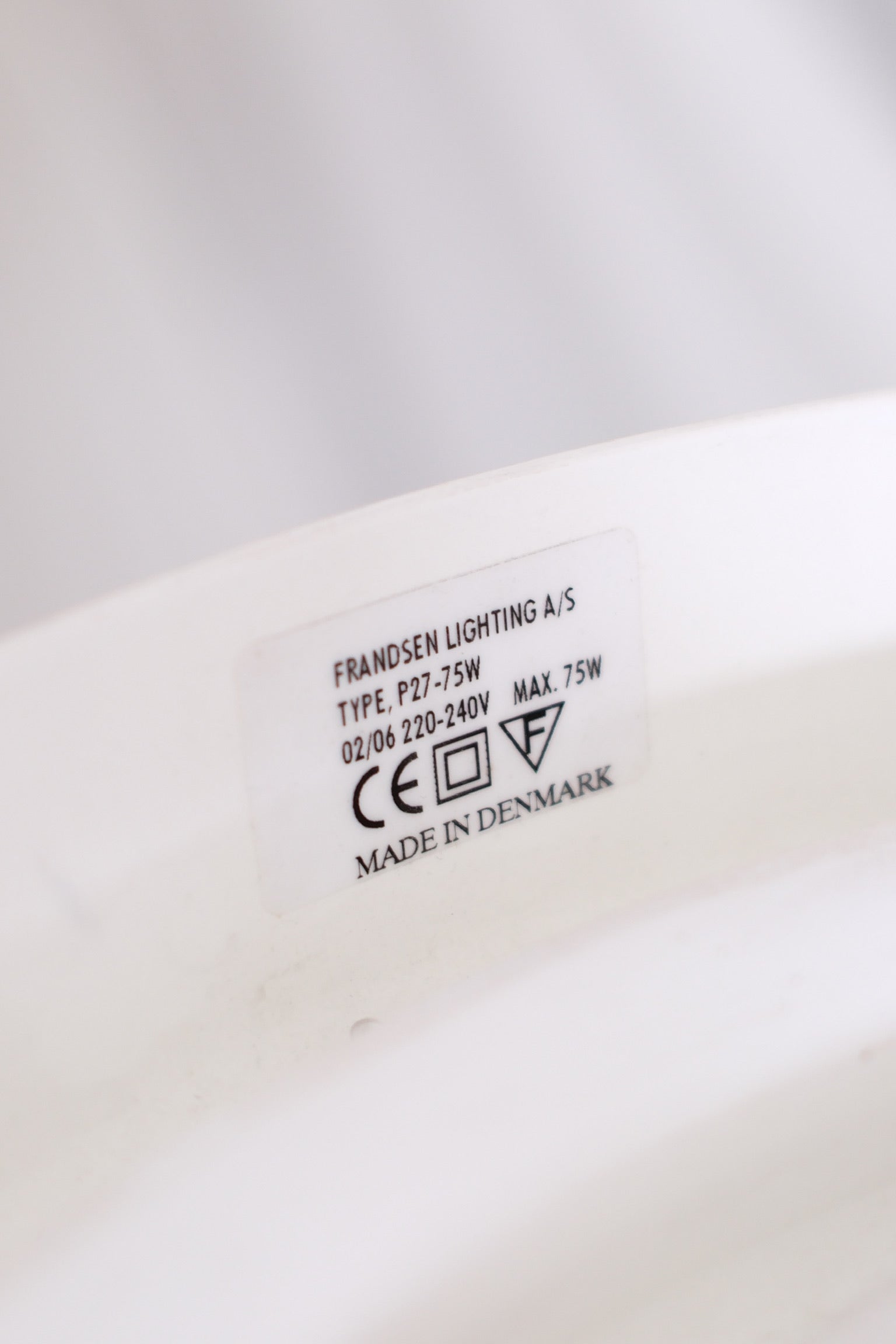 The lamp is constructed from hanging plastic spheres suspended on nylon threads, creating a dynamic and lightweight structure. It comes with a white plastic ceiling mount and original hanging system, produced by Frandsen. The overall height is approximately 120 cm, making it ideal as a focal point above dining tables, staircases, or open spaces.