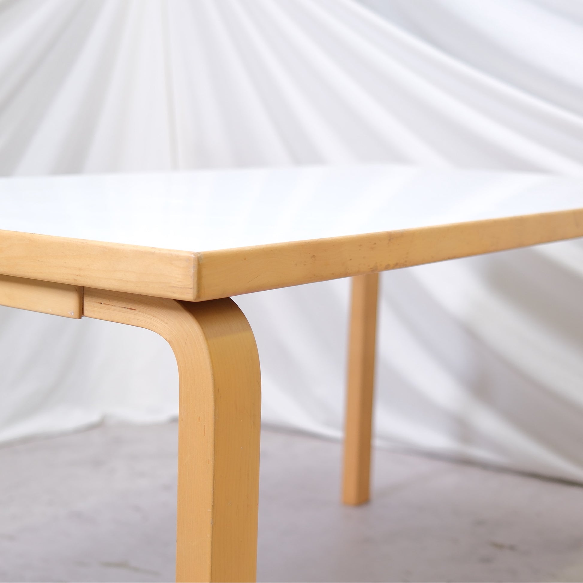 This example features a birch frame with Aalto’s iconic bent L-legs and a white laminate top. The longer proportions make it ideal as a dining table for larger groups, a studio worktable, or a shared office table. The contrast between warm birch and the clean white surface keeps the look light and practical, while still unmistakably Aalto.