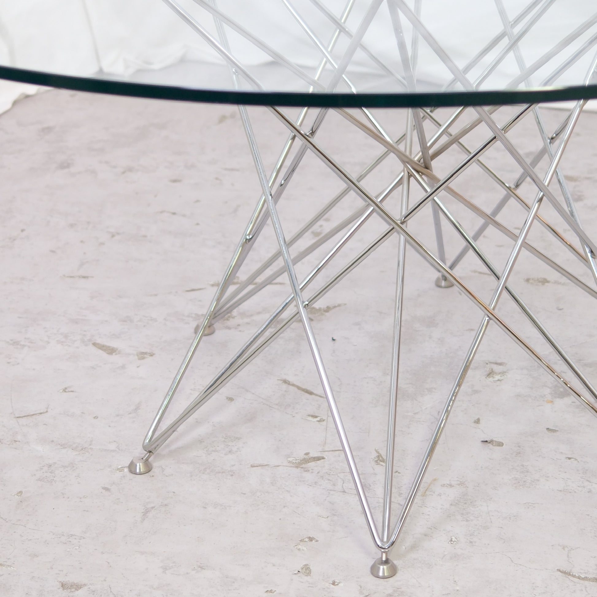 Vintage Bonaldo Round Dining Table – Glass Top 160 cm Bonaldo round dining table with a clear glass top and sculptural metal base. A generous 160 cm diameter makes this an ideal table for 6–8 people while still keeping the...