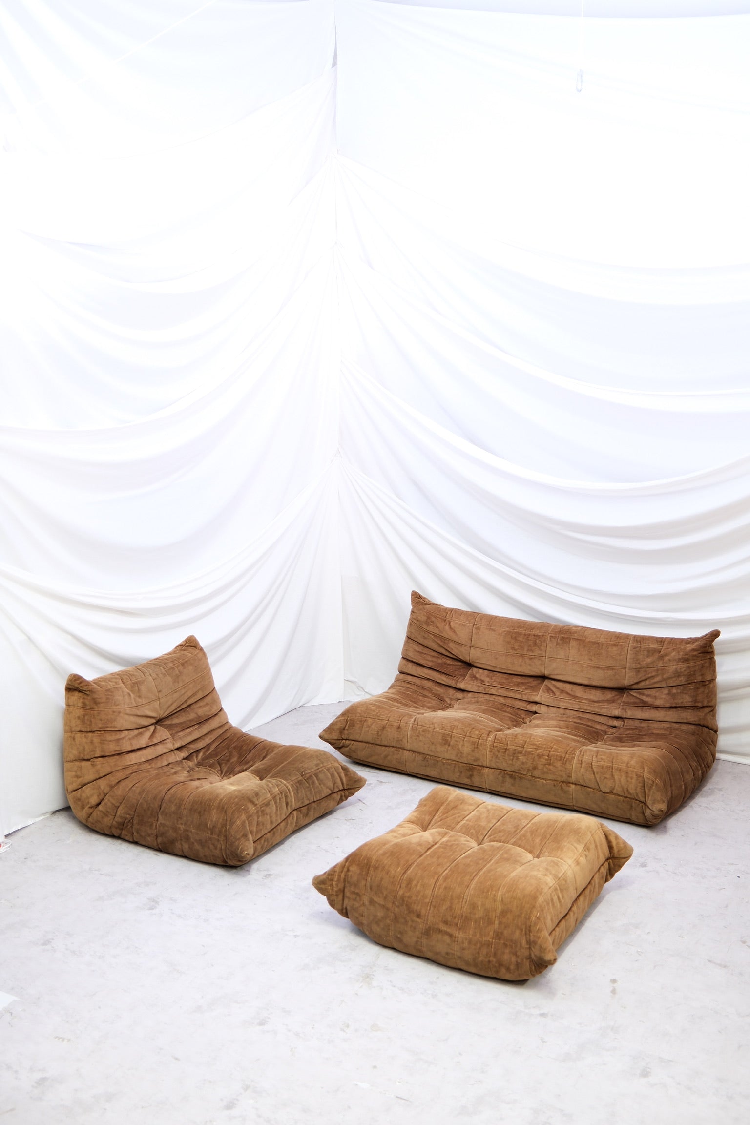 Vintage Ligne Roset Togo Sofa Set – Brown Velvet