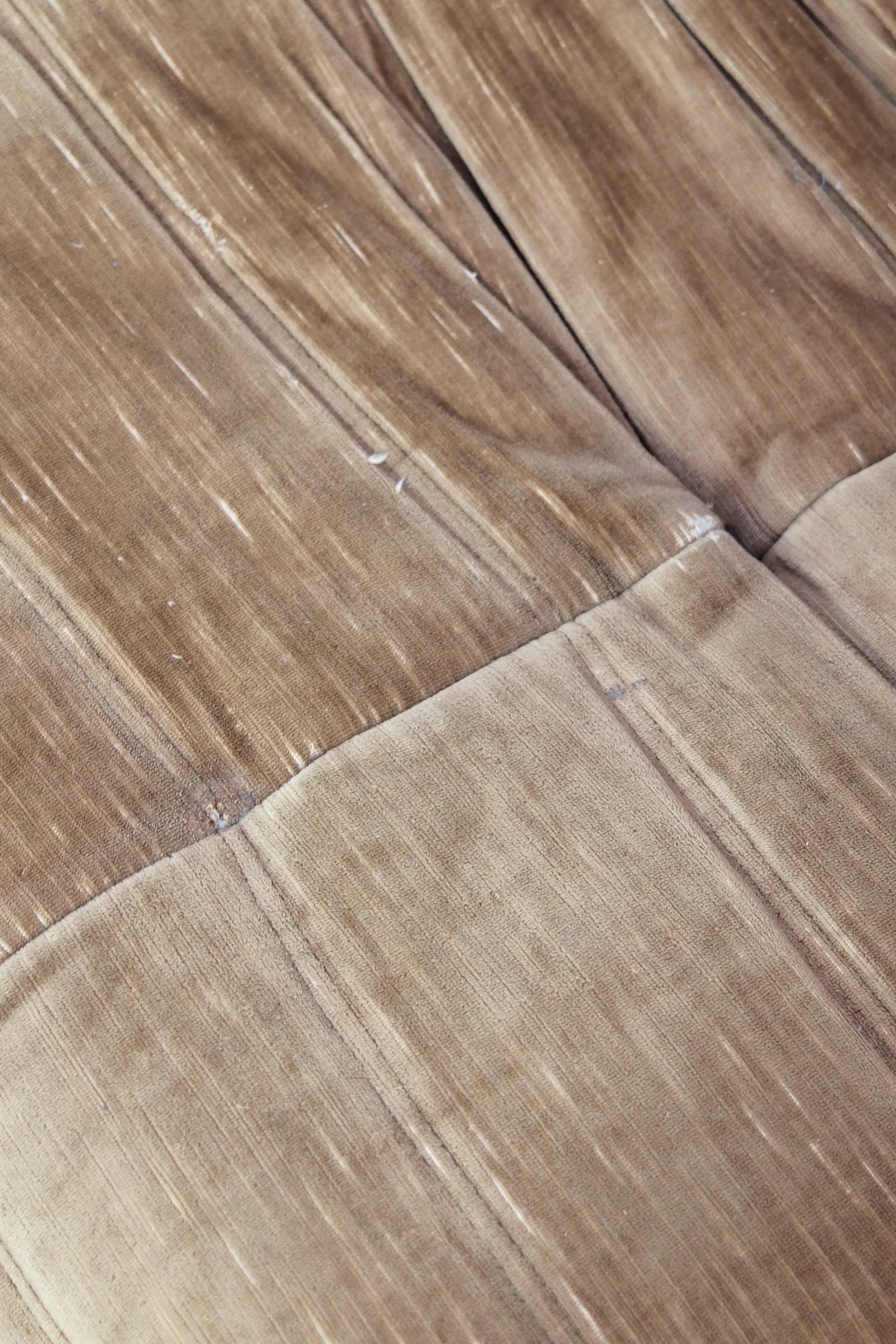 This set is upholstered in a warm brown velvet fabric and includes a two-seater, a lounge chair, and a matching ottoman. The soft texture enhances the inviting character of the design and adds depth to the sculptural form. Ideal as a complete living room setup or styled more freely in an open space.