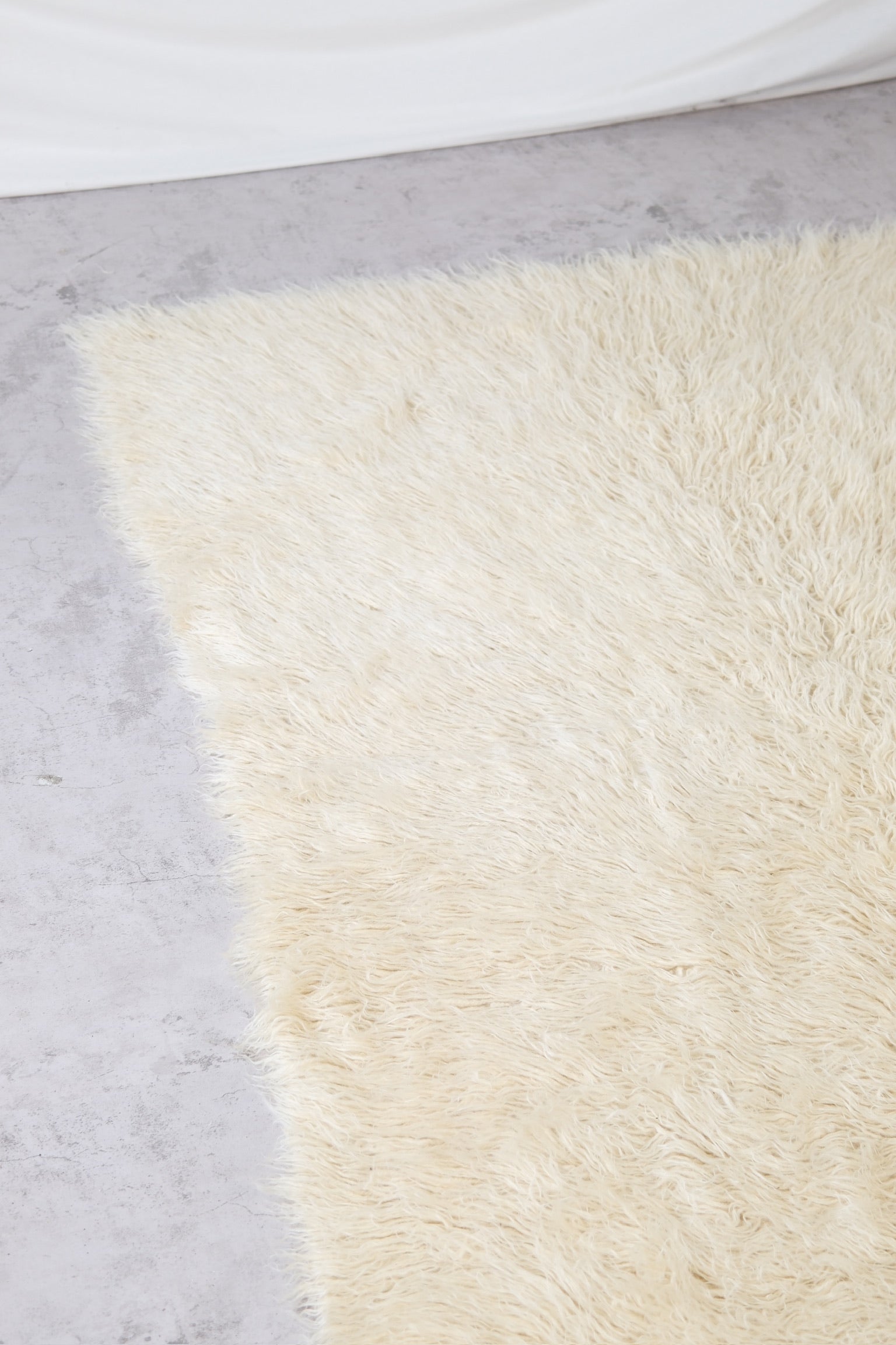 Soft and inviting, this vintage sheep wool carpet adds warmth and texture to any space. Its thick, long pile gives it a luxurious, cloud-like feel underfoot, while the natural off-white tone blends beautifully with both modern and rustic interiors. Handwoven...