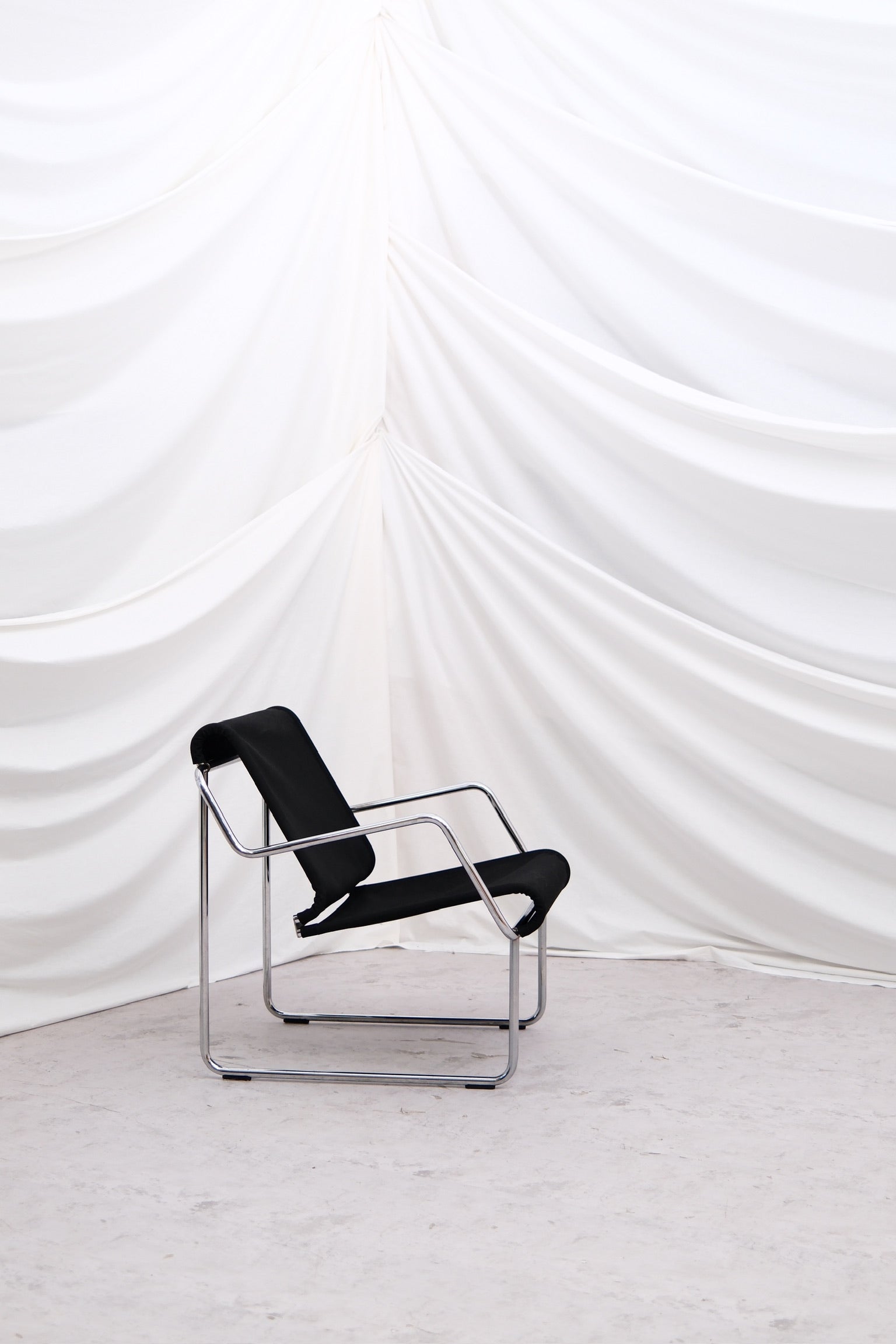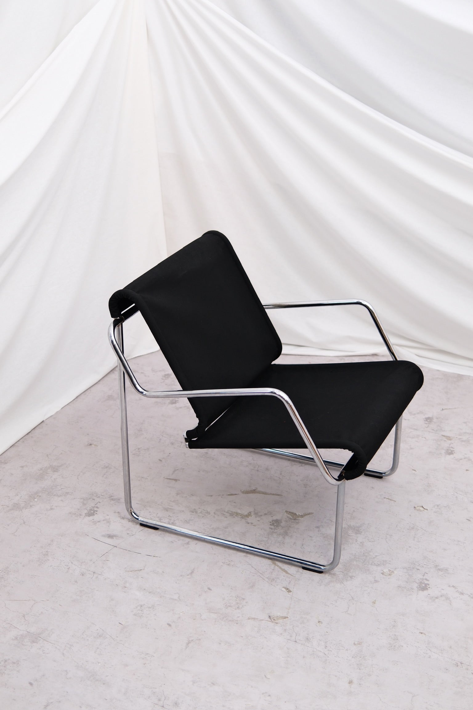 Designed in the 1970s by Finnish innovator Yrjö Kukkapuro, the ‘Pressu’ armchair is a masterclass in Scandinavian functionalism. Produced by Haimi (later Avarte) in Finland, its sleek chromed steel tube frame is matched with a simple yet durable fabric or canvas seat and back.