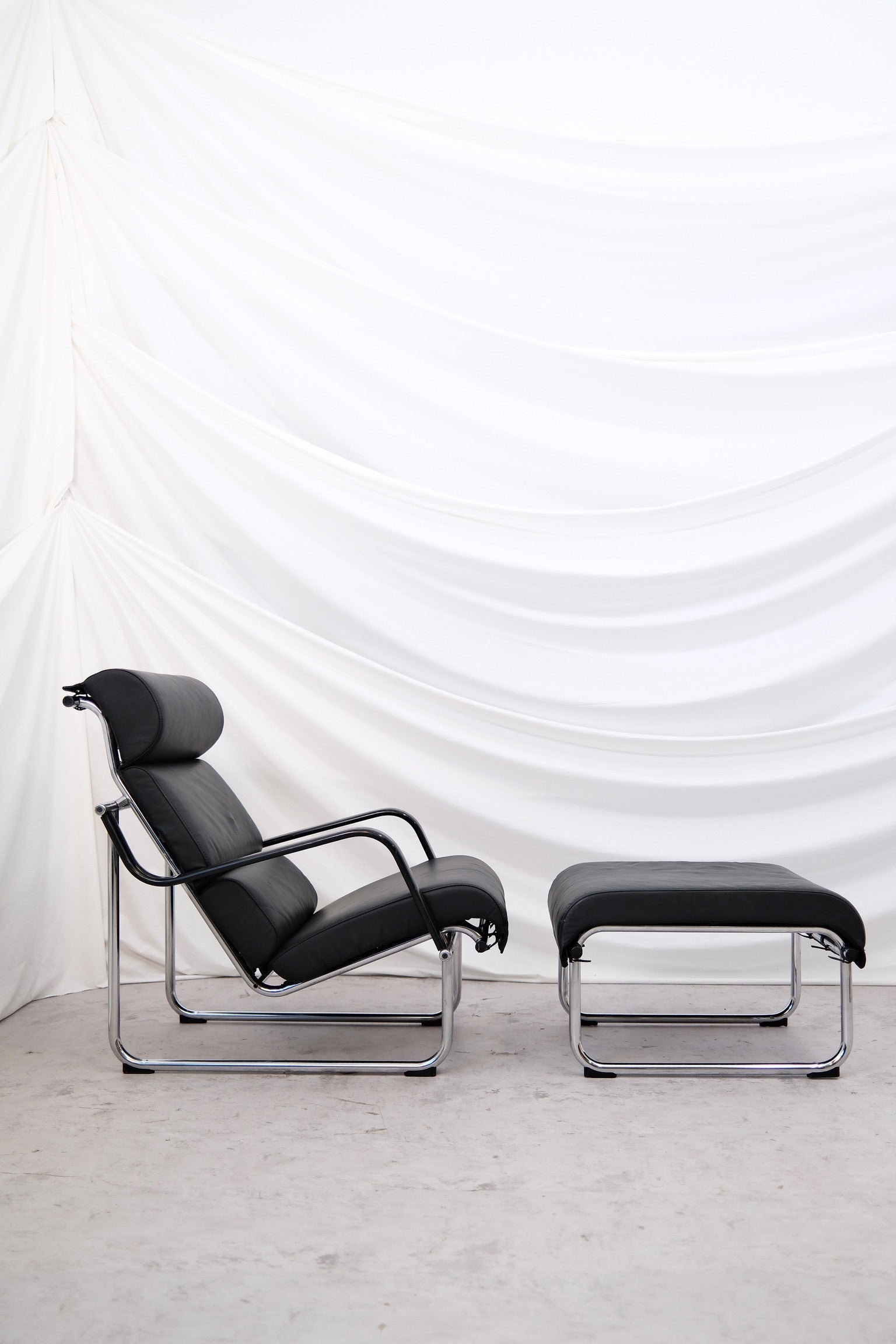 Designed in the 1960s by Yrjö Kukkapuro, the Remmi armchair is one of the most distinctive and collected pieces in Finnish modern design. It reflects Kukkapuro’s interest in ergonomics and free-flowing form, and it has become a classic of Nordic seating. Produced by Yrjö Kukkapuro, the chair features a tubular steel frame and soft leather upholstery that follows the natural curves of the body. Many sets include a matching leather ottoman, which adds comfort and visual balance.